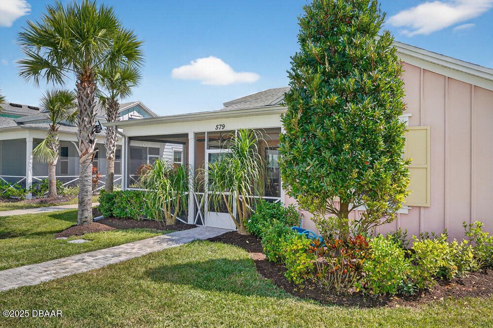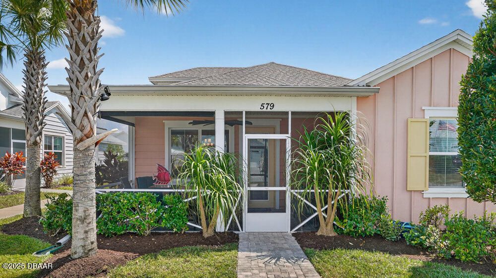 Discover this beautifully appointed cottage in the desirable and active Latitude Daytona Beach 55+ community, offering just under 1,500 square feet of thoughtfully designed living space. Featuring 2 bedrooms, 2 baths, and a versatile den, this home is ideal for relaxing or entertaining. A screened lanai with roller shades provides privacy and sun protection, while all-concrete block construction with foam insulation offers excellent soundproofing and energy efficiency. The stylish kitchen boasts granite countertops, 42'' soft-close cabinets, a GE Café refrigerator, and a double convection oven with air fryer. Additional touches include a shiplap accent wall, premium light fixtures and ceiling fans, soundproof French doors in the den, and upgraded landscaping for lovely curb appeal. Come enjoy resort-style amenities and the laid-back Latitude lifestyle in this move-in-ready home. Latitude's vibrant Town Center is the heartbeat of the community, offering endless opportunities for fun and connection. Dance the night away to live music at the Bandshell every weekend, savor delicious food and cocktails at the Bar & Chill Restaurant, or enjoy poolside drinks and burgers at the Sandbar. Spend sunny afternoons at the resort-style Paradise Pool, swim laps in the sports or indoor pools, or stay fit at the state-of-the-art Fins UP! Fitness Center. Catch a show at the Mango Theater, play with your pup at the Dog Park, and enjoy pickleball, tennis, bocce ball, and so much more. And when you're ready for the beach, take the luxury bus from Town Center to the community's Private Beach Club in Ormond Beach. With a social calendar this full, the only challenge will be figuring out how to fit it all in!
