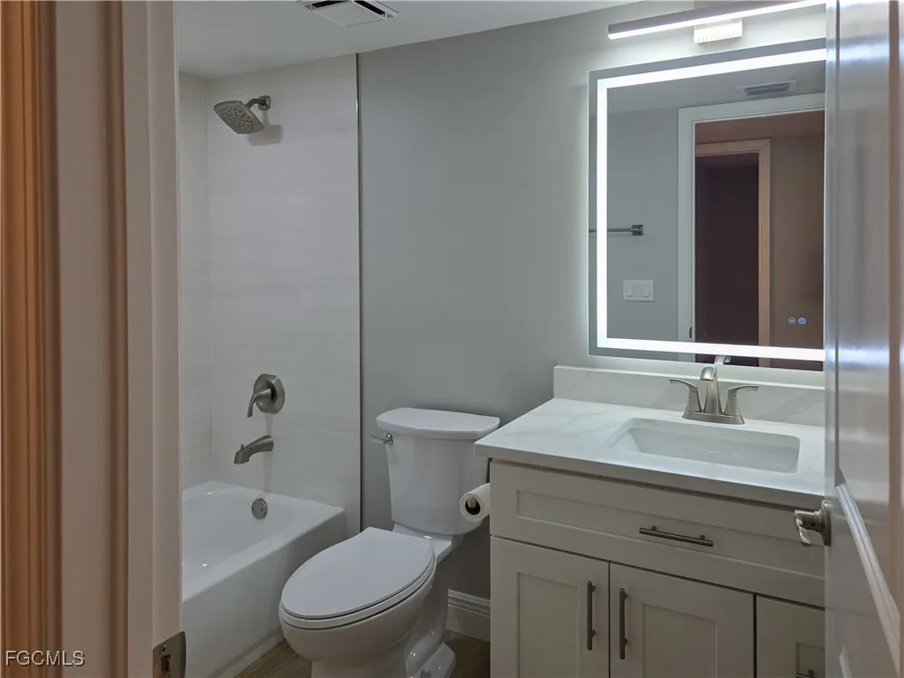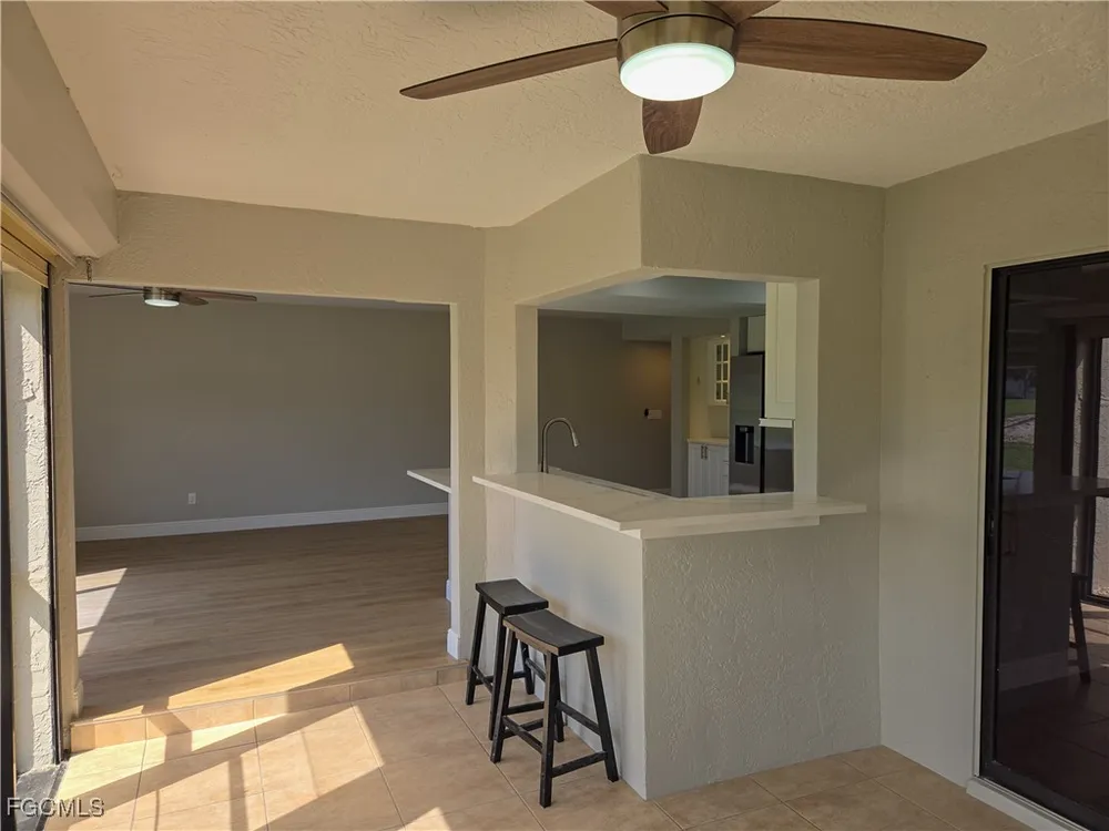 Discover the newest first-floor renovation in the sought-after Hideaway Country Club of South Fort Myers. This end-unit condo features a modern open kitchen with new cabinets, countertops, appliances, and luxury vinyl plank flooring throughout. Enjoy the enclosed lanai with views of the 9th green, or open it to let in the breeze. Just outside your door is a nearly private grill station, with the Augusta Village pool, patio, and community grills only steps away. The Hideaway offers a par-67, 18-hole golf course where members with personal carts have no trail or cart fees. The clubhouse hosts year-round dining, fitness, and social activities including brunch, trivia, karaoke, dancing, and more. Augusta Village neighbors enjoy an active social calendar with wine tastings, cookouts, pizza nights, and friendly golf outings.