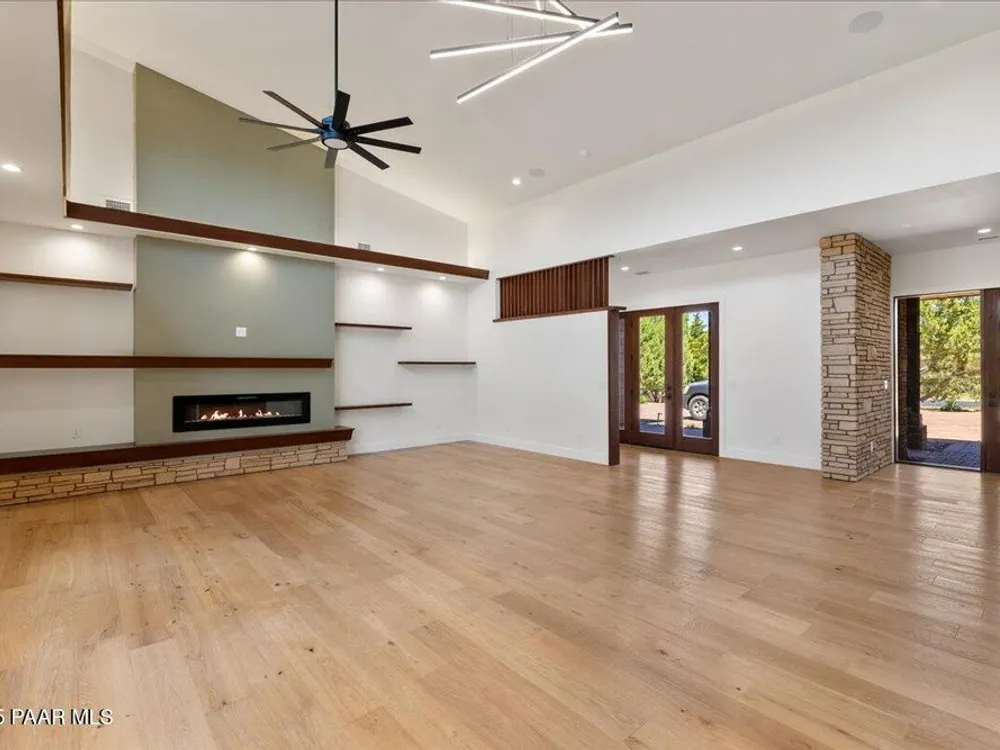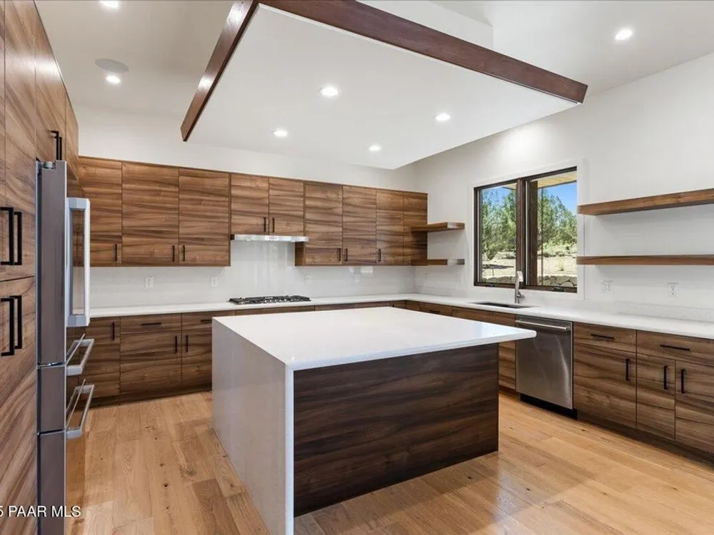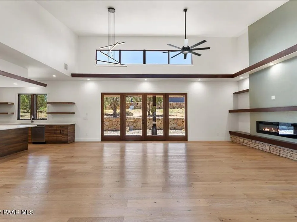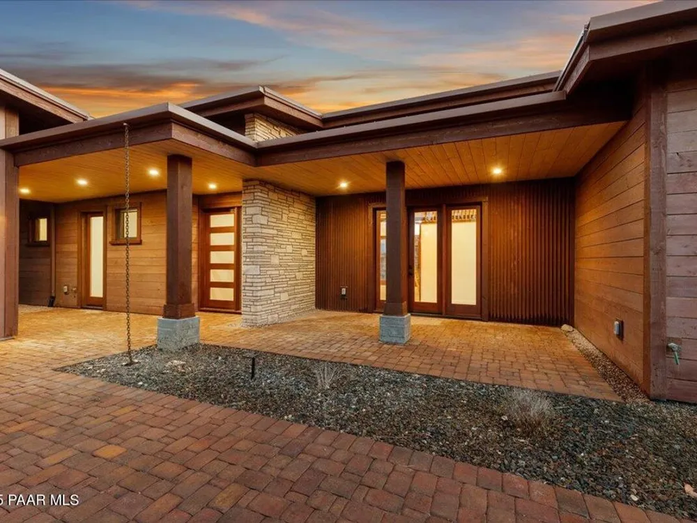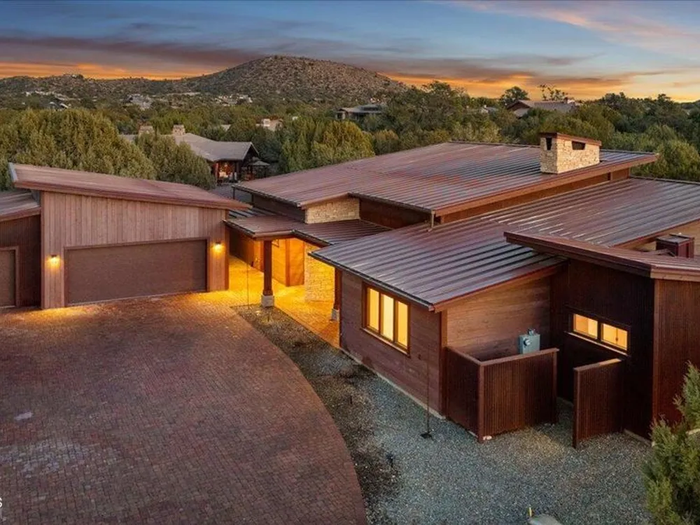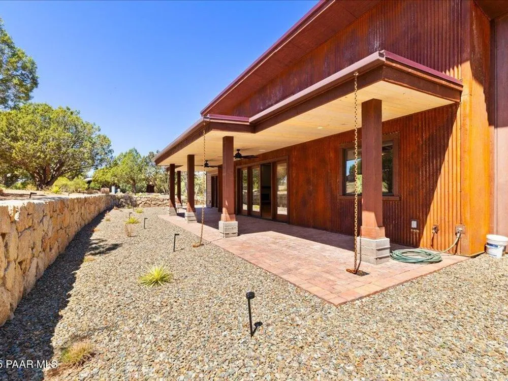 Where Modern Comfort Meets Rustic Elegance. Welcome to a home that doesn't just exist--it invites you to exhale. Tucked within the exclusive gates of Talking Rock Ranch, this newly built modern-rustic retreat blends refined design with everyday ease on a premium corner lot surrounded by nature's own sculpture garden of native boulders. Crafted for those seeking peace, purpose, and a slower pace--without sacrificing luxury--this home is ideal for those looking to trade in the hustle for high-desert serenity. From the moment you arrive, the architectural detail captures your eye. The exterior combines Douglas Fir siding, Cor-Ten steel, and a sleek standing seam roof--subtle yet striking, just like the landscape around it. The paver driveway leads you to a generous 1,000-square-foot, three-car garageperfect for housing your Arizona toys or setting up a hobby space.Step inside, and you'll feel the difference immediately. This is true one-level living, where every room flows effortlessly into the next. Natural light pours through clerestory windows and 10-foot ceilings, while white oak floors anchor the open living spaces in warmth and understated elegance. The great room is both expansive and intimate, with a ledgestone accent wall and modern electric fireplace offering a cozy backdrop to evenings spent with friends or a quiet book.At the heart of the home, the European-inspired kitchen is where form meets functionquartz countertops, sleek cabinetry, and Bosch appliances make this space both a showpiece and a workspace. Whether you're cooking for two or a table full of new neighbors, this kitchen keeps the conversation flowing. The primary suite feels like a private resort. Oversized windows let in the golden afternoon light, while the spa-like bath offers a walk-in shower, beautiful custom tilework, and premium Kohler fixtures. It's your sanctuary after a morning hike or a round of golf.Two additional bedrooms with en-suite bath and a flex roomideal for an office, media room, or visiting guestsensure that your lifestyle has room to grow and adapt. Smart wiring, built-in sound, and energy-efficient spray foam insulation mean this home is as forward-thinking as it is beautiful. Outside, the Arizona lifestyle unfolds across 1,000 square feet of covered patiosperfect for morning coffee or evenings cooled by ceiling fans and desert breezes. The xeriscaped yard is low-maintenance and fully irrigated, so you can spend your time exploring, entertaining, or simply enjoying the silence. This isn't just a houseit's your next chapter. A place to slow down and stretch out. A place where life is less about doing and more about being. Come experience the lifestyle that only Talking Rock Ranchand this thoughtfully designed homecan offer.