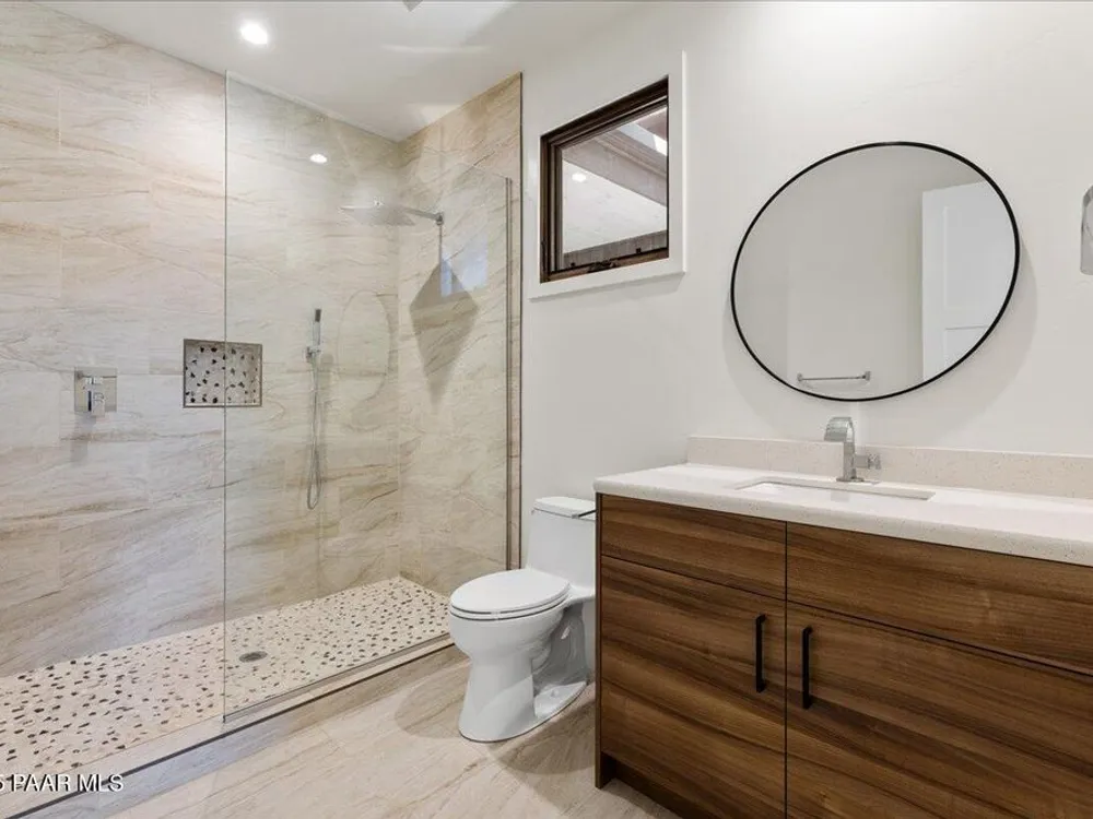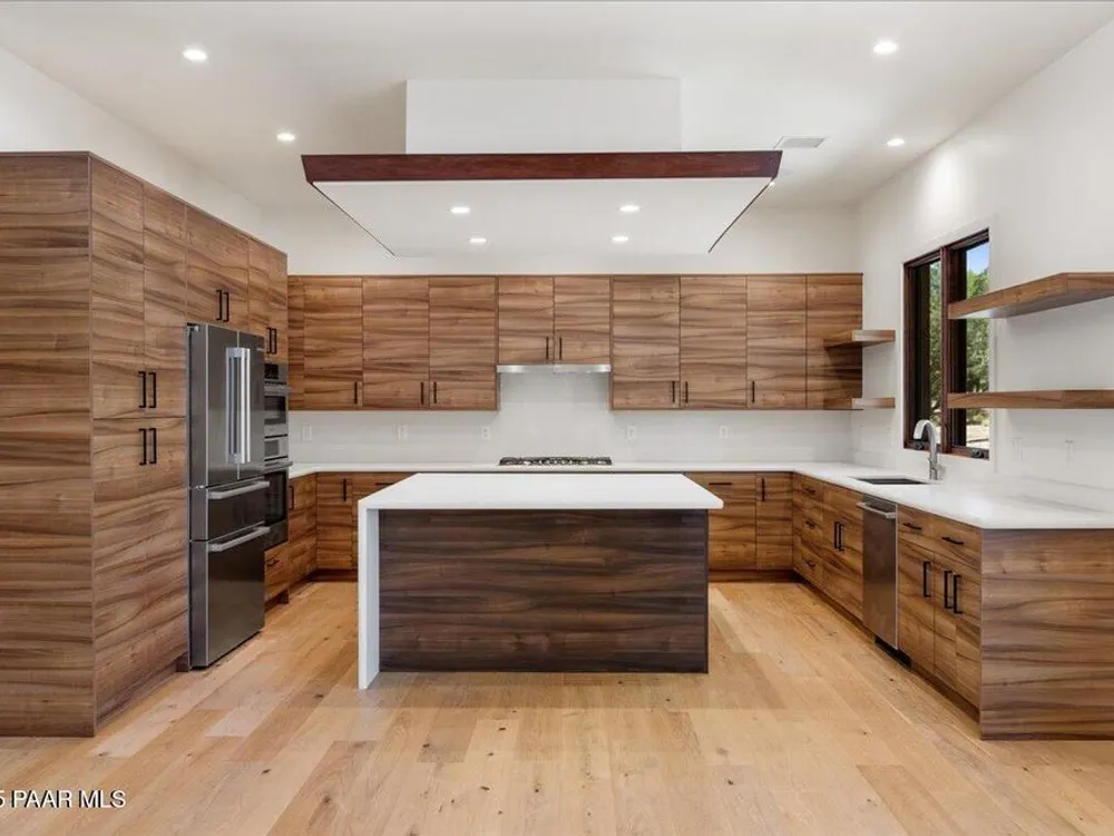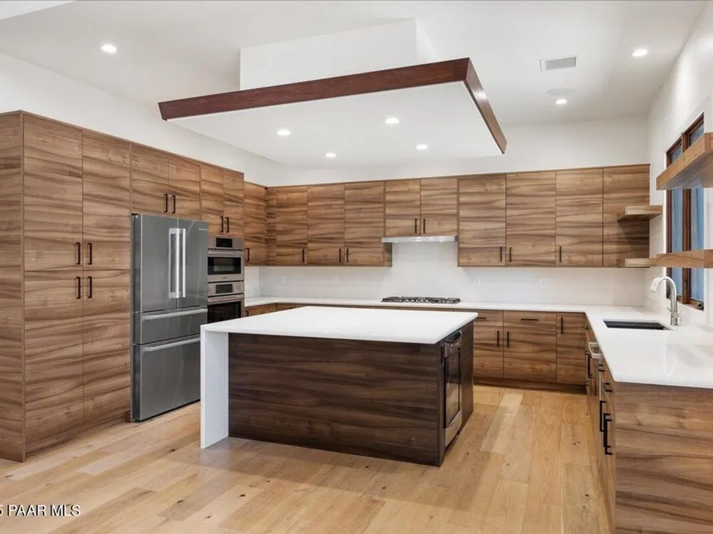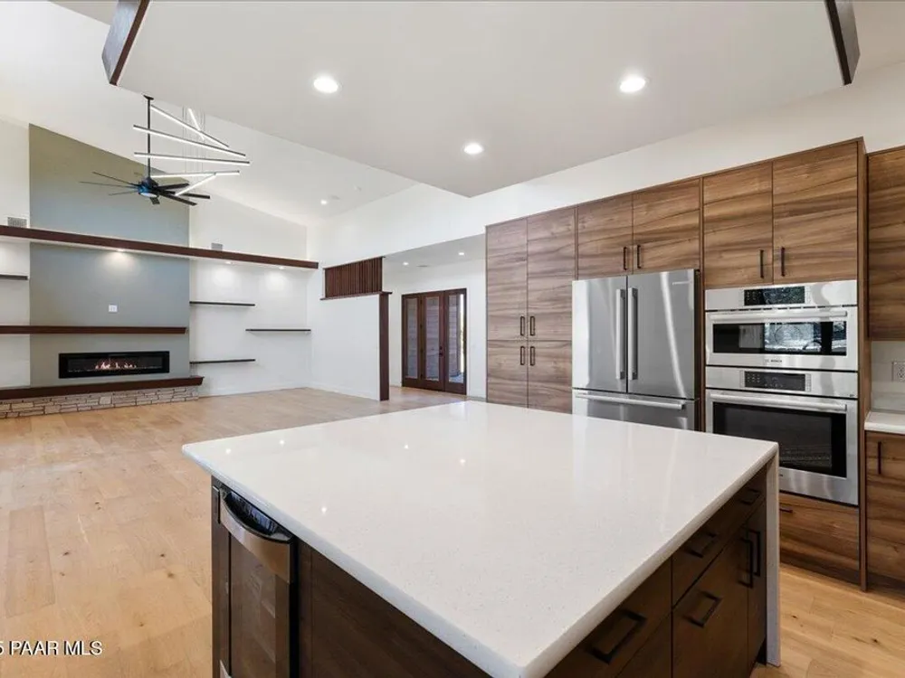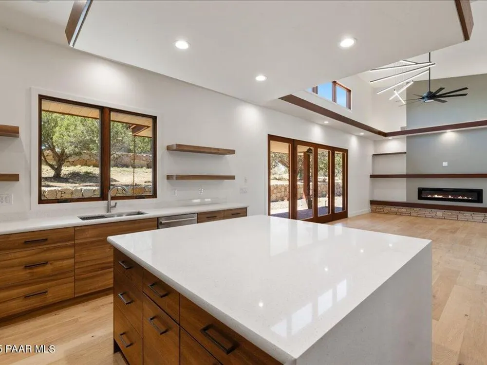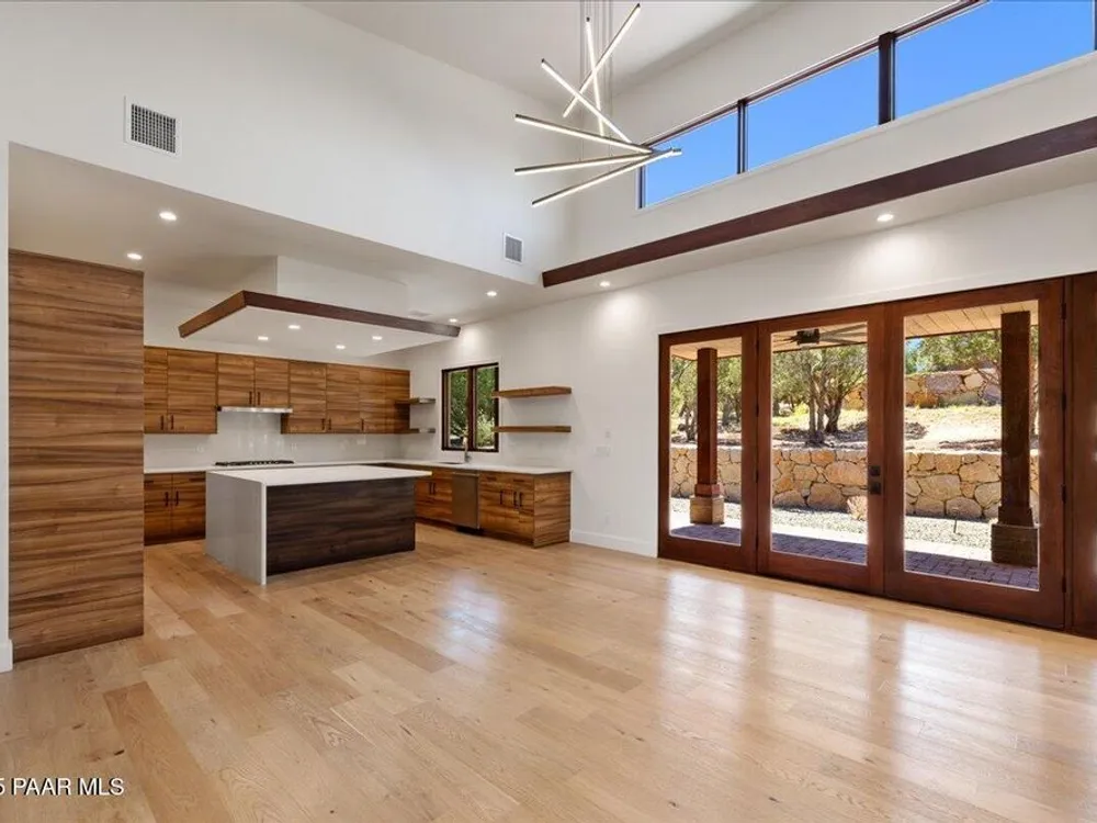 Where Modern Comfort Meets Rustic Elegance. Welcome to a home that doesn't just exist--it invites you to exhale. Tucked within the exclusive gates of Talking Rock Ranch, this newly built modern-rustic retreat blends refined design with everyday ease on a premium corner lot surrounded by nature's own sculpture garden of native boulders. Crafted for those seeking peace, purpose, and a slower pace--without sacrificing luxury--this home is ideal for those looking to trade in the hustle for high-desert serenity. From the moment you arrive, the architectural detail captures your eye. The exterior combines Douglas Fir siding, Cor-Ten steel, and a sleek standing seam roof--subtle yet striking, just like the landscape around it. The paver driveway leads you to a generous 1,000-square-foot, three-car garageperfect for housing your Arizona toys or setting up a hobby space.Step inside, and you'll feel the difference immediately. This is true one-level living, where every room flows effortlessly into the next. Natural light pours through clerestory windows and 10-foot ceilings, while white oak floors anchor the open living spaces in warmth and understated elegance. The great room is both expansive and intimate, with a ledgestone accent wall and modern electric fireplace offering a cozy backdrop to evenings spent with friends or a quiet book.At the heart of the home, the European-inspired kitchen is where form meets functionquartz countertops, sleek cabinetry, and Bosch appliances make this space both a showpiece and a workspace. Whether you're cooking for two or a table full of new neighbors, this kitchen keeps the conversation flowing. The primary suite feels like a private resort. Oversized windows let in the golden afternoon light, while the spa-like bath offers a walk-in shower, beautiful custom tilework, and premium Kohler fixtures. It's your sanctuary after a morning hike or a round of golf.Two additional bedrooms with en-suite bath and a flex roomideal for an office, media room, or visiting guestsensure that your lifestyle has room to grow and adapt. Smart wiring, built-in sound, and energy-efficient spray foam insulation mean this home is as forward-thinking as it is beautiful. Outside, the Arizona lifestyle unfolds across 1,000 square feet of covered patiosperfect for morning coffee or evenings cooled by ceiling fans and desert breezes. The xeriscaped yard is low-maintenance and fully irrigated, so you can spend your time exploring, entertaining, or simply enjoying the silence. This isn't just a houseit's your next chapter. A place to slow down and stretch out. A place where life is less about doing and more about being. Come experience the lifestyle that only Talking Rock Ranchand this thoughtfully designed homecan offer.