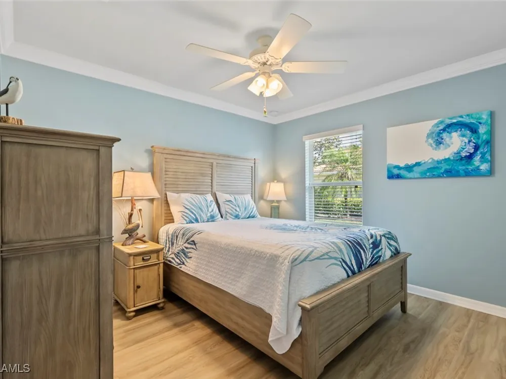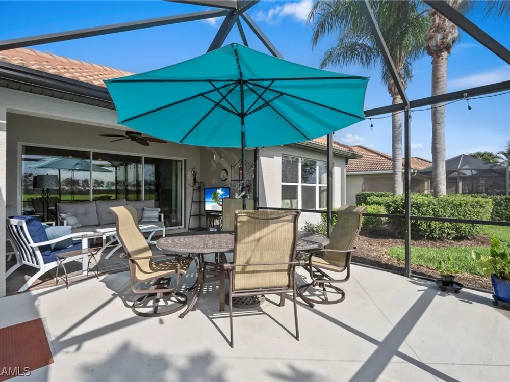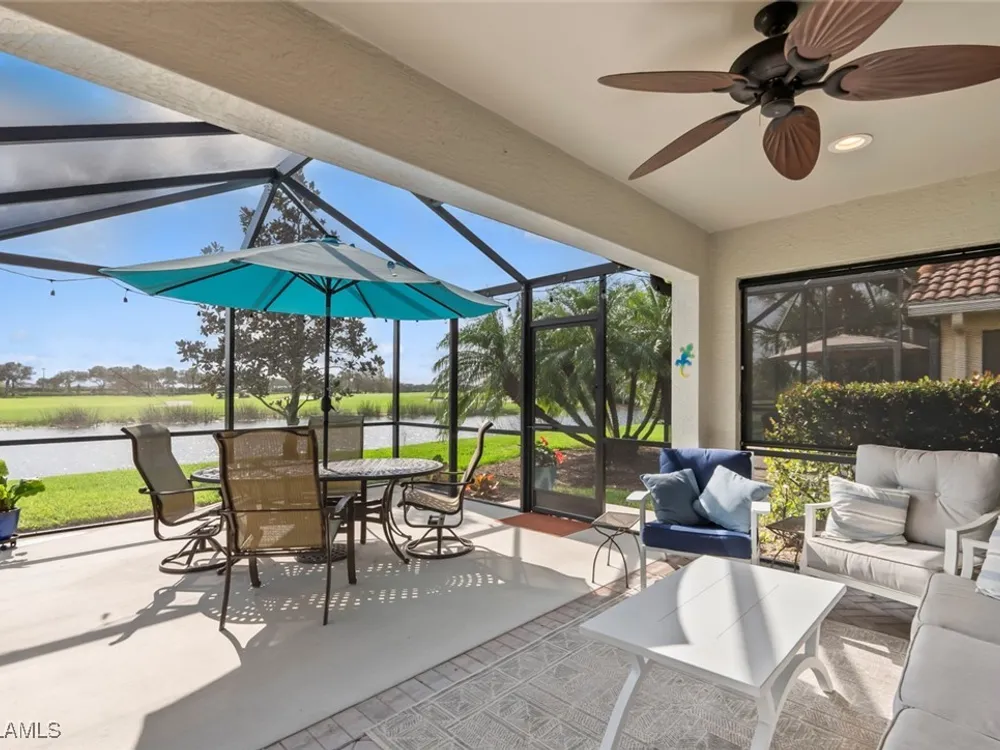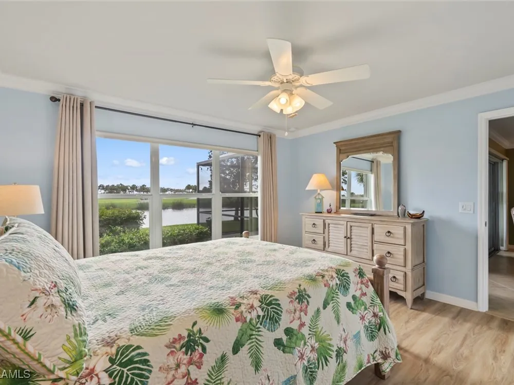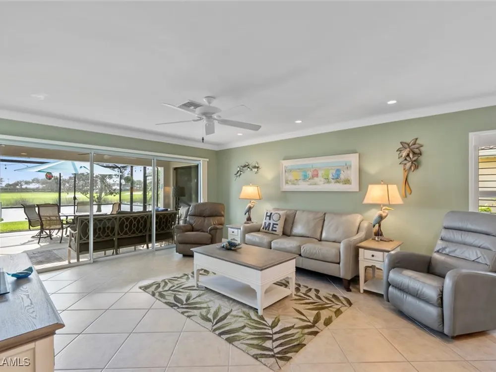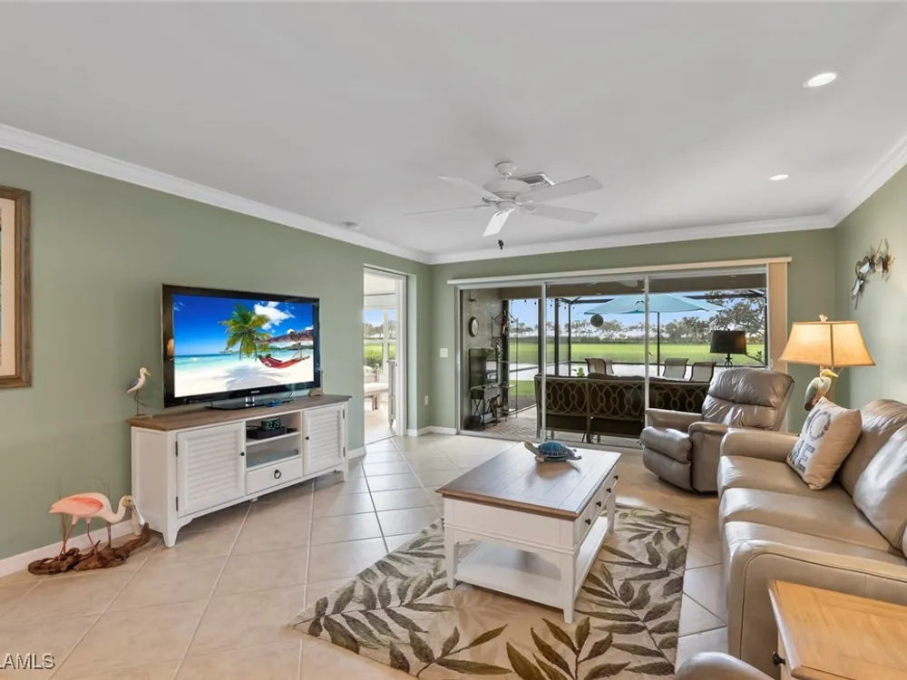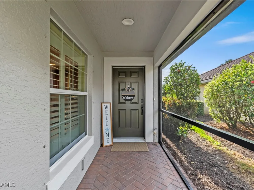 Located in the highly sought-after 55+ Del Webb Naples community, this IMMACULATE and FURNISHED Gray Myst floor plan is a true gem. Sellers are providing the GOLD HOME WARRANTY PACKAGE with the purchase of this home. Offering 3 bedrooms and 2 bathrooms, this beautifully upgraded home is designed to impress. Enjoy spectacular GOLF COURSE and WATER VIEWS from your EXTENDED LANAI, the perfect spot to unwind while taking in breathtaking SUNRISES each morning. The home features elegant 9-foot ceilings, crown molding, and TILE FLOORING throughout.The PLANTATION SHUTTERS throughout add a touch of sophistication while maintaining privacy. The kitchen is equipped with PULL OUT DRAWERS in the pantry and cabinets, sleek granite countertops, a convenient breakfast bar, and a cozy casual dining area—ideal for both entertaining and everyday living. The PRIMARY SUITE is a serene retreat, featuring a large WALK-IN CLOSET and an en-suite bathroom with dual vanities, offering both comfort and convenience. Two additional bedrooms provide ample space for family, guests, or a home office, ensuring flexibility to suit your needs. This home not only offers luxurious living but also a peaceful setting within a vibrant, active community. Golf enthusiasts will be thrilled to know there are AVAILABLE GOLF MEMBERSHIPS at the Panther Run Golf Club, offering an exceptional golfing experience. Experience the Del Webb Active Adult lifestyle with access to a range of amenities, including the Rusty Putter Restaurant, a RESORT-STYLE pool, lap pool, fitness center, PICKLEBALL, bocce and tennis courts, a GOLF SIMULATOR, and billiards. Explore Del Webb Naples and Ave Maria effortlessly in your golf cart, whether you're heading to Publix, church, or out for a delightful dinner. Embrace the lifestyle you deserve in this extraordinary home, where comfort, luxury, and convenience seamlessly come together.