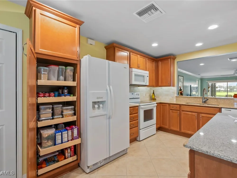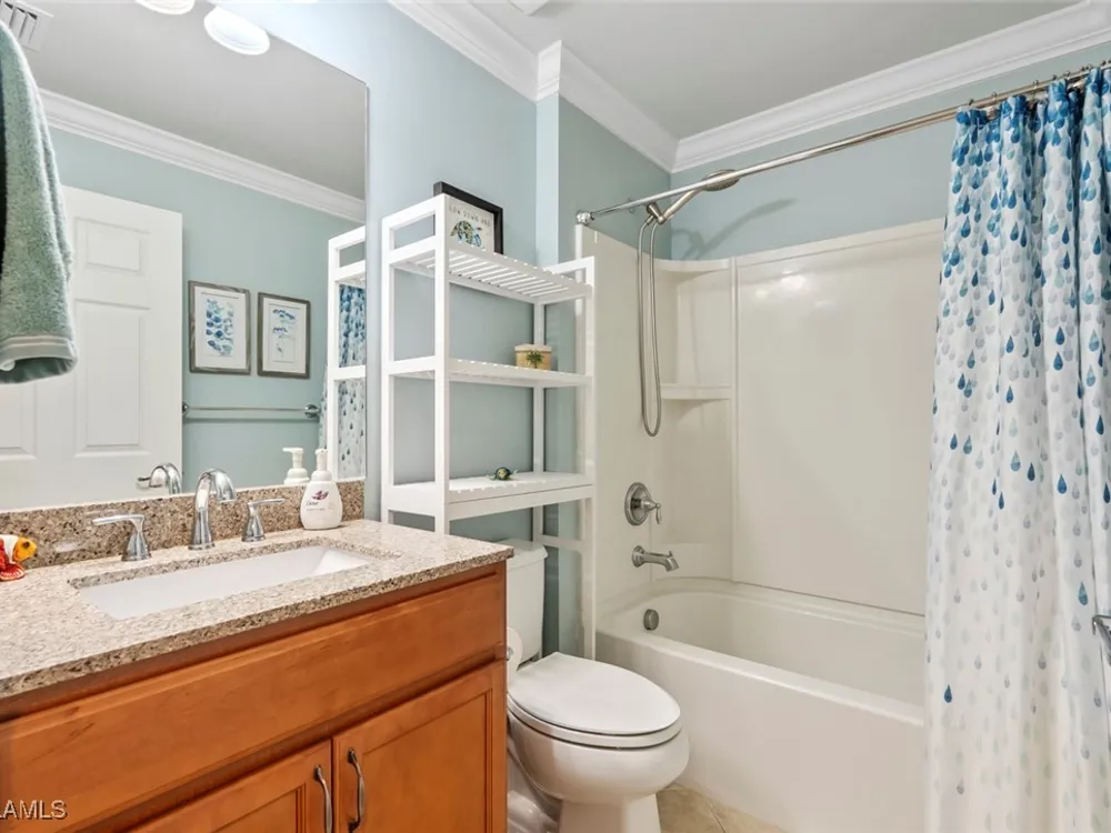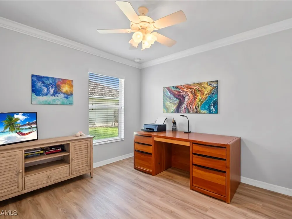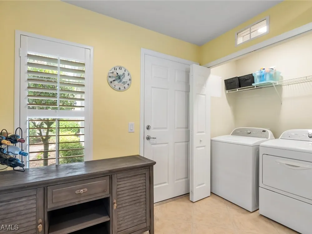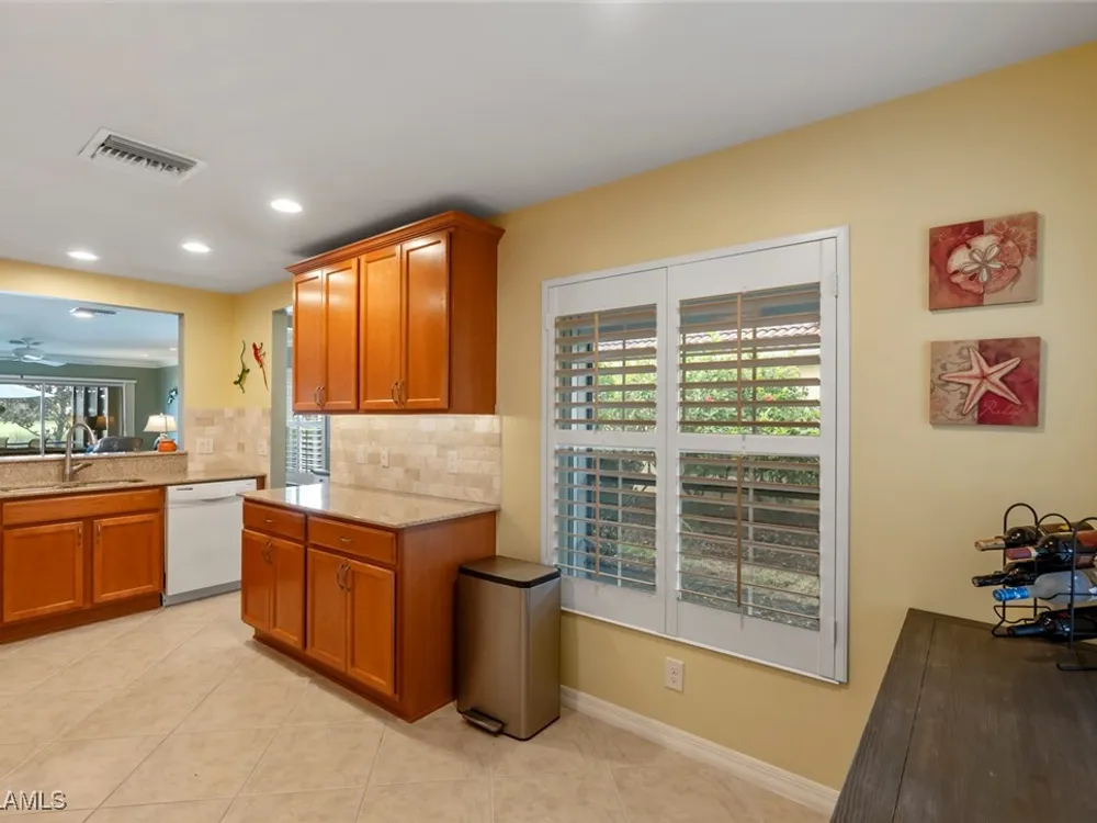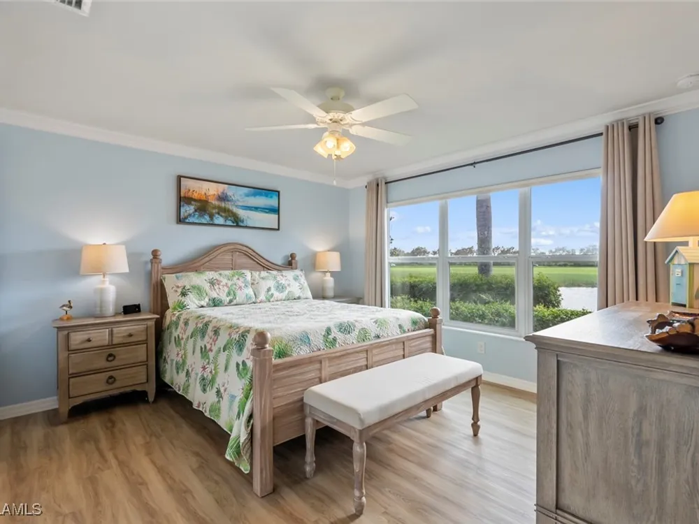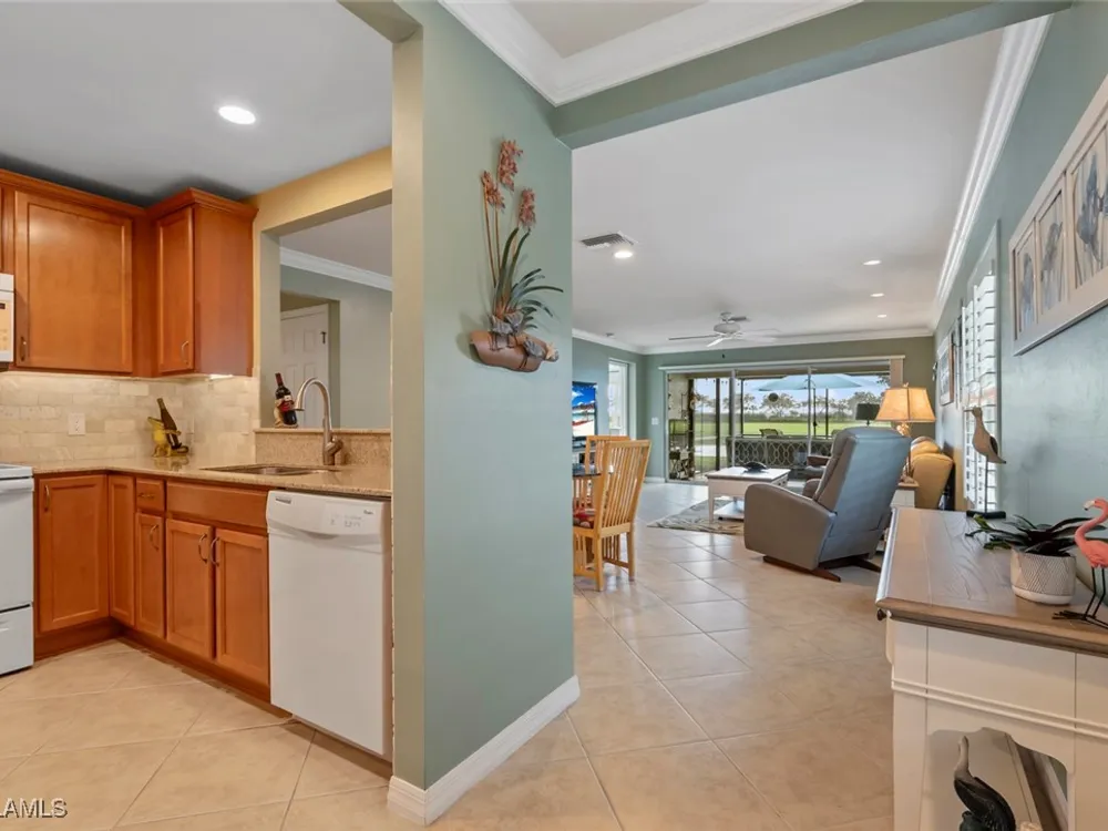 Located in the highly sought-after 55+ Del Webb Naples community, this IMMACULATE and FURNISHED Gray Myst floor plan is a true gem. Sellers are providing the GOLD HOME WARRANTY PACKAGE with the purchase of this home. Offering 3 bedrooms and 2 bathrooms, this beautifully upgraded home is designed to impress. Enjoy spectacular GOLF COURSE and WATER VIEWS from your EXTENDED LANAI, the perfect spot to unwind while taking in breathtaking SUNRISES each morning. The home features elegant 9-foot ceilings, crown molding, and TILE FLOORING throughout.The PLANTATION SHUTTERS throughout add a touch of sophistication while maintaining privacy. The kitchen is equipped with PULL OUT DRAWERS in the pantry and cabinets, sleek granite countertops, a convenient breakfast bar, and a cozy casual dining area—ideal for both entertaining and everyday living. The PRIMARY SUITE is a serene retreat, featuring a large WALK-IN CLOSET and an en-suite bathroom with dual vanities, offering both comfort and convenience. Two additional bedrooms provide ample space for family, guests, or a home office, ensuring flexibility to suit your needs. This home not only offers luxurious living but also a peaceful setting within a vibrant, active community. Golf enthusiasts will be thrilled to know there are AVAILABLE GOLF MEMBERSHIPS at the Panther Run Golf Club, offering an exceptional golfing experience. Experience the Del Webb Active Adult lifestyle with access to a range of amenities, including the Rusty Putter Restaurant, a RESORT-STYLE pool, lap pool, fitness center, PICKLEBALL, bocce and tennis courts, a GOLF SIMULATOR, and billiards. Explore Del Webb Naples and Ave Maria effortlessly in your golf cart, whether you're heading to Publix, church, or out for a delightful dinner. Embrace the lifestyle you deserve in this extraordinary home, where comfort, luxury, and convenience seamlessly come together.