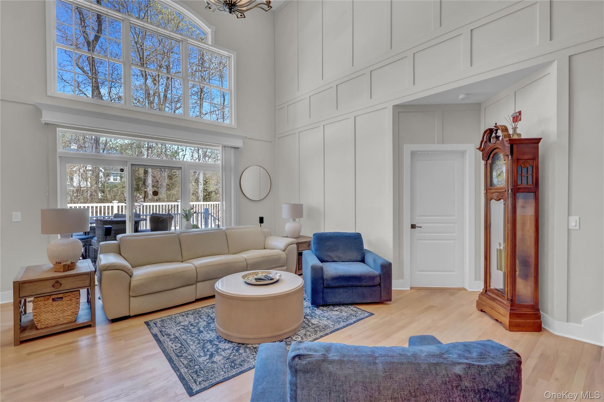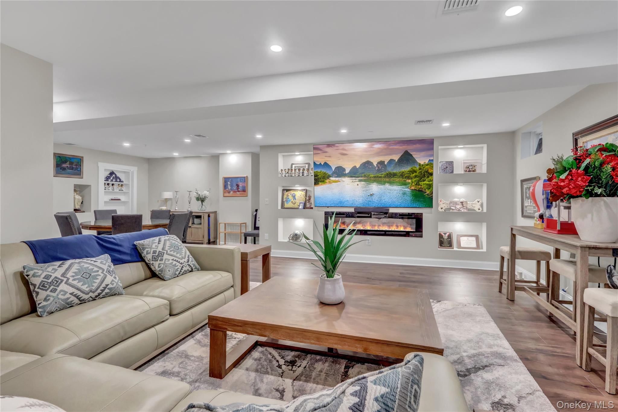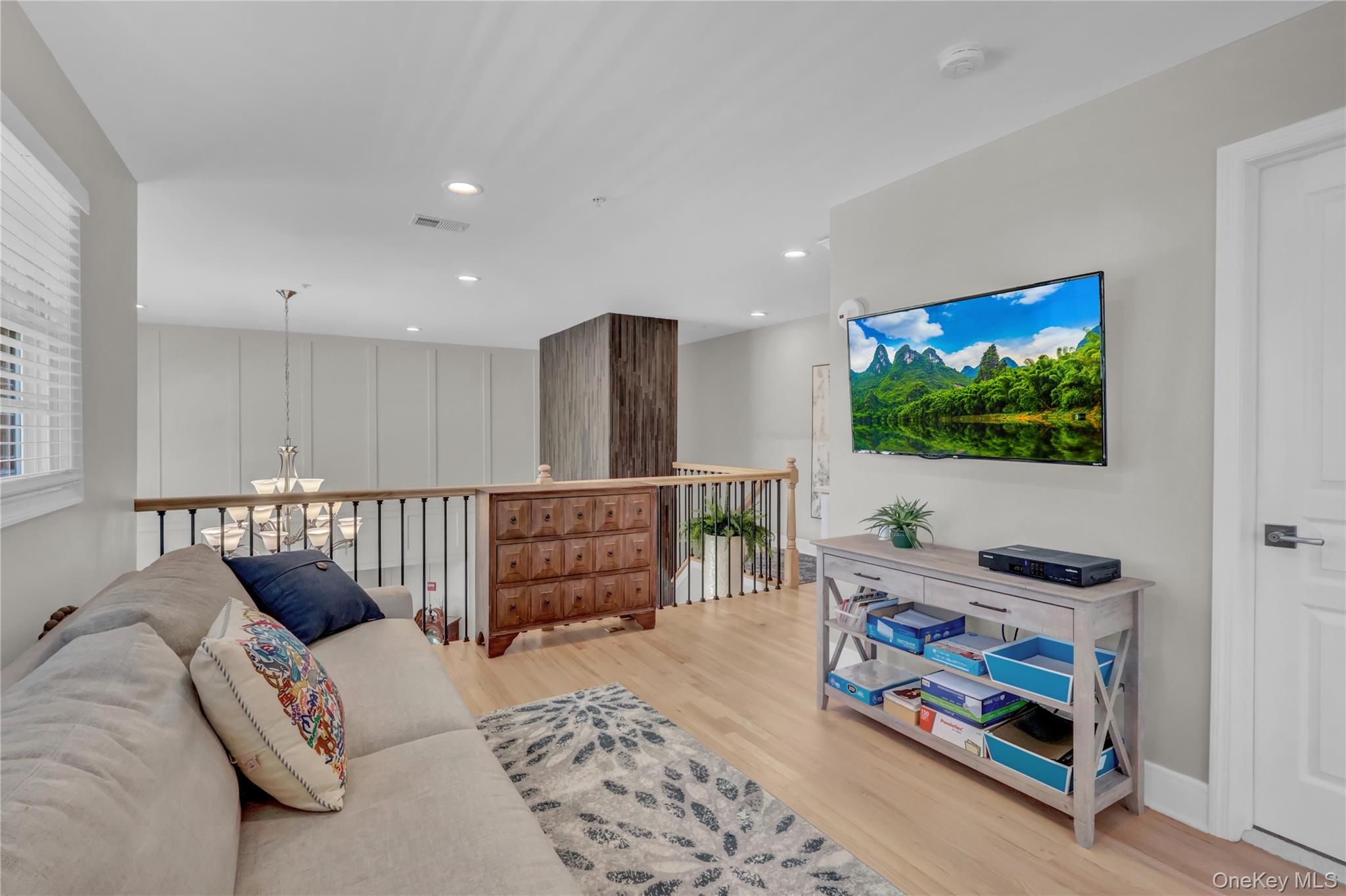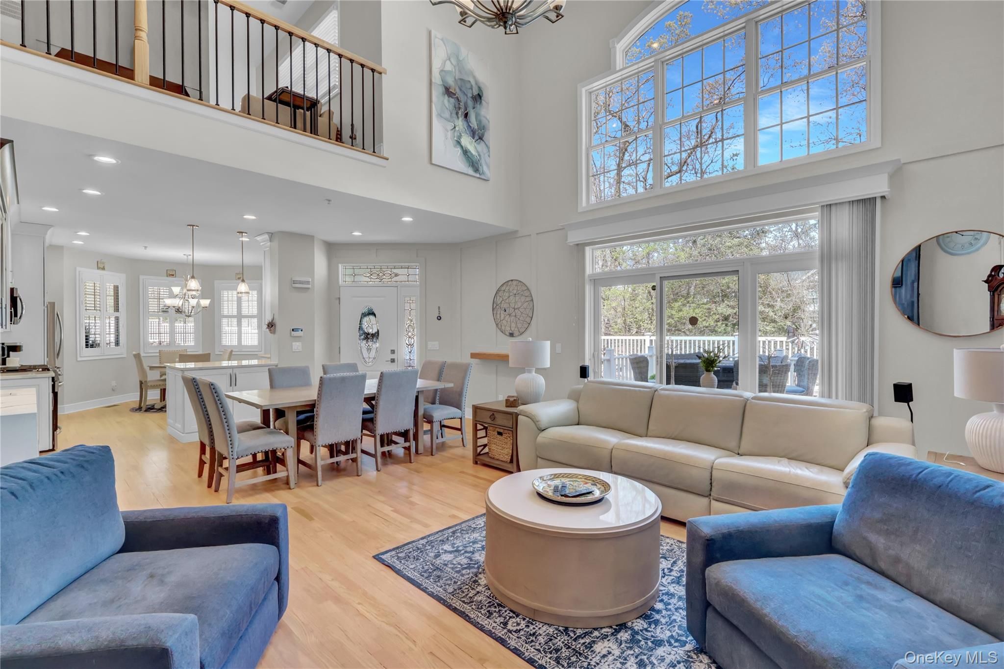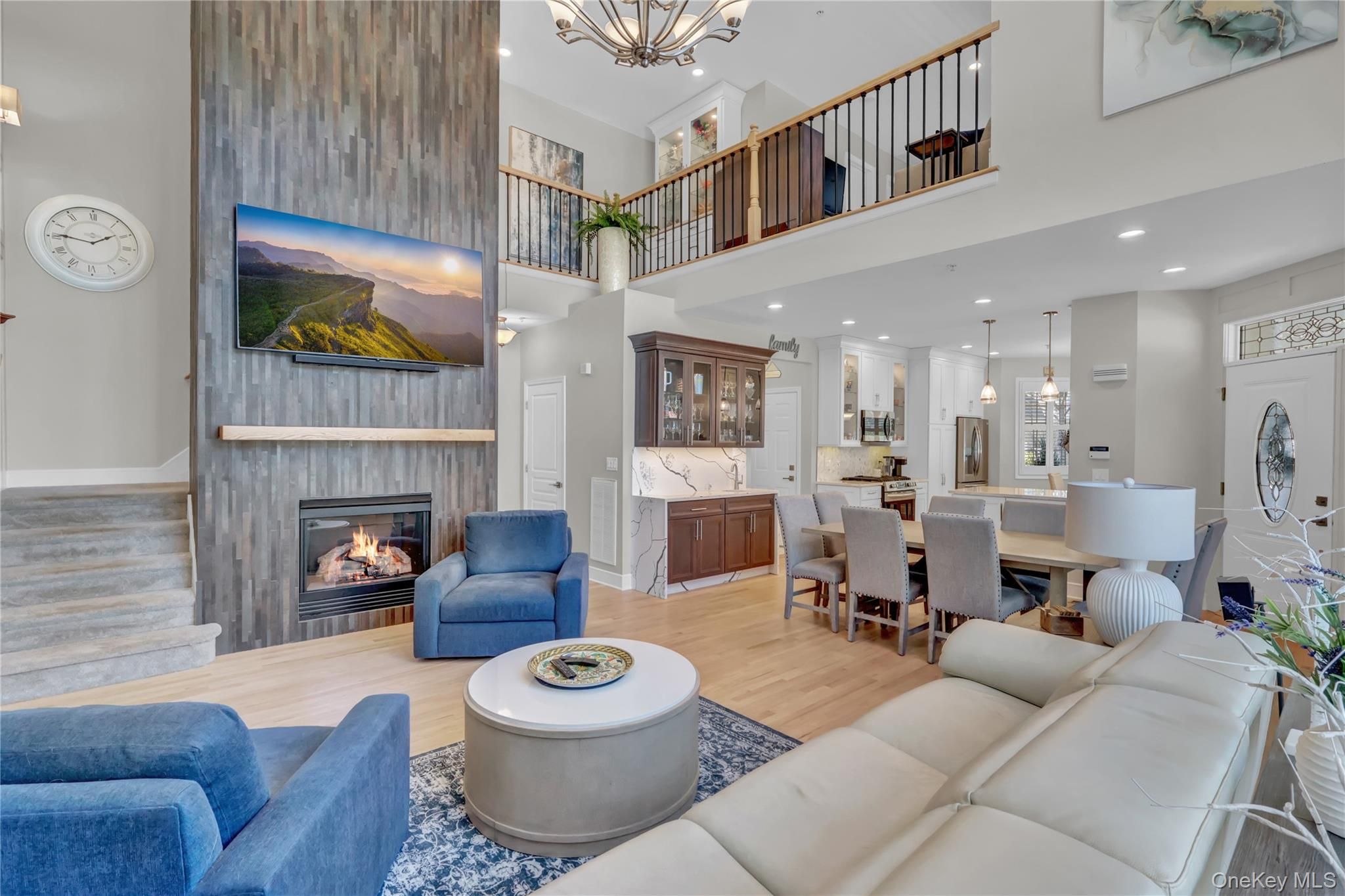 A truly exceptional offering in Setauket Meadows—this stunning corner-unit Belle Terre model stands apart as one of the finest, blending privacy, elegance, and top-tier upgrades throughout. Completely remodeled with a refined eye for detail, the home showcases rich hardwood floors, a beautifully updated chef’s kitchen, custom wet bar, and a stylish powder room. The living room is nothing short of spectacular, centered around a striking gas fireplace and enhanced by a designer chandelier with lift—perfectly balancing luxury and functionality. The main-level primary suite is a true showpiece, offering the ease of first-floor living with a spa-inspired full bath featuring a double shower and radiant heated floors. louvered shutters throughout add a timeless sophistication and elevated privacy. Upstairs, a versatile loft overlooks the living space, complemented by a spacious second bedroom and a fully updated bath—ideal for guests or extended living. The lower level will exceed expectations—an impressive, finished space designed for entertaining, relaxation, or a high-end home office setup. Outdoor living is just as inviting, with a private deck and patio creating the perfect backdrop for quiet mornings or evening gatherings. This is not just a home—it’s a statement. Rarely does a corner unit of this caliber, condition, and location come to market in Setauket Meadows.
