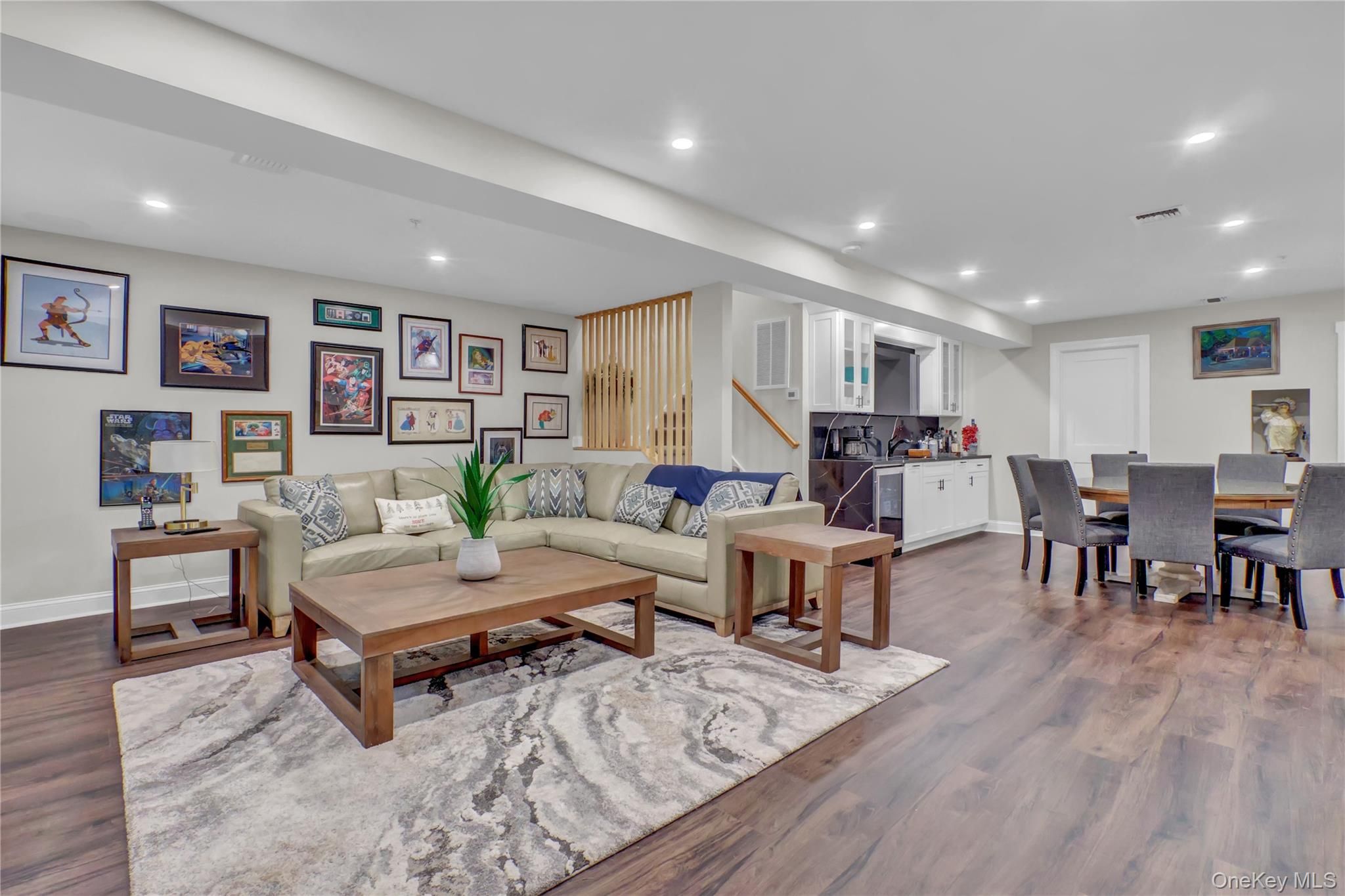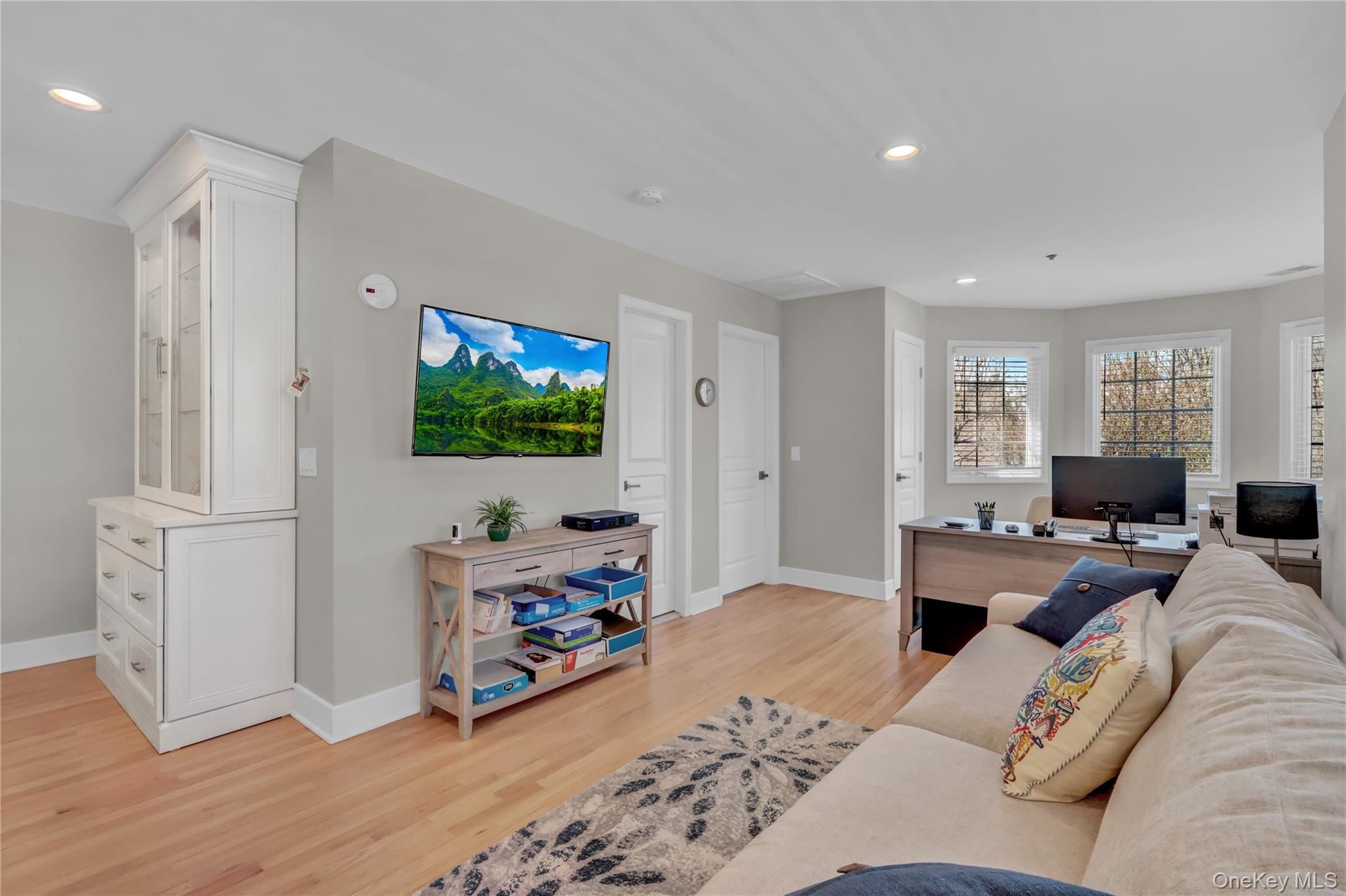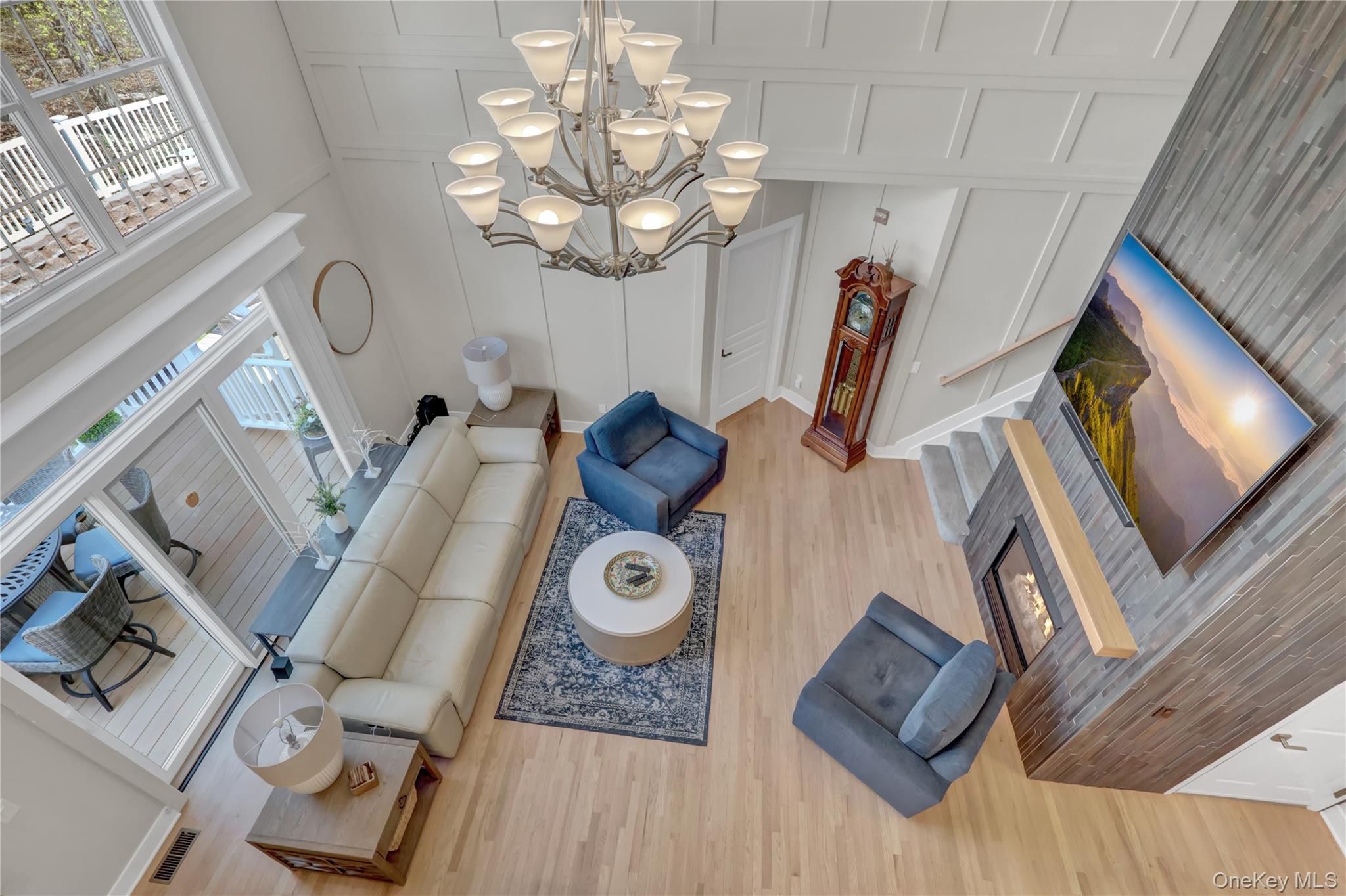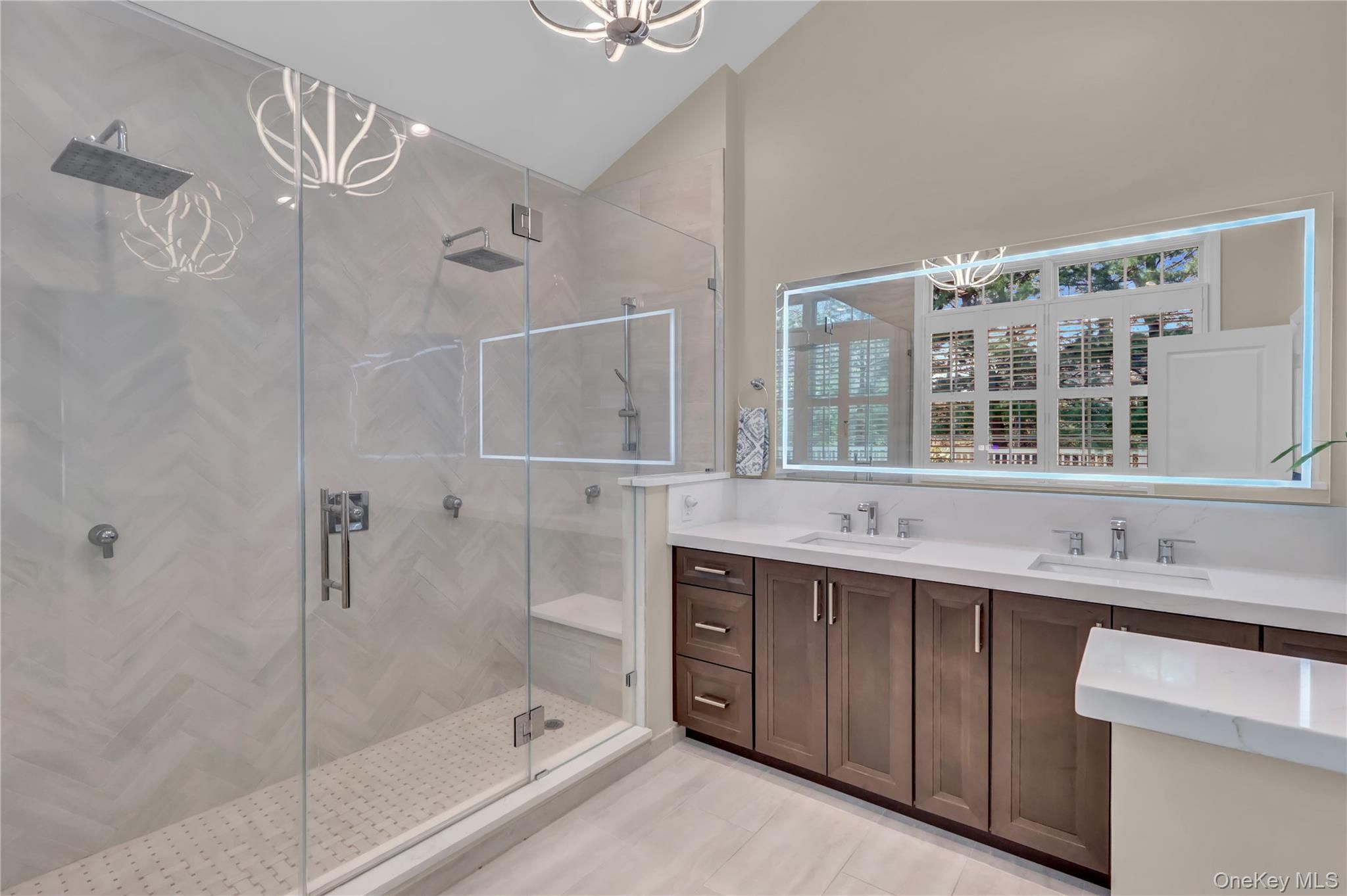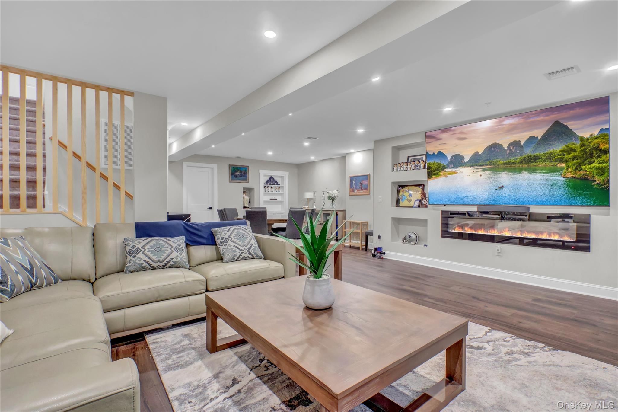 A truly exceptional offering in Setauket Meadows—this stunning corner-unit Belle Terre model stands apart as one of the finest, blending privacy, elegance, and top-tier upgrades throughout. Completely remodeled with a refined eye for detail, the home showcases rich hardwood floors, a beautifully updated chef’s kitchen, custom wet bar, and a stylish powder room. The living room is nothing short of spectacular, centered around a striking gas fireplace and enhanced by a designer chandelier with lift—perfectly balancing luxury and functionality. The main-level primary suite is a true showpiece, offering the ease of first-floor living with a spa-inspired full bath featuring a double shower and radiant heated floors. louvered shutters throughout add a timeless sophistication and elevated privacy. Upstairs, a versatile loft overlooks the living space, complemented by a spacious second bedroom and a fully updated bath—ideal for guests or extended living. The lower level will exceed expectations—an impressive, finished space designed for entertaining, relaxation, or a high-end home office setup. Outdoor living is just as inviting, with a private deck and patio creating the perfect backdrop for quiet mornings or evening gatherings. This is not just a home—it’s a statement. Rarely does a corner unit of this caliber, condition, and location come to market in Setauket Meadows.