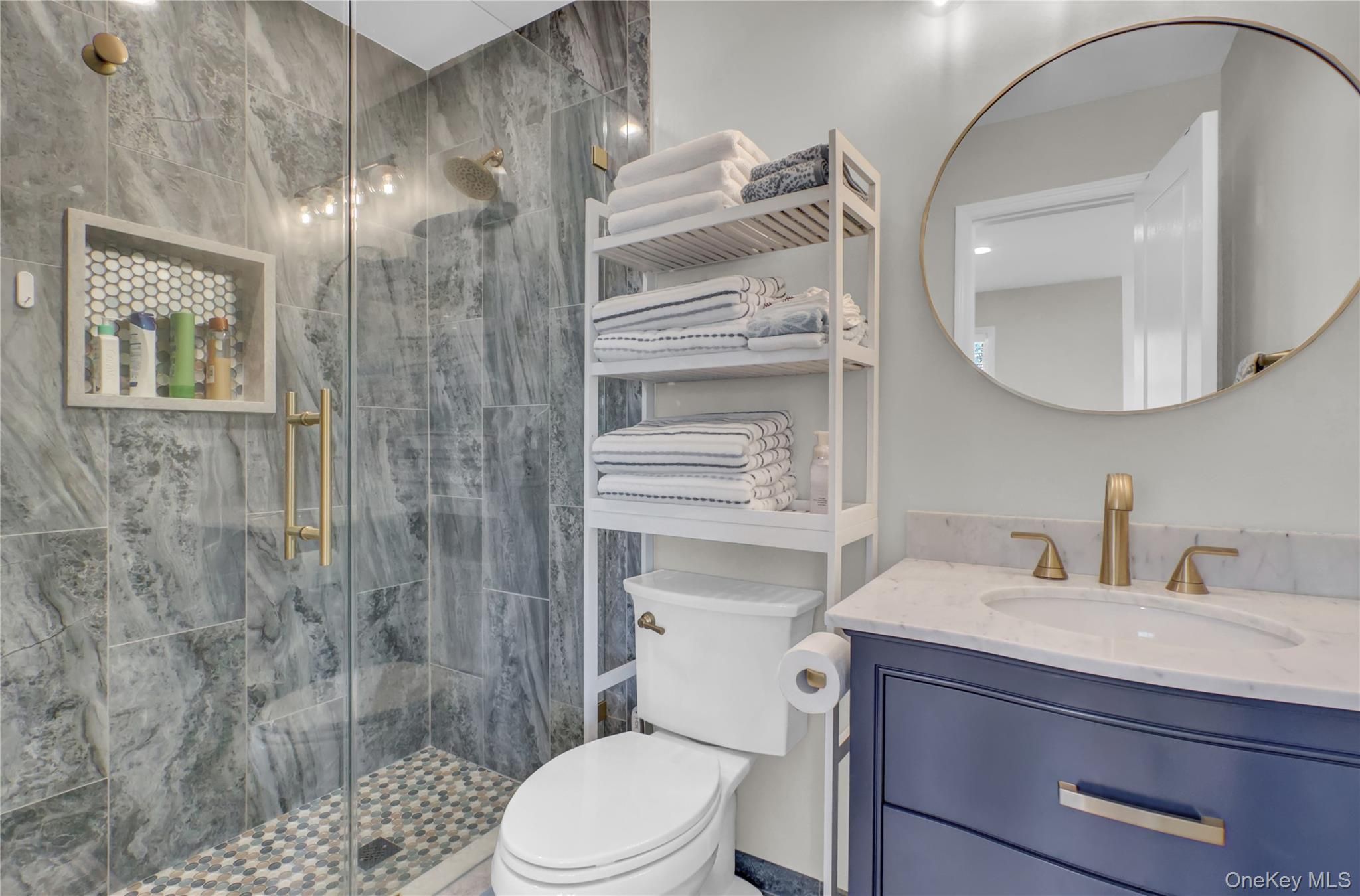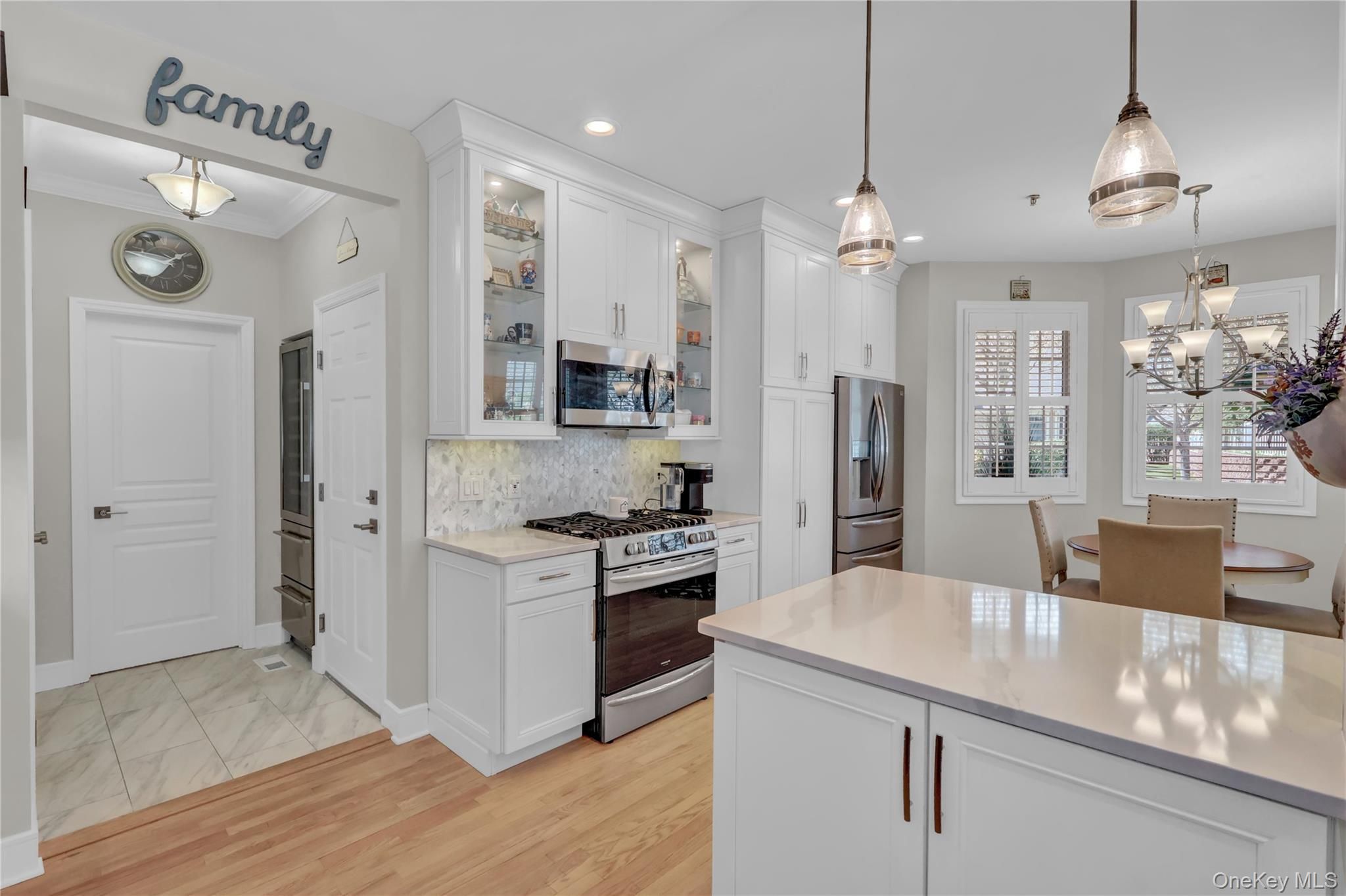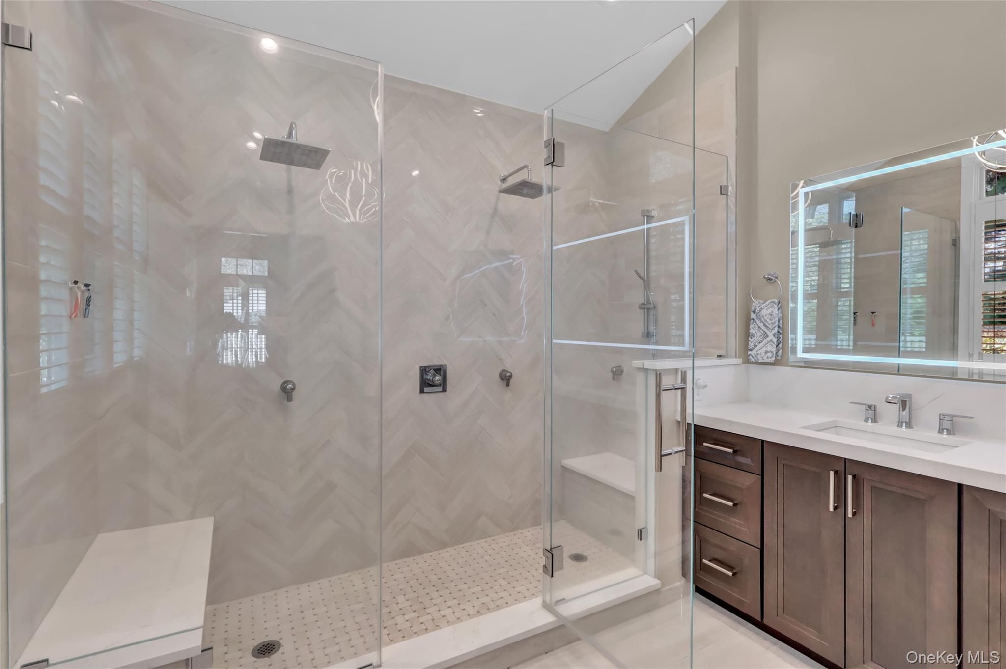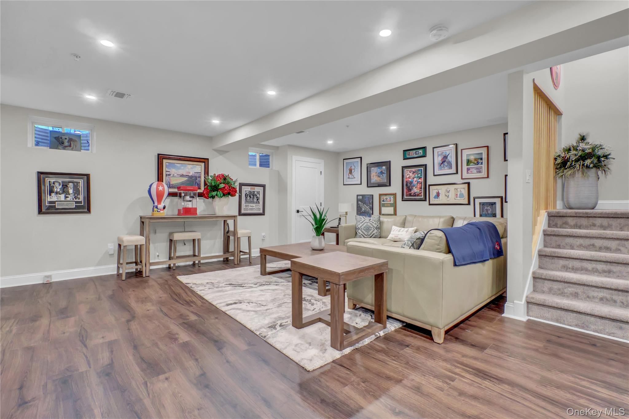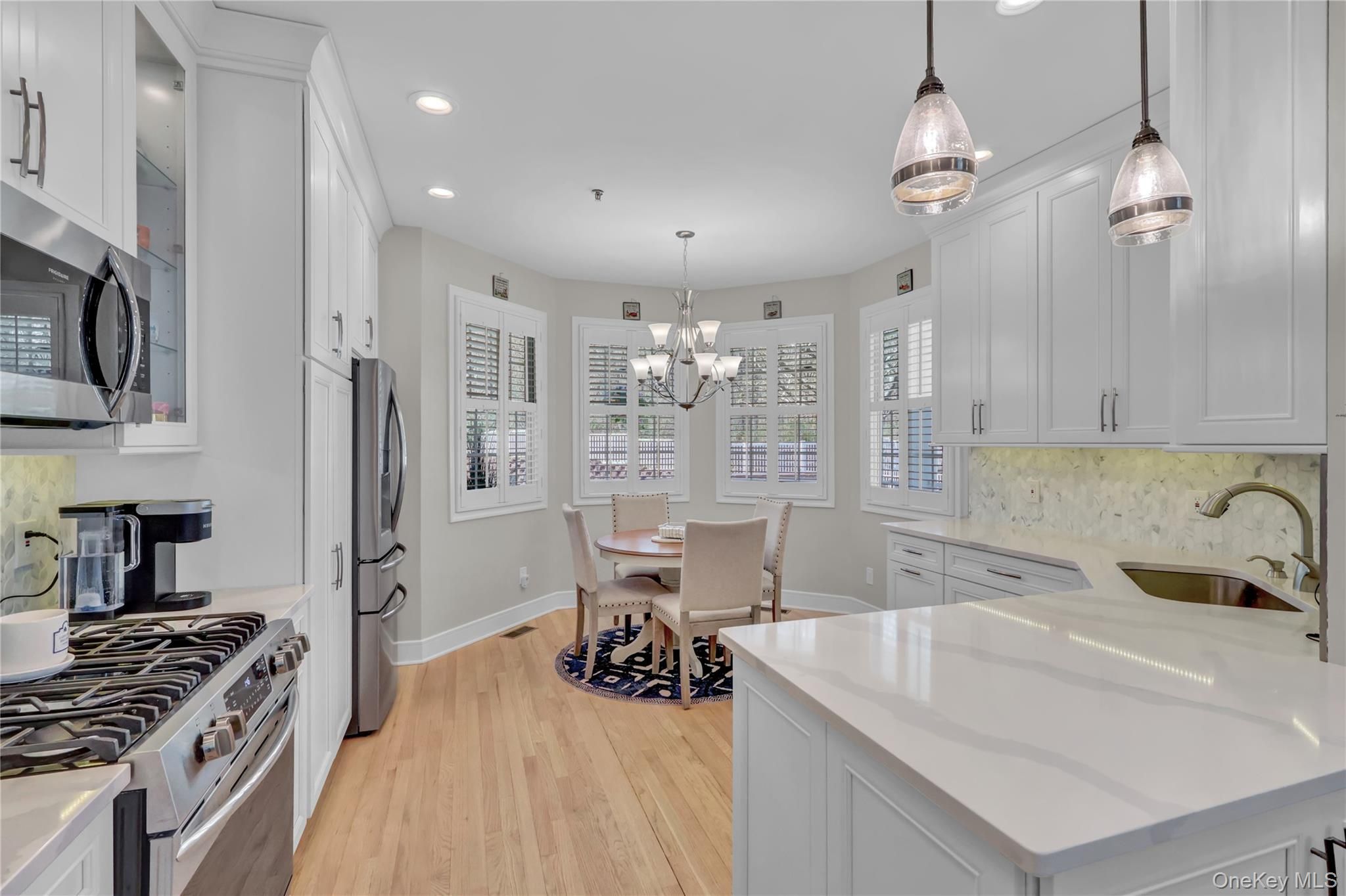 A truly exceptional offering in Setauket Meadows—this stunning corner-unit Belle Terre model stands apart as one of the finest, blending privacy, elegance, and top-tier upgrades throughout. Completely remodeled with a refined eye for detail, the home showcases rich hardwood floors, a beautifully updated chef’s kitchen, custom wet bar, and a stylish powder room. The living room is nothing short of spectacular, centered around a striking gas fireplace and enhanced by a designer chandelier with lift—perfectly balancing luxury and functionality. The main-level primary suite is a true showpiece, offering the ease of first-floor living with a spa-inspired full bath featuring a double shower and radiant heated floors. louvered shutters throughout add a timeless sophistication and elevated privacy. Upstairs, a versatile loft overlooks the living space, complemented by a spacious second bedroom and a fully updated bath—ideal for guests or extended living. The lower level will exceed expectations—an impressive, finished space designed for entertaining, relaxation, or a high-end home office setup. Outdoor living is just as inviting, with a private deck and patio creating the perfect backdrop for quiet mornings or evening gatherings. This is not just a home—it’s a statement. Rarely does a corner unit of this caliber, condition, and location come to market in Setauket Meadows.