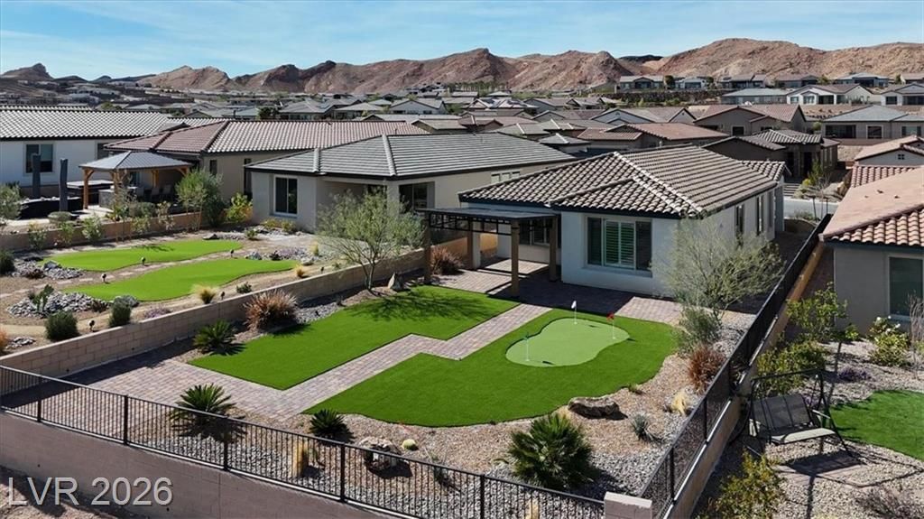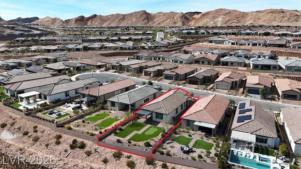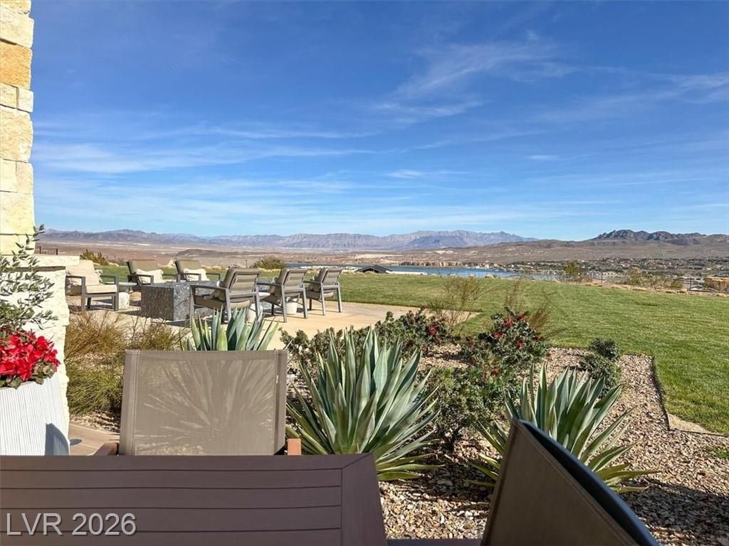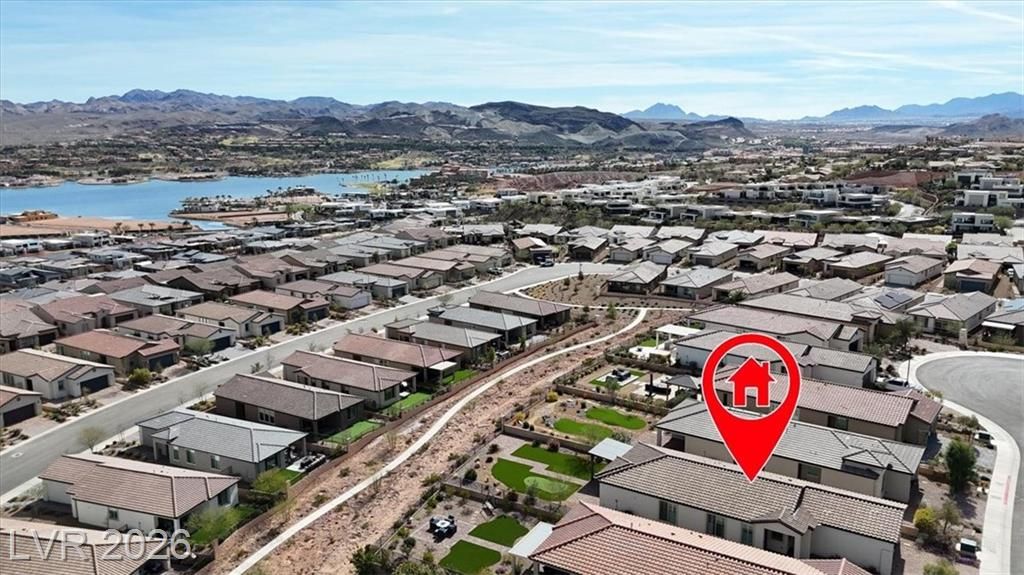 The most breathtaking east-facing backyard in all of Lake Las Vegas — and it can be yours.Perched 50 feet above the neighborhood on one of the community's largest lots, 58 Lake Bluff Court delivers sweeping 180-degree lake and mountain views that simply cannot be replicated. Built in 2023, this immaculate 2-bed, 2-bath plus den is completely turn-key — featuring wide-plank luxury vinyl floors, slab Calacatta countertops, custom glass cabinetry, stainless appliances, plantation shutters, smart home technology, and a whole-house water filtration system. The private den with French doors and built-in Murphy bed doubles as a perfect guest suite. Step outside to your covered patio with pergola extension where sunsets become a nightly event. Resort-style clubhouse amenities included. Gated. Age-restricted. One-of-a-kind.
