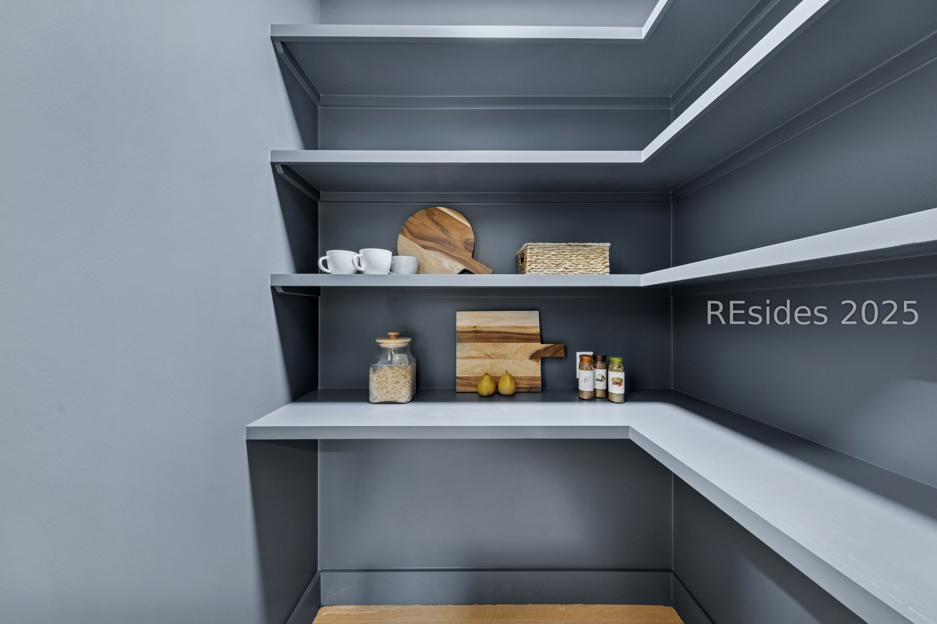 - Built-in Features, Cathedral Ceiling(s), High Ceilings, Main Level Primary, Multiple Primary Bathrooms, Pull Down Attic Stairs, Smooth Ceilings, Separate Shower, Vaulted Ceiling(s), Eat-in Kitchen, New Paint, Pantry