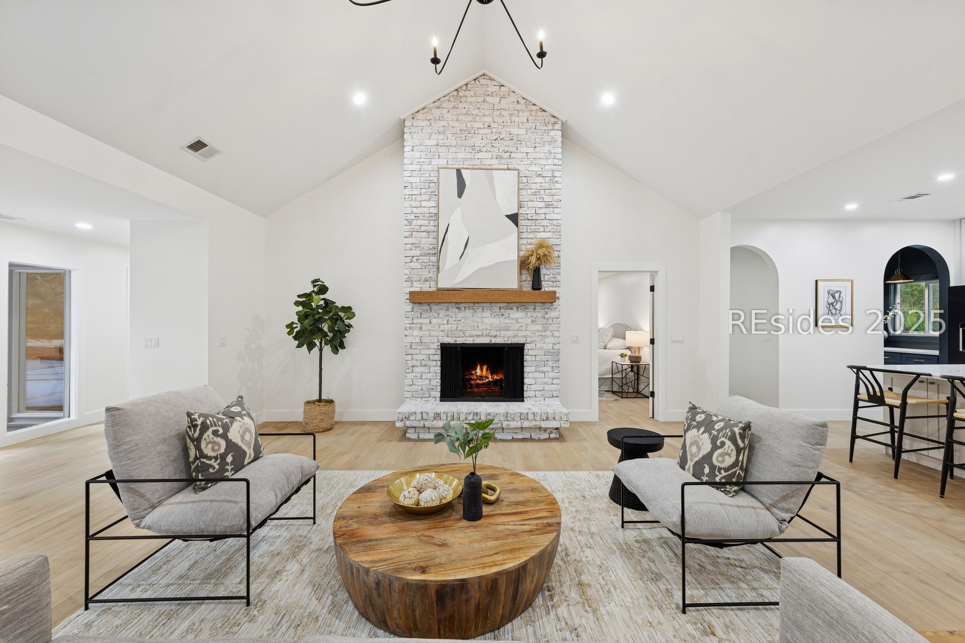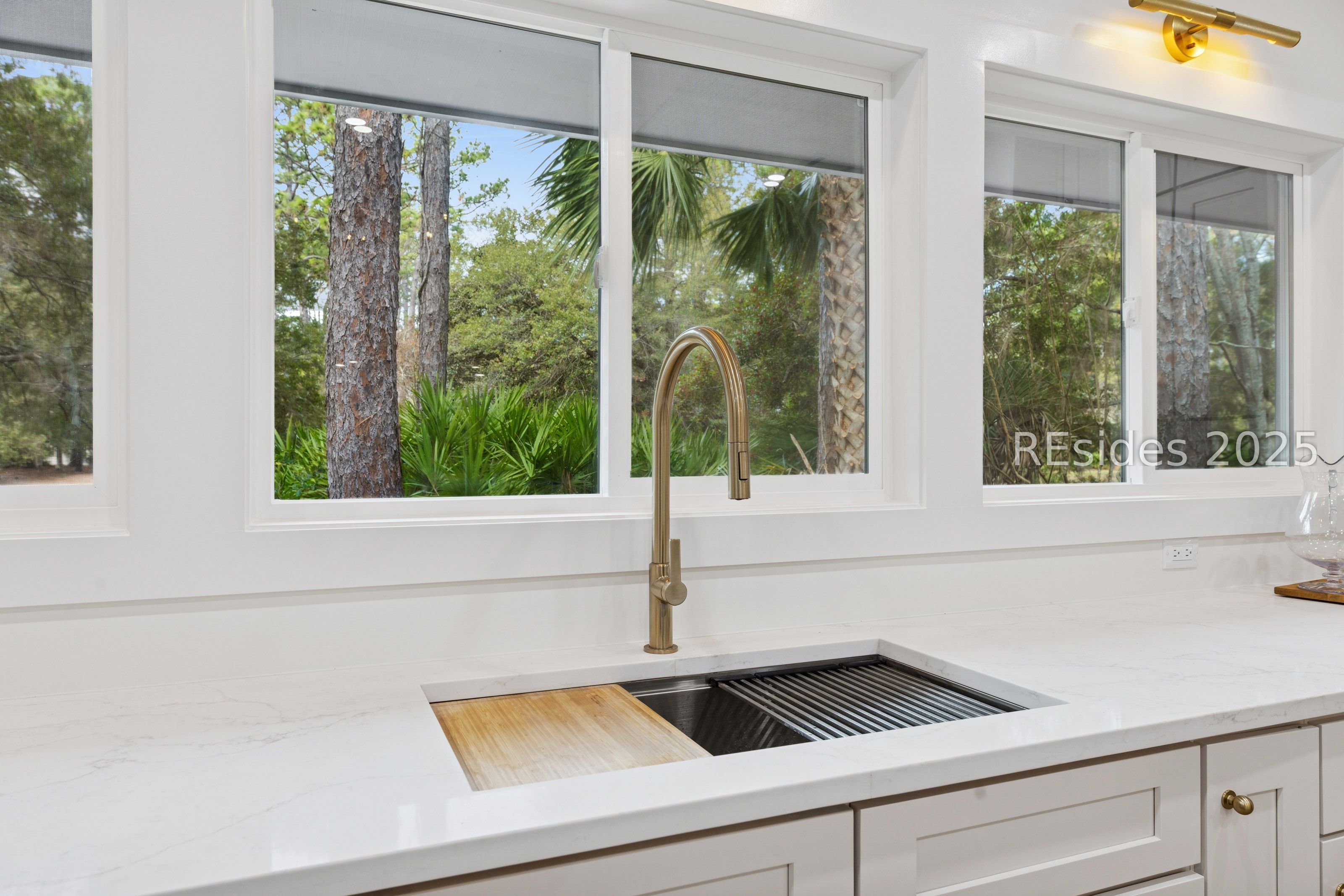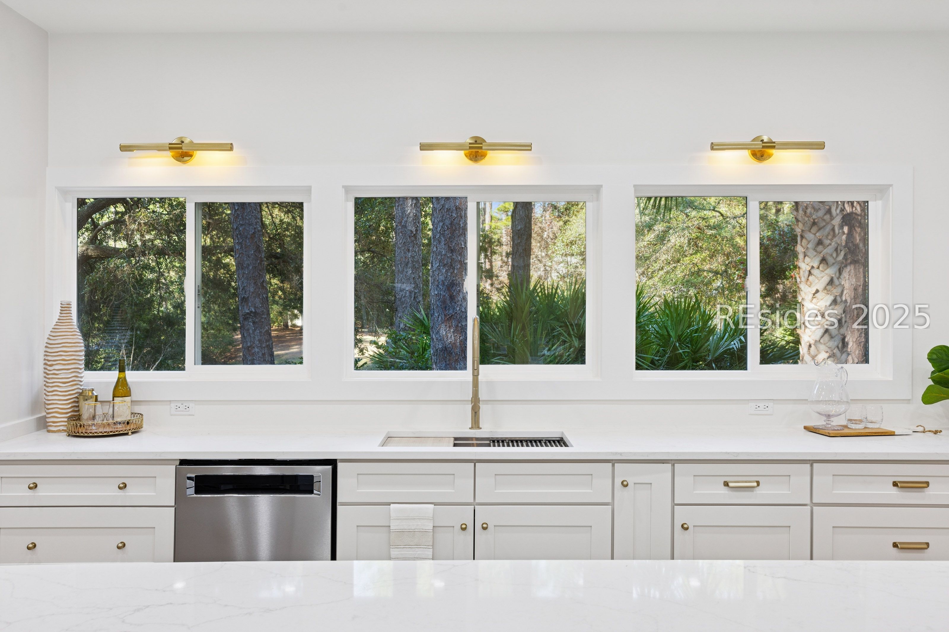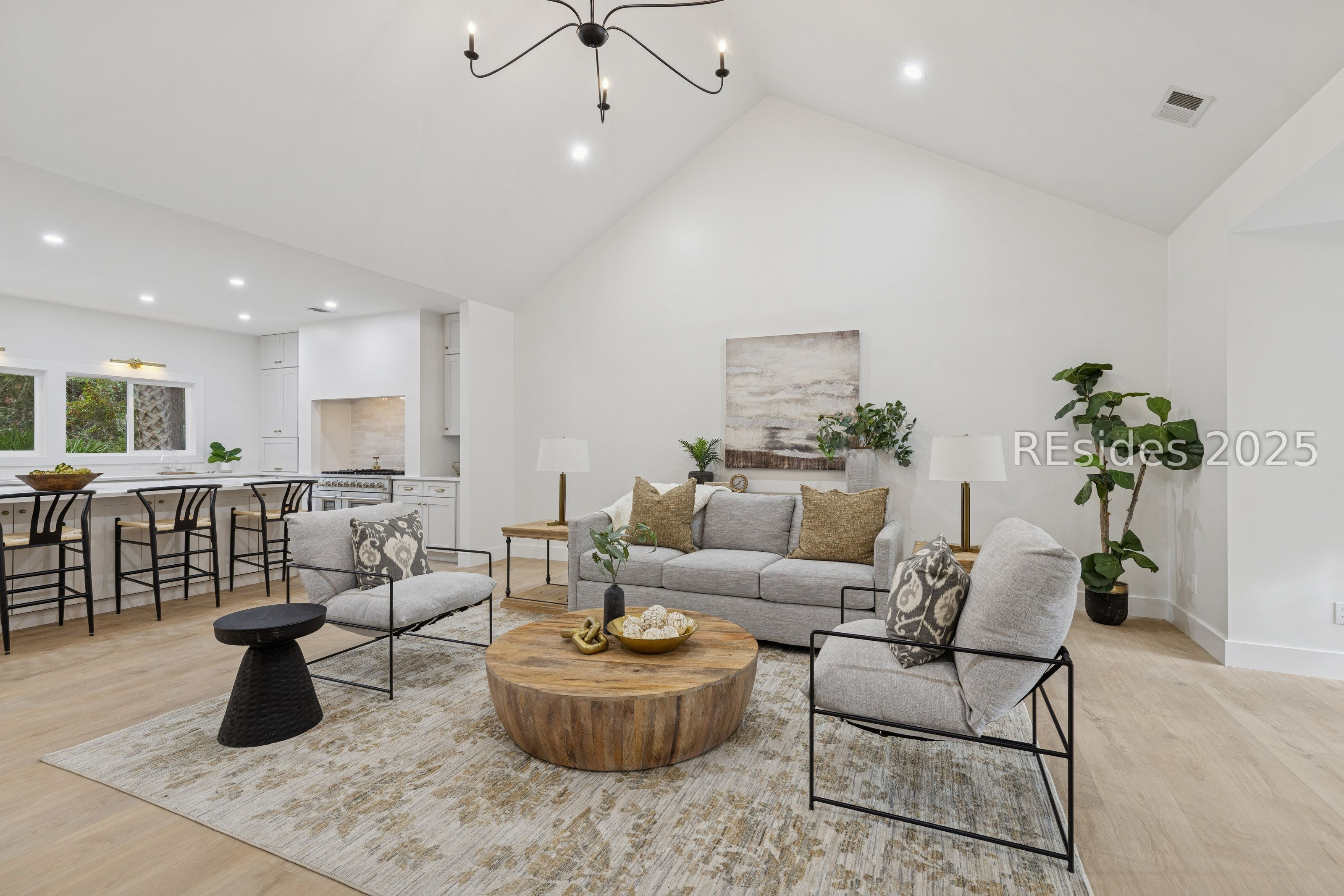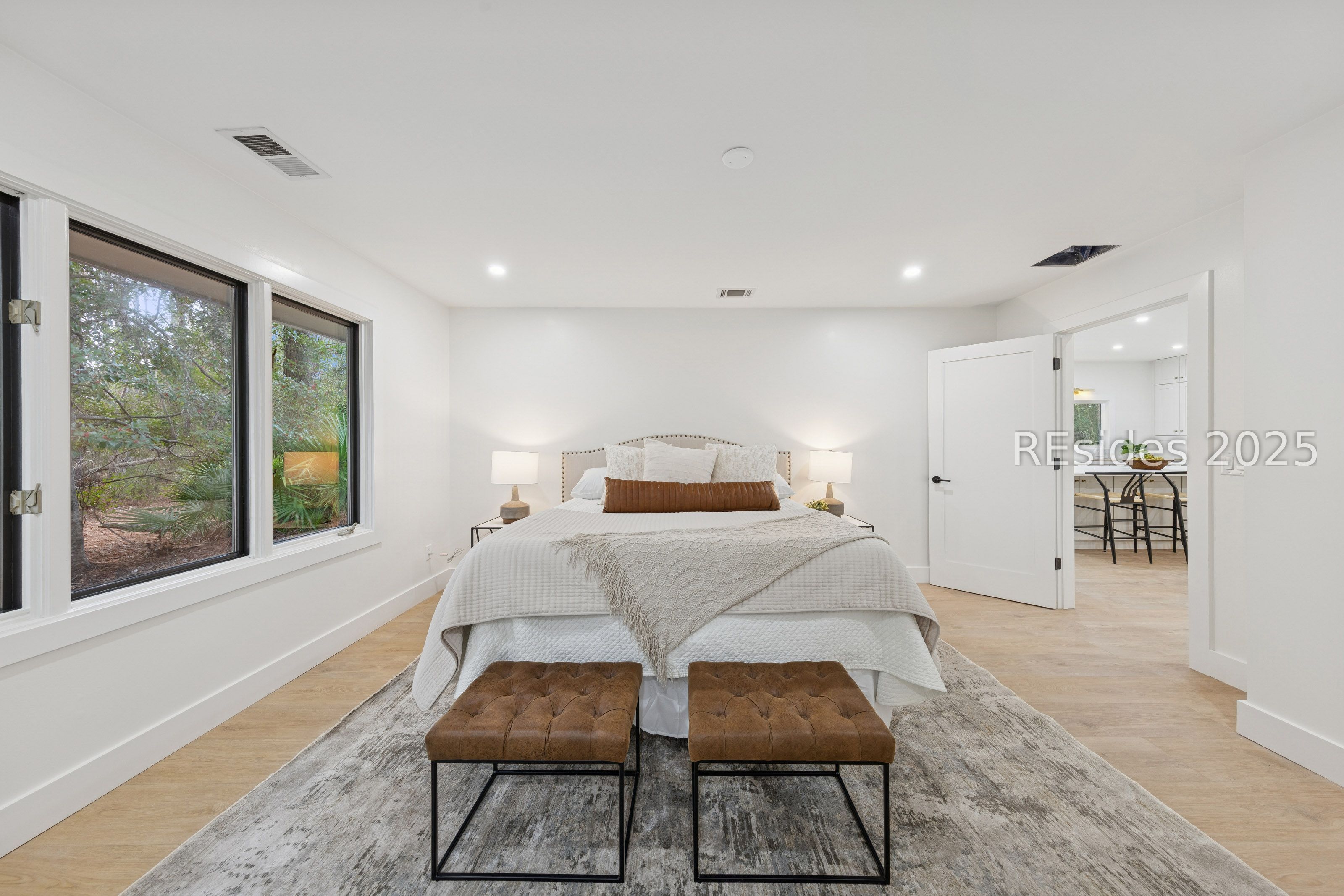 Located within the tranquil community of Hilton Head Plantation, this coastal modern home offers refined Lowcountry living on a nearly half-acre, private lagoon-front lot. Completely renovated, it features a bright, open floor plan with soaring cathedral ceilings and abundant natural light. The chef's kitchen includes a spacious island, quartz countertops, 48 inch gas range, kitchen aid appliances, and is ideal for both everyday living and entertaining. Four spacious bedrooms each include their own en suite bath, complemented by a dedicated office. Additional highlights include a huge roundabout driveway with ample parking, two-car garage, brand-new HVAC system, and thoughtful upgrades throughout, creating a move-in-ready retreat with exceptional privacy and serene water views.