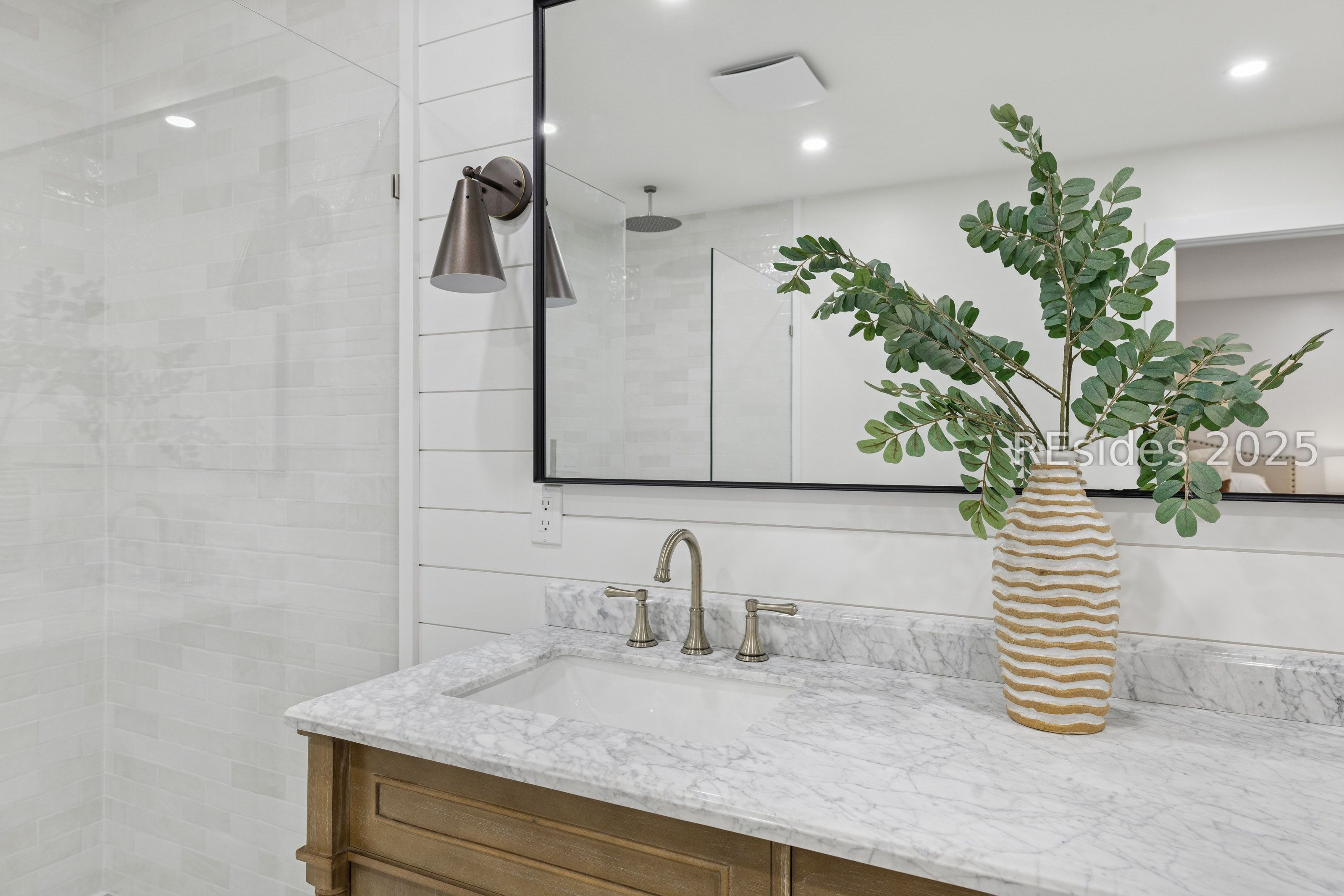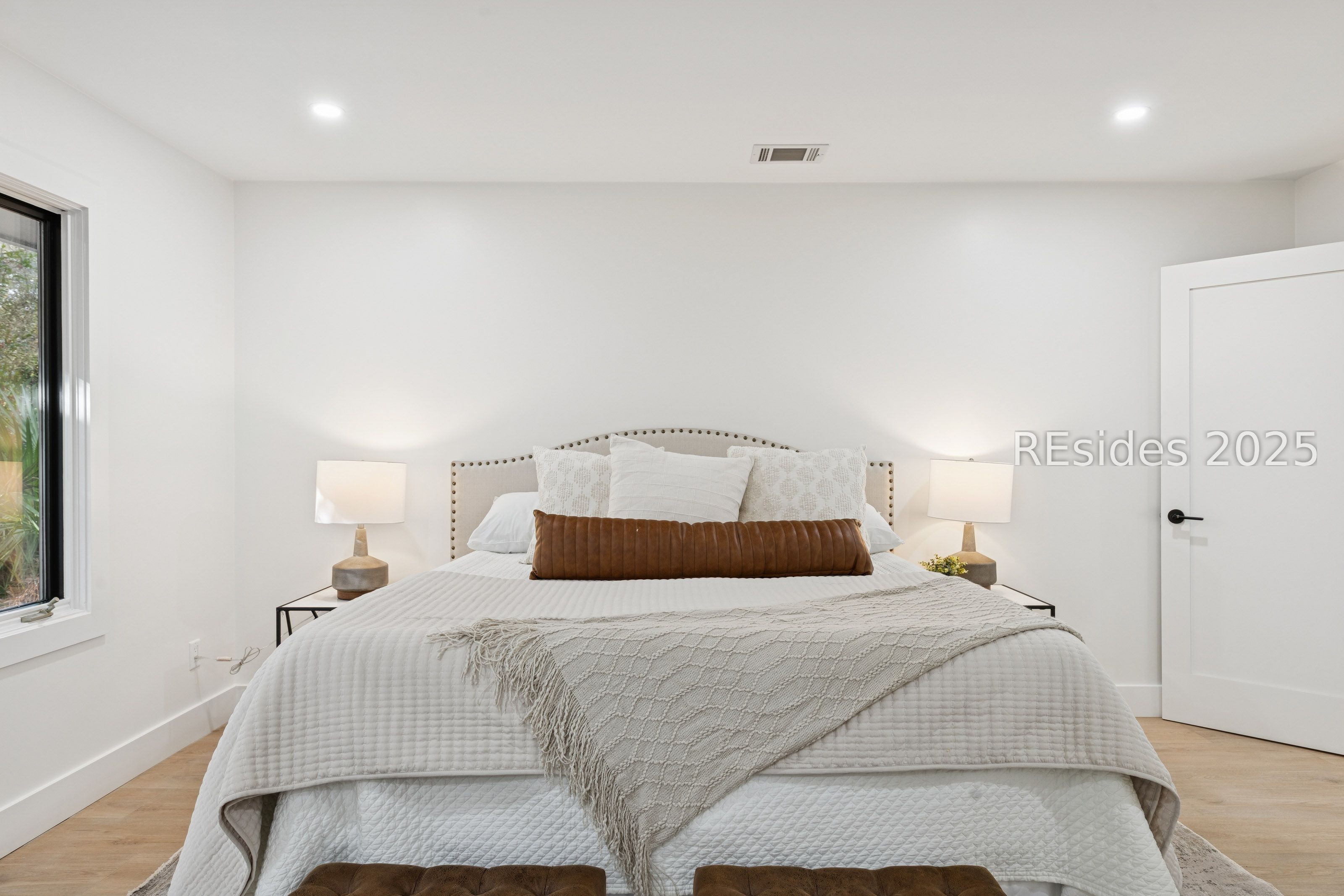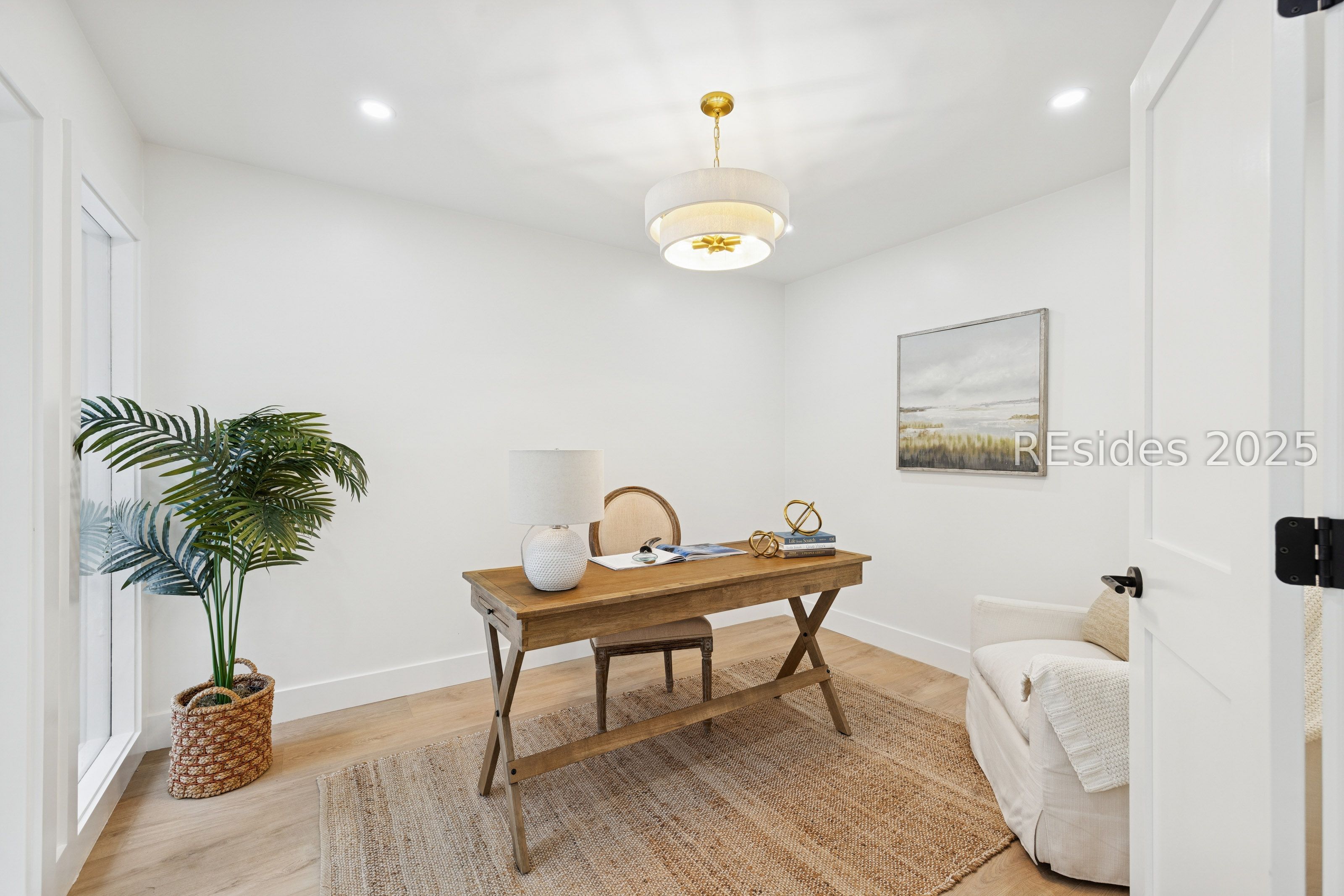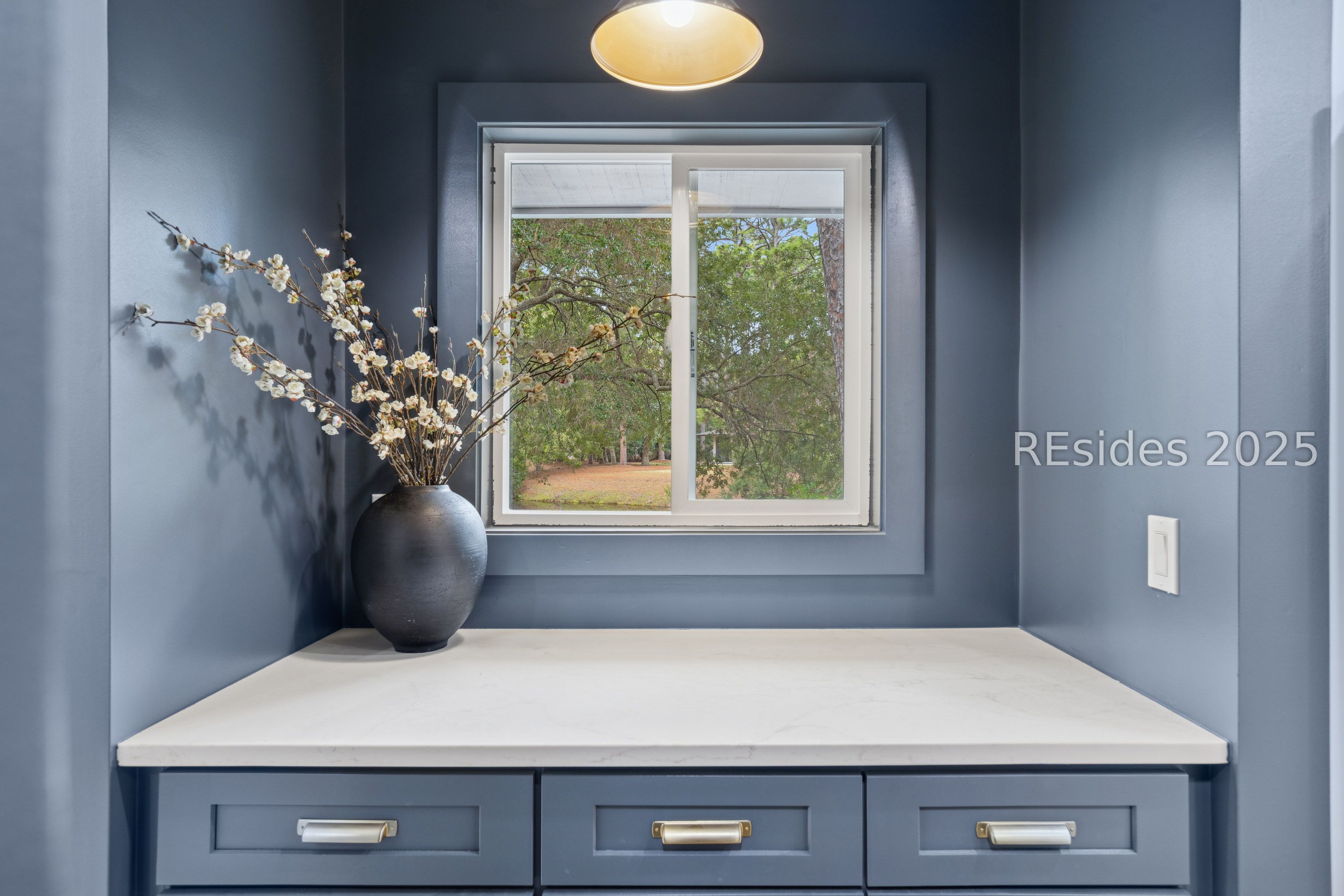 Located within the tranquil community of Hilton Head Plantation, this coastal modern home offers refined Lowcountry living on a nearly half-acre, private lagoon-front lot. Completely renovated, it features a bright, open floor plan with soaring cathedral ceilings and abundant natural light. The chef's kitchen includes a spacious island, quartz countertops, 48 inch gas range, kitchen aid appliances, and is ideal for both everyday living and entertaining. Four spacious bedrooms each include their own en suite bath, complemented by a dedicated office. Additional highlights include a huge roundabout driveway with ample parking, two-car garage, brand-new HVAC system, and thoughtful upgrades throughout, creating a move-in-ready retreat with exceptional privacy and serene water views.
