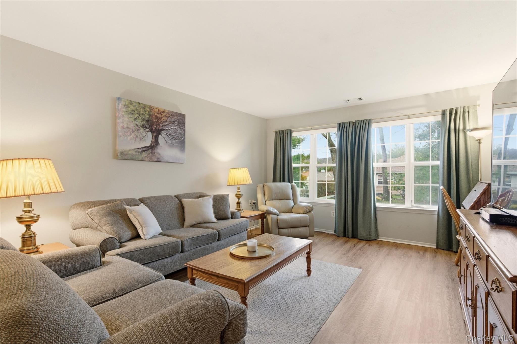 Welcome to this well-maintained 2-bedroom, 2-bath townhouse located in the desirable gated community of Country Village Estates in Coram. This spacious one-level home offers approximately 1,386 square feet of living space and features a bright living room, dining area, and an eat-in kitchen with ample cabinetry. The primary bedroom includes a private full bathroom, while the second bedroom provides flexibility for guests or a home office. Additional features include central air conditioning, washer and dryer, and convenient pull-stairs attic access for storage. Enjoy resort-style living with community amenities including a clubhouse, pool, and tennis courts. Monthly HOA covers common area maintenance, exterior maintenance, grounds care, sewer, snow removal, trash, and water. Conveniently located near shopping, dining, and major roadways. A wonderful opportunity to enjoy comfortable and low-maintenance living in a beautiful community.