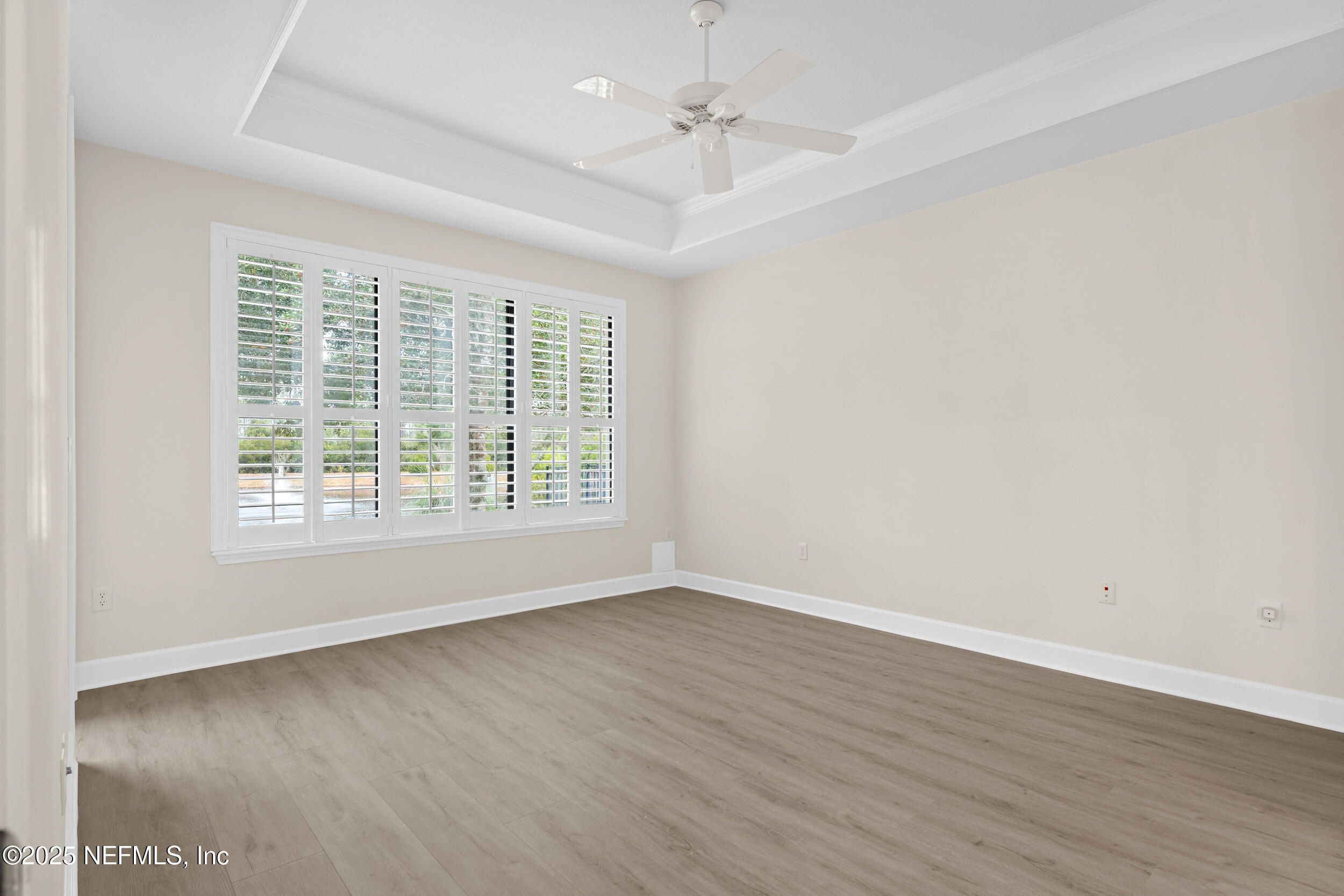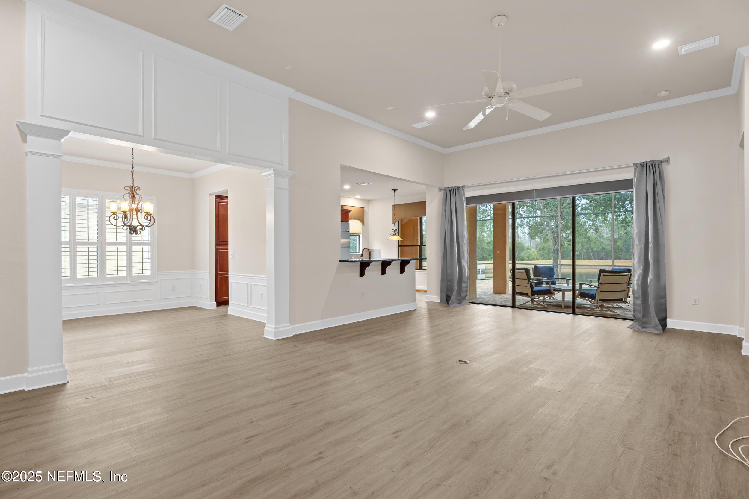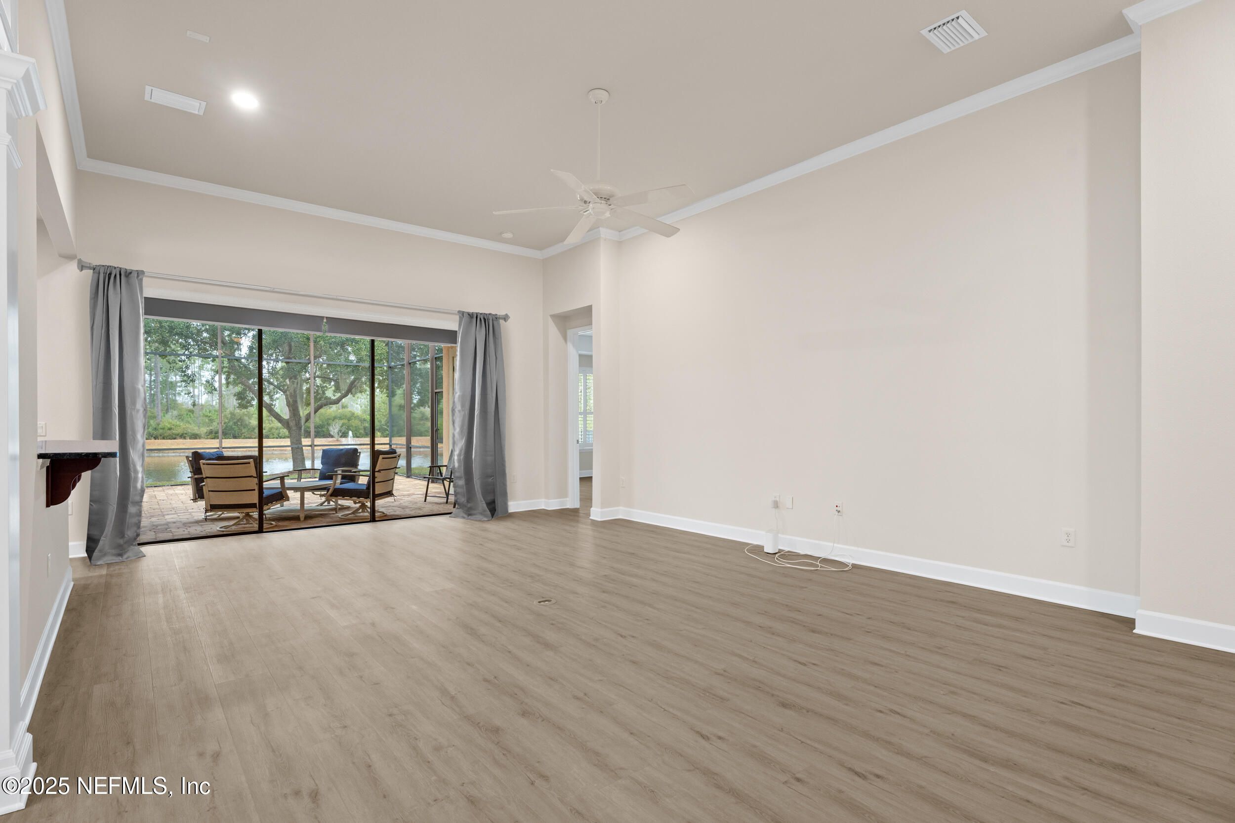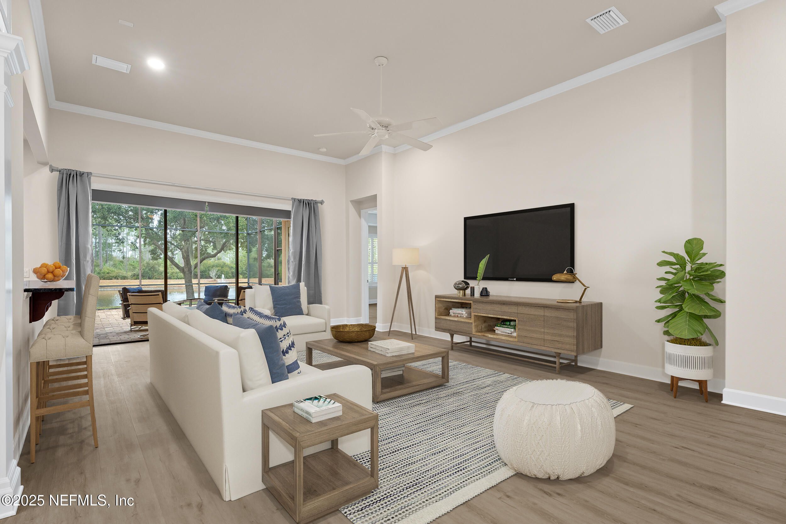 Welcome to gated 55+ Del Webb Ponte Vedra in Nocatee. This LAKEFRONT Cayman Model home has an extended birdcage & lanai with expansive views across the water to the Bald Eagle Preserve and a fountain! This true 3 bedroom + 2 baths & den/flex room home is freshly painted inside with all new LVP flooring, new recessed Great Room lighting and a new epoxy garage floor. Other notable features include: 12'+ ceilings, block construction & barrel tile roof, storm room & hurricane shutters, GE Monogram appliances, a built-in wine cooler, crown molding, tray ceilings in the MBR & bath, ceiling fans, paver driveway, water softener & more. Owners also enjoy our Anastasia Club w/indoor & outdoor pools & spas, pickleball, bocce, tennis, fitness center, game rms, steam rm, numerous clubs, a full-time activity director plus access to the Nocatee Water Parks & Amenities. DWPV is just a few minutes away from the Nocatee Town Center & 10+ min from Ponte Vedra Beach shopping, clubs & the OCEAN!