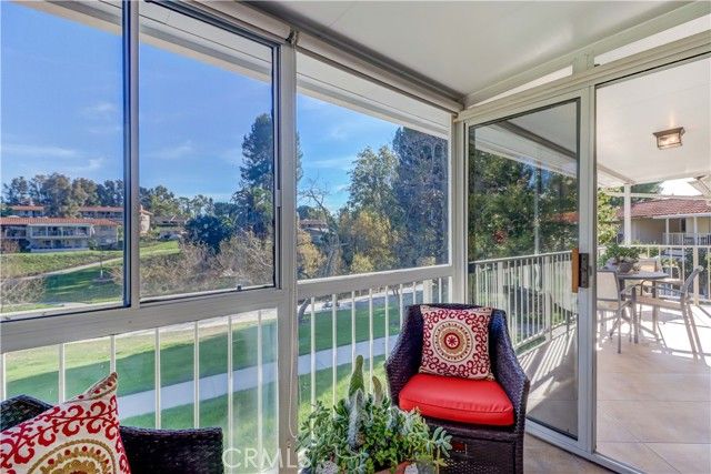 This is the home you’ve been waiting for and so rarely available! Enjoy a beautiful southeastern view overlooking Aliso Creek Nature Preserve, the charming walking bridge, and lush greenbelts from this ideally located “Casa Linda” co-op. Best of all, there are no steps from the carport to the front door, making everyday living easy and convenient. In addition to its exceptional location, this home features a tastefully remodeled interior designed for comfort and ease. Highlights include dual-pane windows, central heating and air conditioning, engineered hardwood flooring, smooth ceilings, crown molding, upgraded baseboards, Craftsman-style interior doors, recessed lighting, skylights, washer and dryer. As you enter, your eye is immediately drawn to the peaceful creek view. The spacious living room is filled with natural light and features two full sets of sliding glass doors—one opening to the enclosed sunroom and the other to a covered, tiled balcony, perfect for relaxing and enjoying the wildlife and scenery year-round. The guest bedroom offers wonderful flexibility and is currently used as a den. It features pocket doors leading from the living room that can be closed for privacy and sliding doors leading to the patio. The remodeled kitchen maintains a wall separating from the living room, providing ample cabinet storage while still feeling open and bright. You’ll appreciate the shaker-style cabinetry with glass-front upper cabinets, large skylight, plantation shutters, attractive matte marble countertops and refrigerator with water and ice maker. The guest bathroom includes a custom vanity with marble countertop, skylight, and resurfaced tub/shower. The primary suite continues the Craftsman charm with a beautiful entry door, custom closet doors and plantation shutters. The ensuite bath features a seated vanity, walk-in shower behind a privacy door, an added window for natural light, and a convenient stackable washer and dryer. This home offers simple elegance, thoughtful upgrades, and an outstanding creekside location—a perfect place to relax and enjoy the beauty and lifestyle of Laguna Woods. Residents enjoy access to golf courses, pickleball and tennis courts, fitness centers, swimming pools, clubhouses, and an exceptional variety of clubs, classes, and social activities. CHECK BACK FOR PROFESSIONAL PHOTOS AND VIRTUAL TOURS!