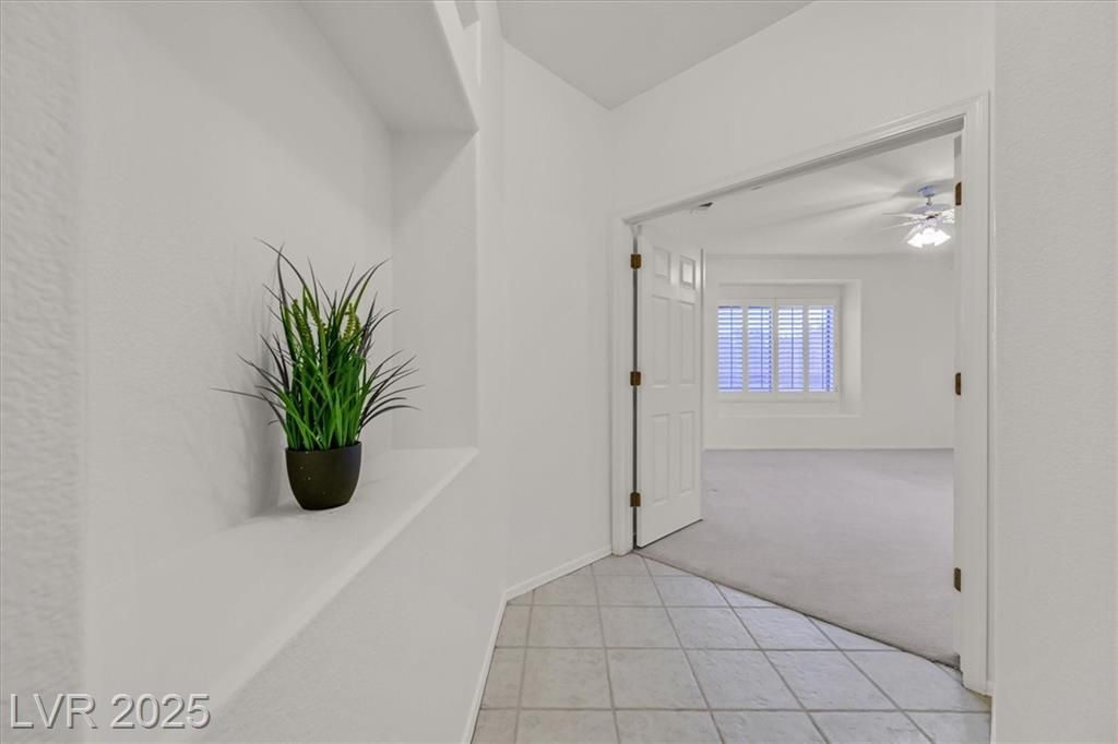 This Huntley floorplan offers smart flexible living with room to personalize. The 2-bed 2-bath home includes an extra room perfect for an office, craft space or hobby room giving you the layout flexibility buyers love. Sited on a spacious lot with low-maintenance desert landscaping the covered back patio or front courtyard with mountain views invites relaxed outdoor mornings & easy alfresco evenings. Home has just been painted throughout ready for your decorating touches. Upgrades include an alarm system & cameras garage with cabinets & exhaust fan ideal for projects or extra storage. With comfortable separation between living & sleeping areas, a functional flow for entertaining & plenty of opportunity to add your personal style & finishes! Whether you’re seeking a home to update over time or a thoughtfully laid-out space to make your own now this property blends convenience potential & community living. Schedule a showing to see how this home can become your perfect Henderson retreat.