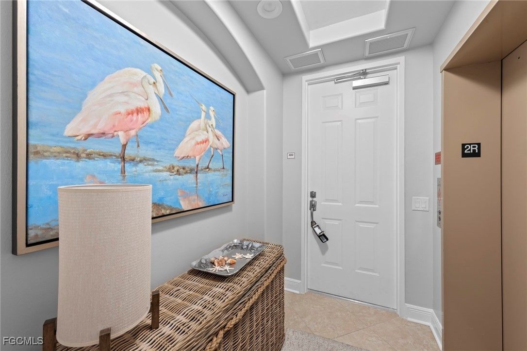Nestled within the prestigious community of The Vineyards in Naples, Vista Pointe offers an elegant blend of luxury, comfort, and peace of mind. This exclusive high-rise residence is set in a gated community designed for those who appreciate both sophistication and security. From the moment you arrive, you’ll find attention to detail at every turn, with keypad-secured building access and a semi-private elevator that opens directly to your private entrance. This stunning two-bedroom plus den home, which can easily be converted into a third bedroom, showcases sweeping views of the serene lake and the championship golf course. The expansive lanai invites you to relax and enjoy the warmth of the Florida sun while taking in the natural beauty of the surrounding landscape and tropical wildlife. Inside, the home features an open and inviting layout with a bright kitchen complete with stainless steel appliances, a breakfast bar, and a spacious pantry. The great room flows seamlessly to the lanai through impact-resistant sliders, creating an ideal space for entertaining or quiet enjoyment. The master suite offers a spa-like retreat with dual sinks, a soaking tub, a separate shower, and a custom walk-in closet. Additional highlights include impact-resistant windows with plantation shutters, electric hurricane shutters on the lanai, a 2021 air conditioning system, a new water heater, and fresh paint throughout—making this home truly move-in ready. Vista Pointe residents enjoy access to a resort-style pool with cascading waterfalls and a beautifully renovated clubhouse featuring a fitness room, library, caterer’s kitchen, and picnic area. For those seeking an even more elevated experience, optional membership to The Vineyards Country Club provides access to 36 holes of championship golf, 12 Har-Tru tennis courts, pickleball, bocce, and a world-class Wellness and Spa Facility with a saltwater lap pool, café, Halotherapy Salt Room, massage rooms, and salon services. Located along a picturesque, tree-lined boulevard, Vista Pointe offers convenient access to downtown Naples, Mercato, and the area’s pristine beaches. This residence is more than just a home—it’s a lifestyle defined by comfort, elegance, and leisure. Schedule your private tour today and experience the unparalleled lifestyle that awaits you at Vista Pointe in The Vineyards.