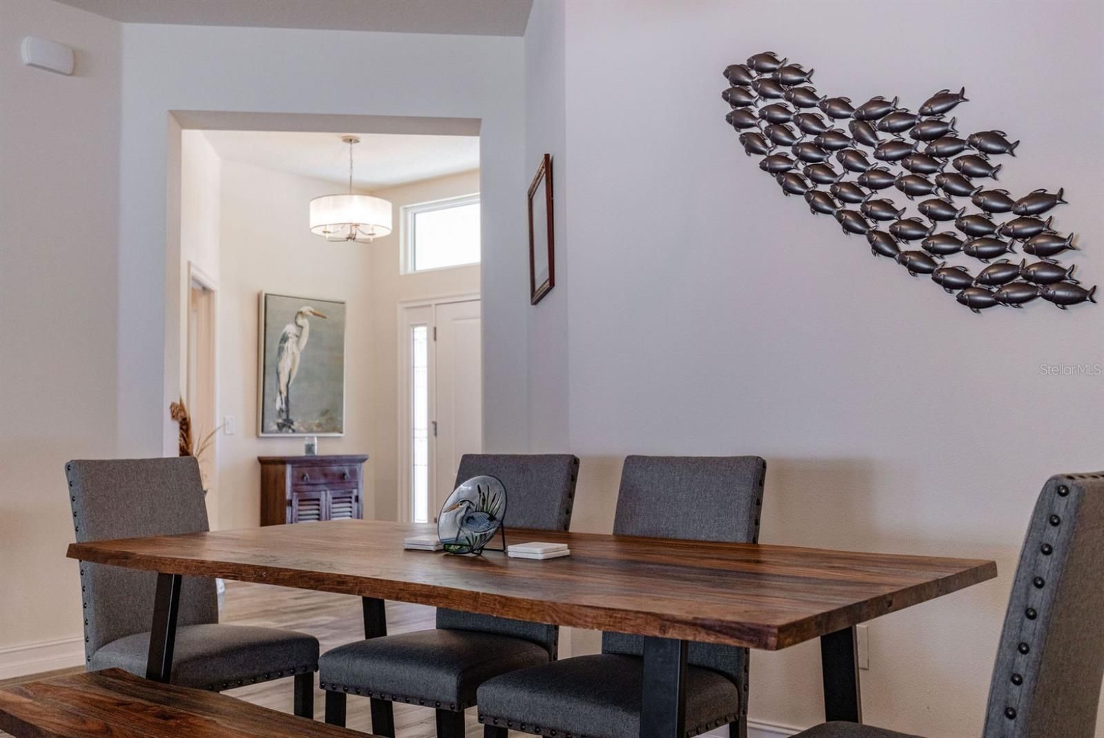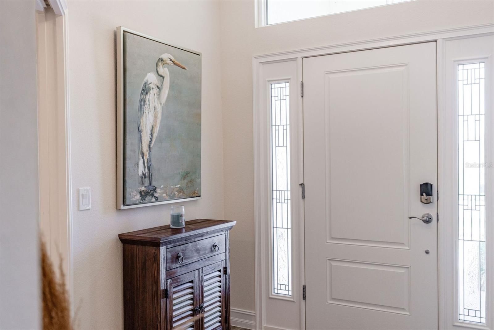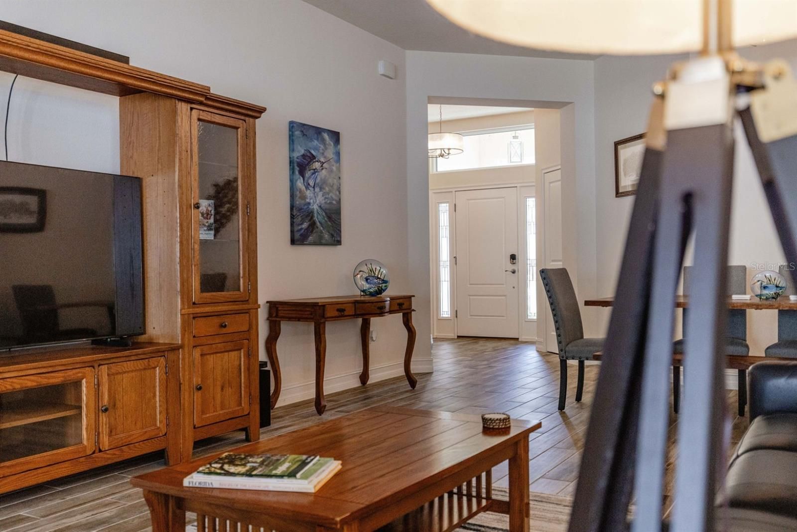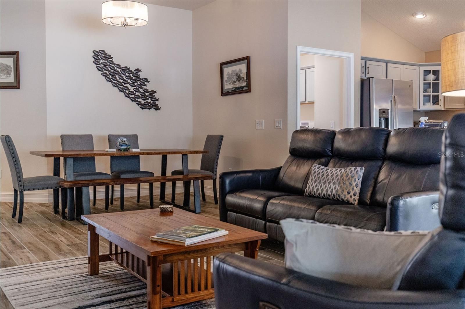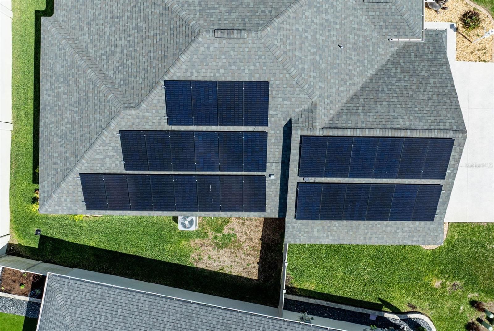 Welcome to your private retreat in the highly desirable Village of St. Catherine! This beautifully maintained and FULLY FENCED TURN-KEY Hudson Model VERANDA offers 3 Bedrooms, 2 Bathrooms, and 1,918 Sq. Ft. of living space, along with one of the most valuable features buyers are looking for today— a FULLY OWNED, PAID-IN-FULL WHOLE-HOME $45K SOLAR SYSTEM WITH BATTERY BACKUP! This is not leased solar—this is true SOLAR ownership and real value! The solar system powers the entire 200-amp service, includes battery backup for continuous emergency power, warranties in place, electric car charging capability in the garage, and the property is currently selling excess power back to the Leesburg Electric—helping offset monthly energy costs and generating monthly utility credits for the new owner. A rare and highly desirable feature that adds both security and long-term savings. Perfectly located near Sawgrass Grove, Eastport, and Middleton, this gorgeous home offers an open-concept layout designed for both everyday comfort and entertaining. The home has been S~T~R~E~T~C~H~E~D by 2 feet, creating additional living space and enhancing both the residential lanai and garage. Enjoy 6x36 ceramic tile flooring throughout, everywhere except the bedrooms, volume ceilings, neutral finishes, and quality turn-key furnishings. The expanded residential lanai provides the perfect place to relax and enjoy your private fenced backyard. The OVERSIZED 2-car garage plus golf cart garage is also 2 FEET DEEPER, offering exceptional storage and functionality. The large kitchen is a standout feature with French vanilla/light gray cabinetry, stainless steel appliances, gas range, kitchen island, breakfast nook, bar seating, pantry closet, and abundant prep and storage space—ideal for both entertaining and daily living. The spacious primary suite features a coffered ceiling, large walk-in closet, and a well-appointed primary bath with DOUBLE SINKS and a walk-in shower. A pocket door creates privacy for the guest bedrooms and guest bath with tub/shower combination. Additional features include PRIVATE, FENCED IN YARD, INTERIOR LAUNDRY with washer and dryer included, tankless water heater, smart home-ready wiring, enhanced landscaping, irrigation system, gutters, and excellent curb appeal throughout. This is more than just a home—it is efficiency, security, income-producing solar ownership, and The Villages lifestyle all in one exceptional property.