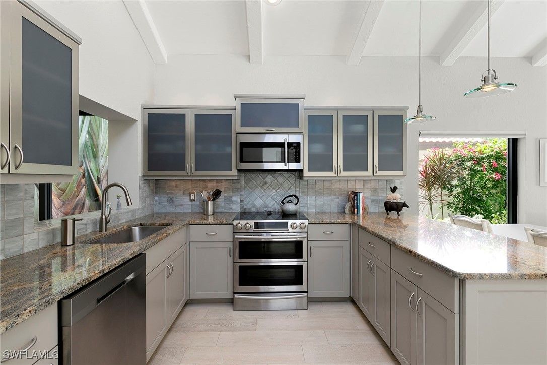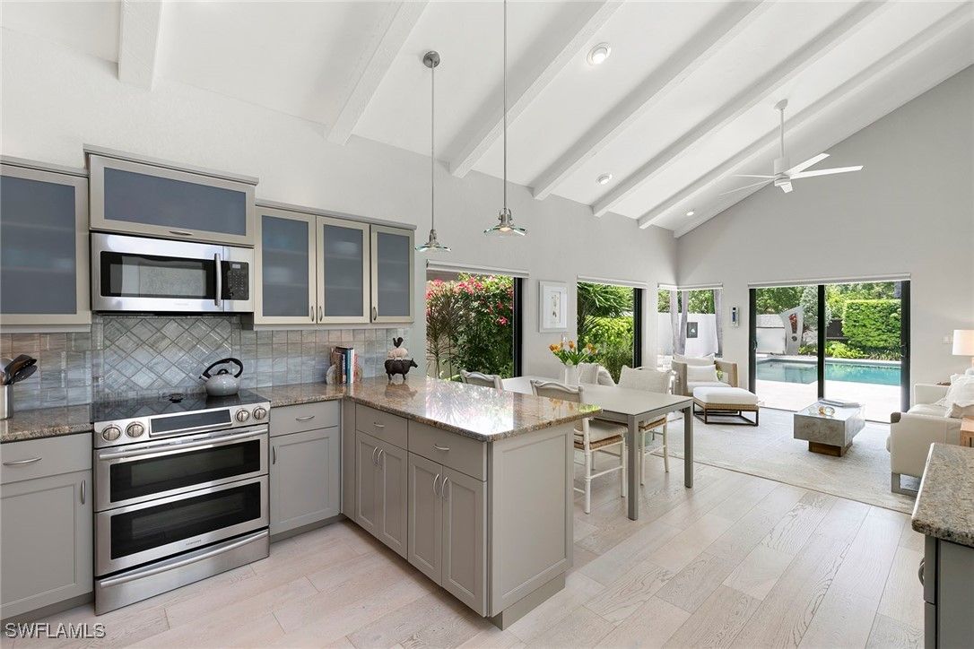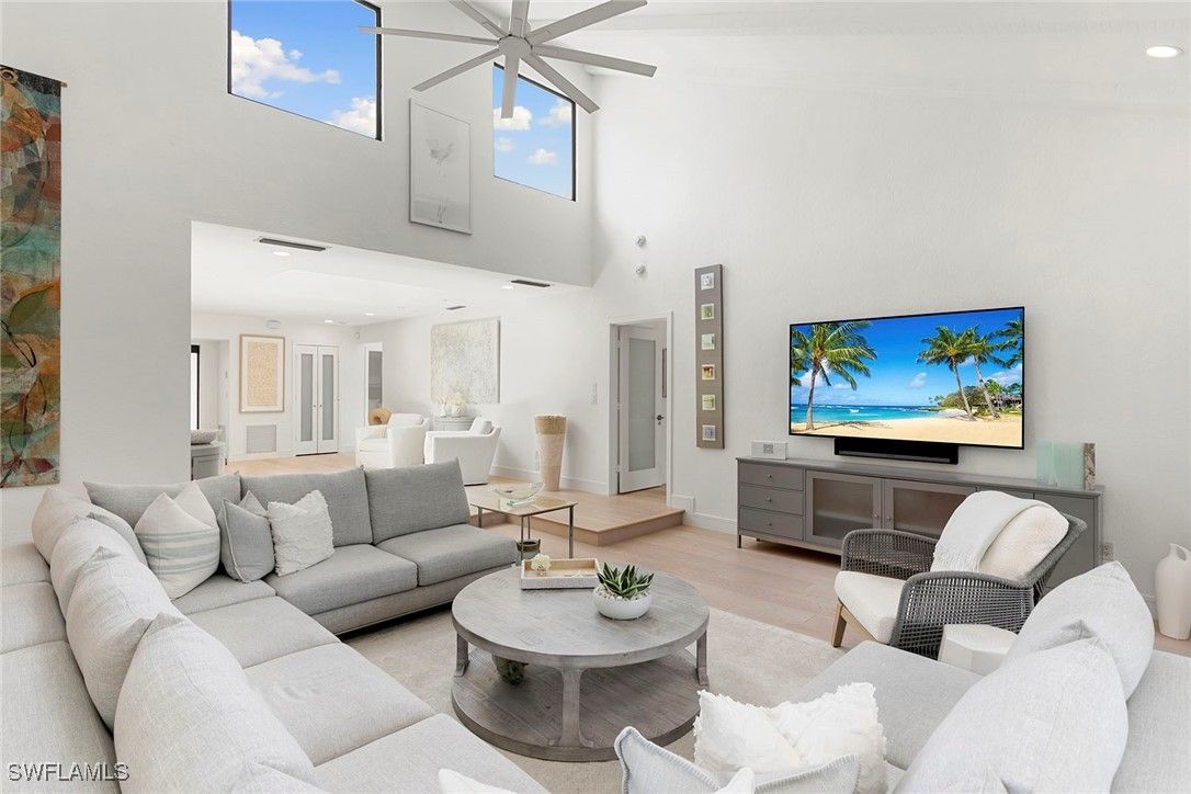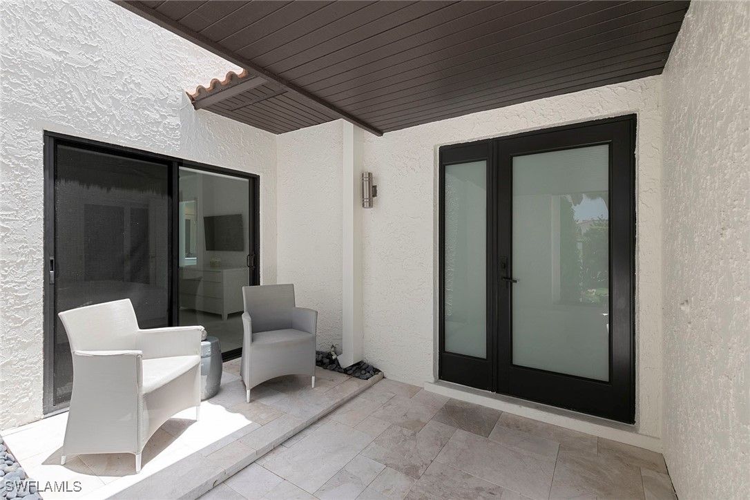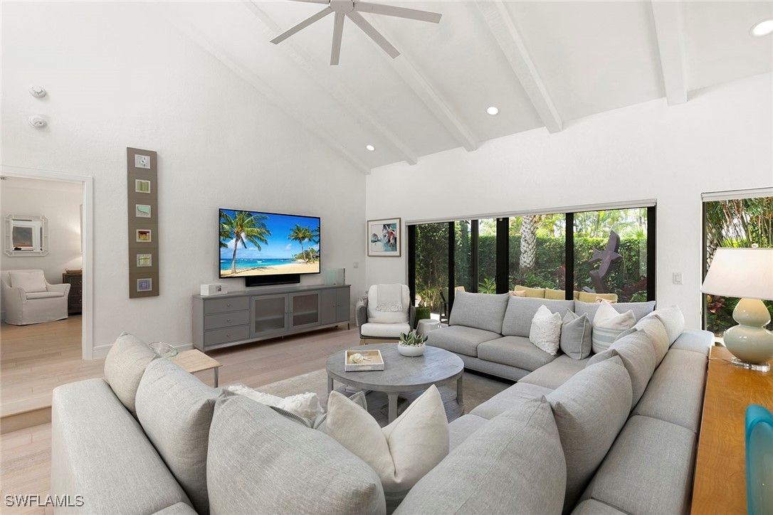 Welcome to Tierra Mar and a beautifully renovated villa in Pelican Bay offering an ideal balance of seclusion and convenience. This single-story residence is a private tropical retreat, with soaring ceilings, generous closets and walls of glass that frame tropical landscaping from nearly every room. The thoughtfully updated interior features a spacious living room, a modern kitchen, and a flexible second den/family room, ideal for guests to enjoy their own comfortable space to read or watch TV. Both baths have been recently renovated so there's not a project left to do in this villa. Go outside to your resort-style courtyard, complete with an enormous sparkling solar-heated pool and lush landscaping that is dramatically lit at night to create a tropical outdoor setting. Thoughtful additions are a home office and a screened-in back porch, ideal for morning coffee outside. An oversized two-car garage adds convenience, while the villa's south Pelican Bay location places you minutes from Artis-Naples, Waterside Shops and the beach. Pelican Bay residents enjoy private beachfront dining, tennis, a fitness center and miles of recreational paths. This is one of Naples desired outdoor and wellness-focused lifestyles, all in an X-500 flood zone.