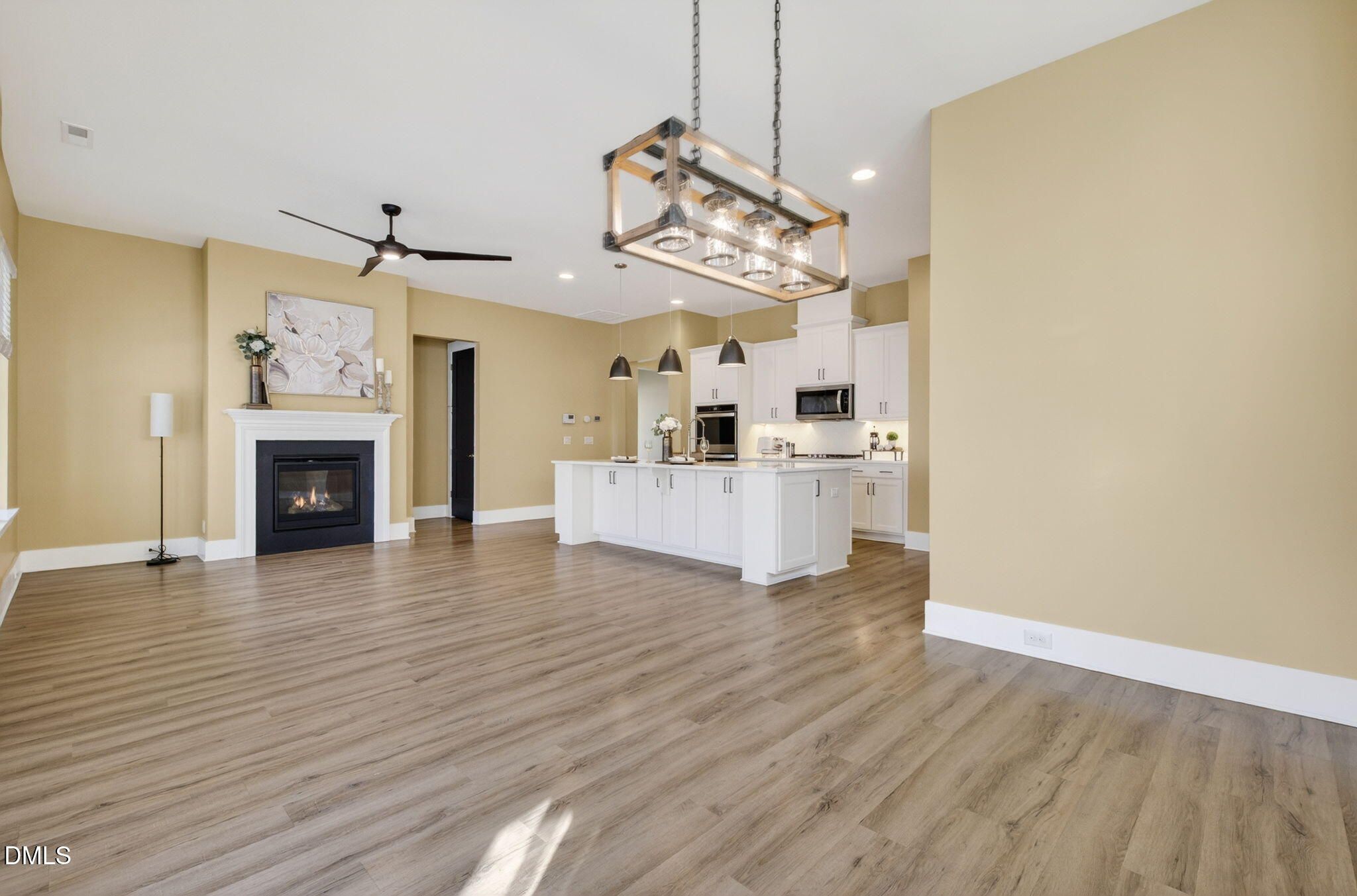 Welcome to 580 Warm Wind Drive, Clayton, NC — a beautifully appointed craftsman home nestled in the sought-after Flowers Plantation community. This thoughtfully designed residence offers the ease of first-floor living with 2 bedrooms, 2 full baths, and a versatile flex space upstairs that can serve as a third bedroom, office, or hobby room. Spanning 2,468 square feet, the home blends comfort, function, and style in every detail. The open-concept living area features 10-foot ceilings and a cozy gas fireplace, creating an inviting space for relaxing or entertaining. The chef-inspired kitchen boasts a stunning quartz island with multi-function sink, gas cooktop, large pantry, and abundant cabinetry—perfect for everyday living or hosting gatherings. Retreat to the primary suite, offering both privacy and elegance, while the patio and beautifully landscaped gardens provide a serene outdoor escape—a true gardener's dream. Additional highlights include LVP and hardwood flooring, Rinnai tankless water heater, and a two-car garage for convenience. Enjoy the active yet relaxed lifestyle of Flowers Plantation, an age-targeted community featuring walking trails around a scenic pond, fire pit and gazebo, fitness area, and a dog park—all just minutes from Harris Teeter, Publix, and a variety of restaurants. This is more than a home—it's a lifestyle designed for comfort, connection, and effortless living.