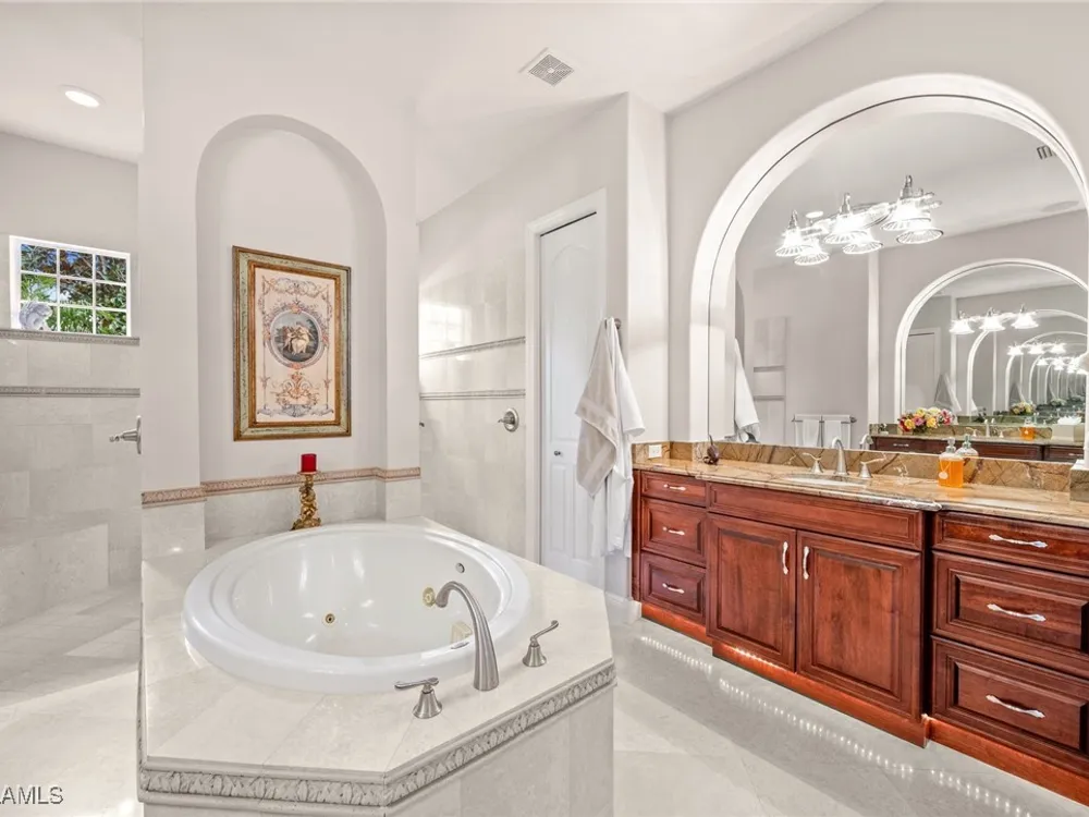 - Attic Access, Bathtub, Tray Ceiling(s), Separate/Formal Dining Room, Dual Sinks, Family/Dining Room, Jetted Tub, Kitchen Island, Living/Dining Room, Multiple Shower Heads, Pantry, Pull Down Attic Stairs, Separate Shower, Cable TV, Walk-In Closet(s), Wired for Sound, Window Treatments, High Speed Internet, Home Office, Split Bedrooms