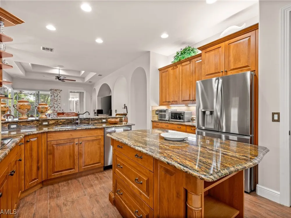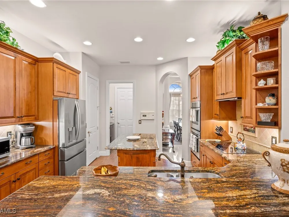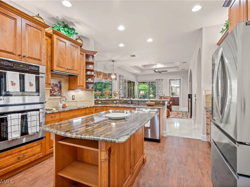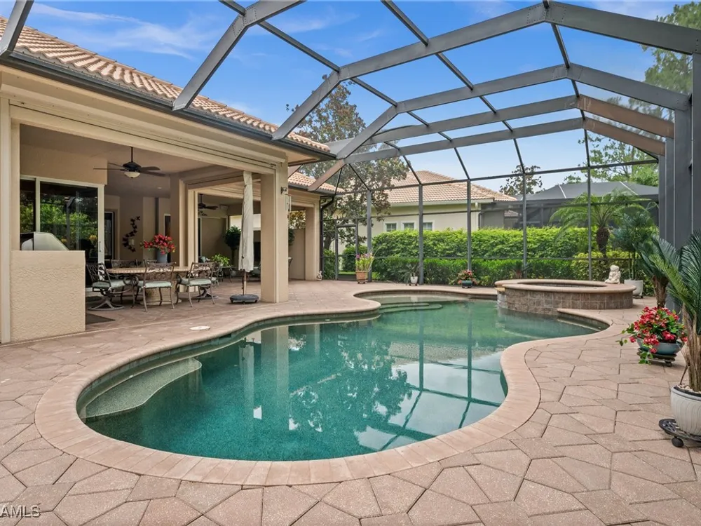 Freshly painted 3 Bedroom plus Den/Office home located in Aspen Palms/Custom Homes. Aspen Palms is a community of 45 Homes located in the Hammock Isles area of the highly sought after golf community of Vineyards Country Club. Enter into Foyer with the formal Living Room and formal Dining Room. Separate Family Room which is open to the kitchen has it's own eating area and is wired for Dolby ATMOS Surround Sound. The Kitchen has a large Island to maximize available counter space and has Double Wall Ovens, Electric Cooktop, new LG Refrigerator and newer LG Dishwasher. Large Master Suite with two closets, one of which is walk in. Large Master Bath features Dual Sinks, Jacuzzi Tub and Extra Large walk in shower, with three shower heads, one of which is a rain shower. Two large Guest Bedrooms, one of which has a walk in closet and share a full Jack and Jill Bathroom. Separate Den/Office has a full Bathroom, which can be closed off to use as a pool bath, if desired. Can also be easily converted back into a forth bedroom. Large Lanai with it's own sitting area is ideal to enjoy the outdoors no matter what the weather is, and has electric roll down shutters. Also overlooks the screened in Pool and Spa and has direct access to the Master Suite. HOA dues include cable TV, telephone an high speed internet (500 MPS is standard) Membership is available in the Vineyards Country Club that features a Wellness Center, recently upgraded Clubhouse and Pool, Tennis, Pickleball and two recently totally renovated 18 Hole Golf Copurses.
