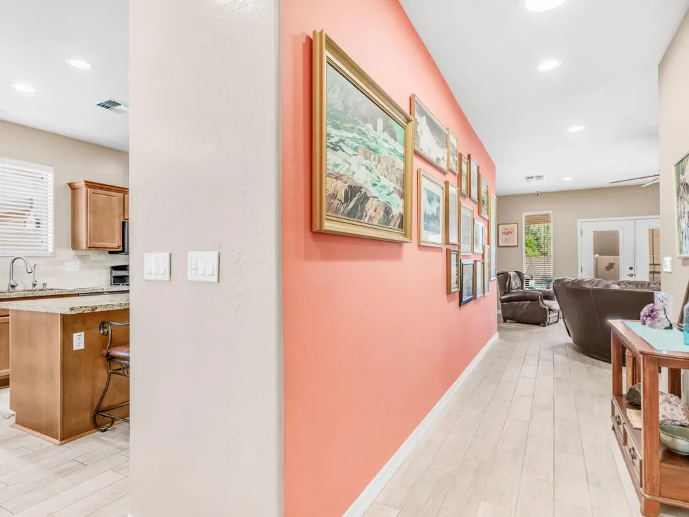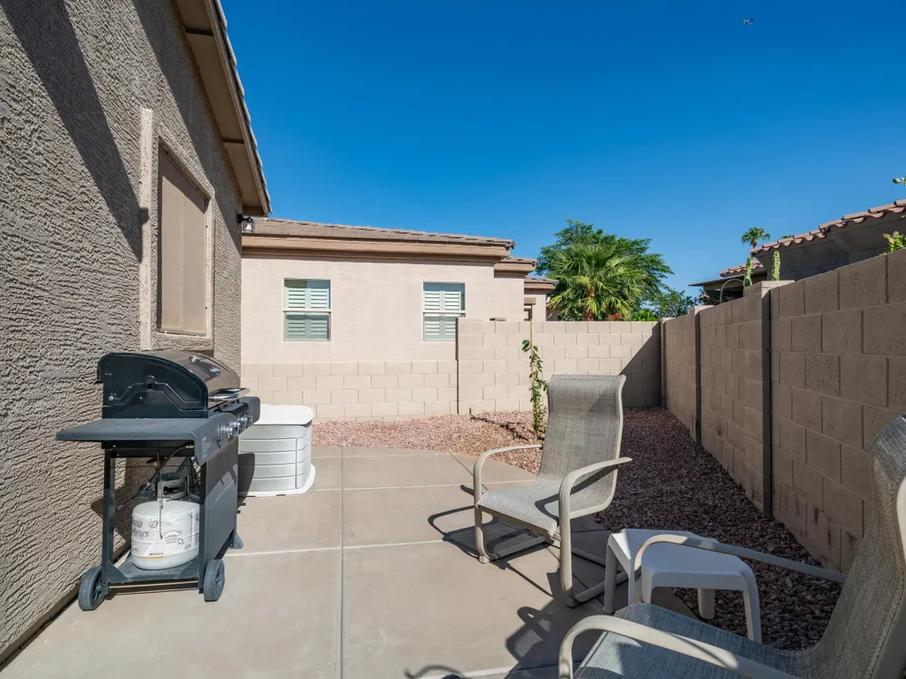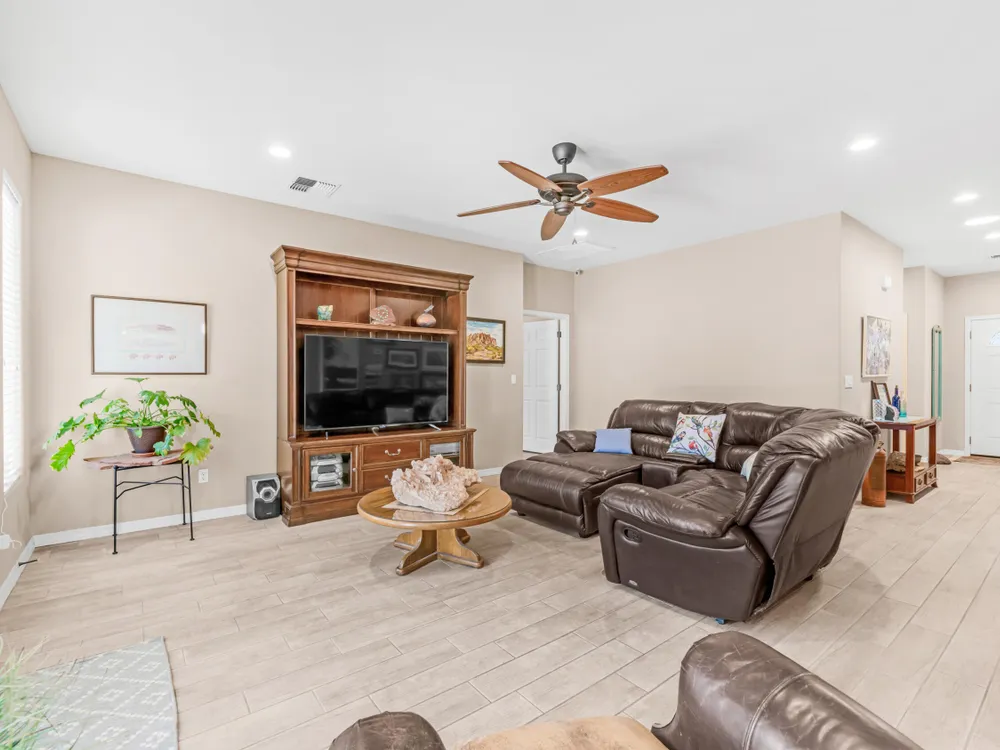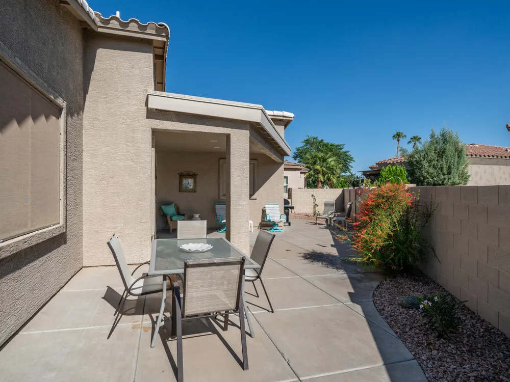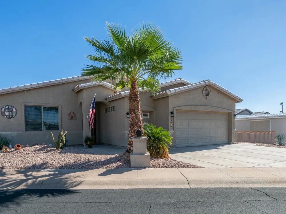 Beautiful Home in Retirement Community of Apache Wells. Kitchen features granite Island with stone backsplash, Walkin pantry, gas stove, solar tube and built in desk. New Plank tile flooring in 2023. Great Room Floor plan with Split master bedroom floorplan. Laundry room with sink and half bath. 3 Car Garage with golf cart garage and epoxy flooring. Low Maintenace yard with fruit trees, lemon, orange, lime with gas stub in back for hot tub or BBQ. Wide hallways home is ADA. Community features golf, restaurant, pools, spas, pickleball tennis and workout facility. HVAC 2024 with 9-year warranty. Water heater and conditioner 2023. Interior lot with Mountain Views and only a few miles away from Freeway. Home has been well maintained by homeowner.