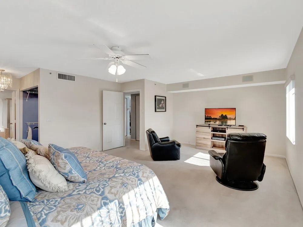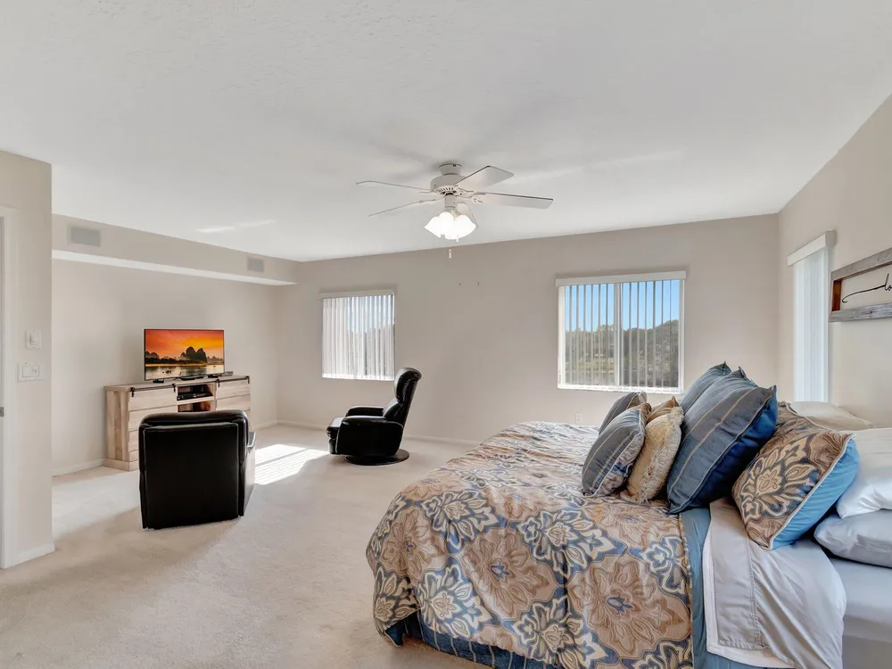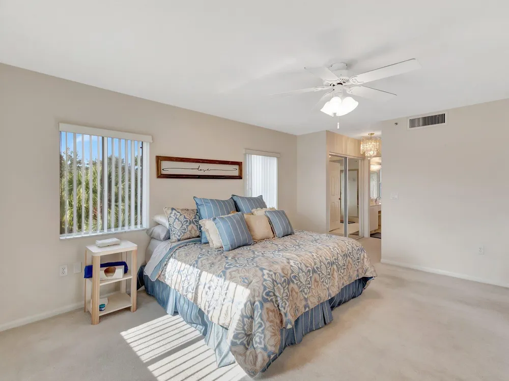 Spacious 3BR, 2BA penthouse with stunning lake views in a premier 55+ resort-style community. Features an open layout, modern kitchen with granite countertops and white cabinets, large primary bedroom with sitting area, full-sized laundry with sink, complete accordion shutters and impact window. HOA covers Comcast TV & internet, ADT, water, and trash for your convenience.Enjoy a newly renovated clubhouse with indoor/outdoor heated pools, gym, theater, cafe, art room, and card rooms. The community offers 10 tennis courts, including pickleball, billiards, craft clubs, and various events. Experience clean, move-in ready, resort-style living designed for comfort and peace of mind. Don't miss out on this amazing opportunity!
