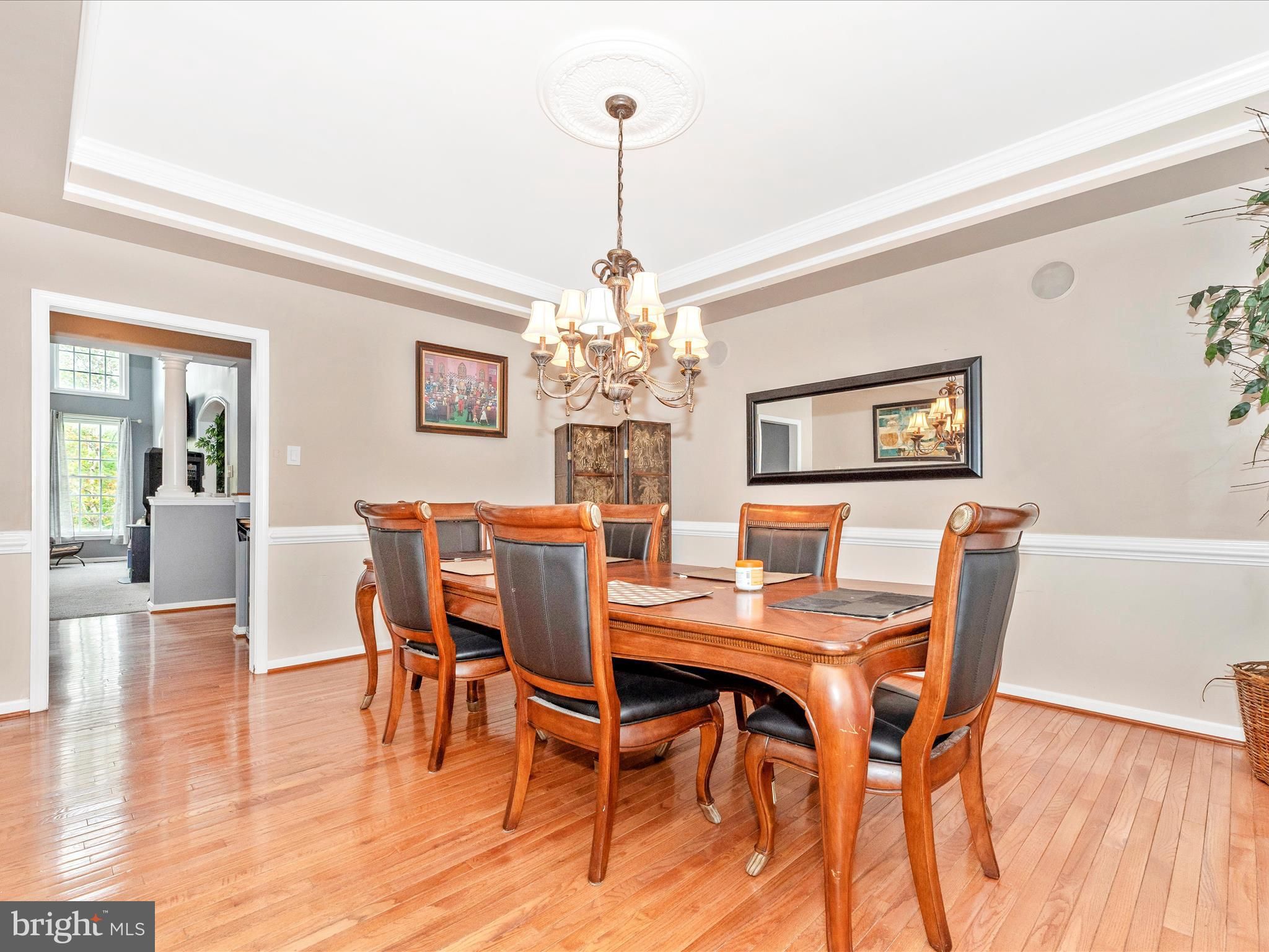 - Attic, Family Room Off Kitchen, Kitchen - Gourmet, Breakfast Area, Kitchen - Island, Dining Area, Chair Railings, Upgraded Countertops, Primary Bath(s), Window Treatments, Wet/Dry Bar, Wood Floors, Recessed Lighting