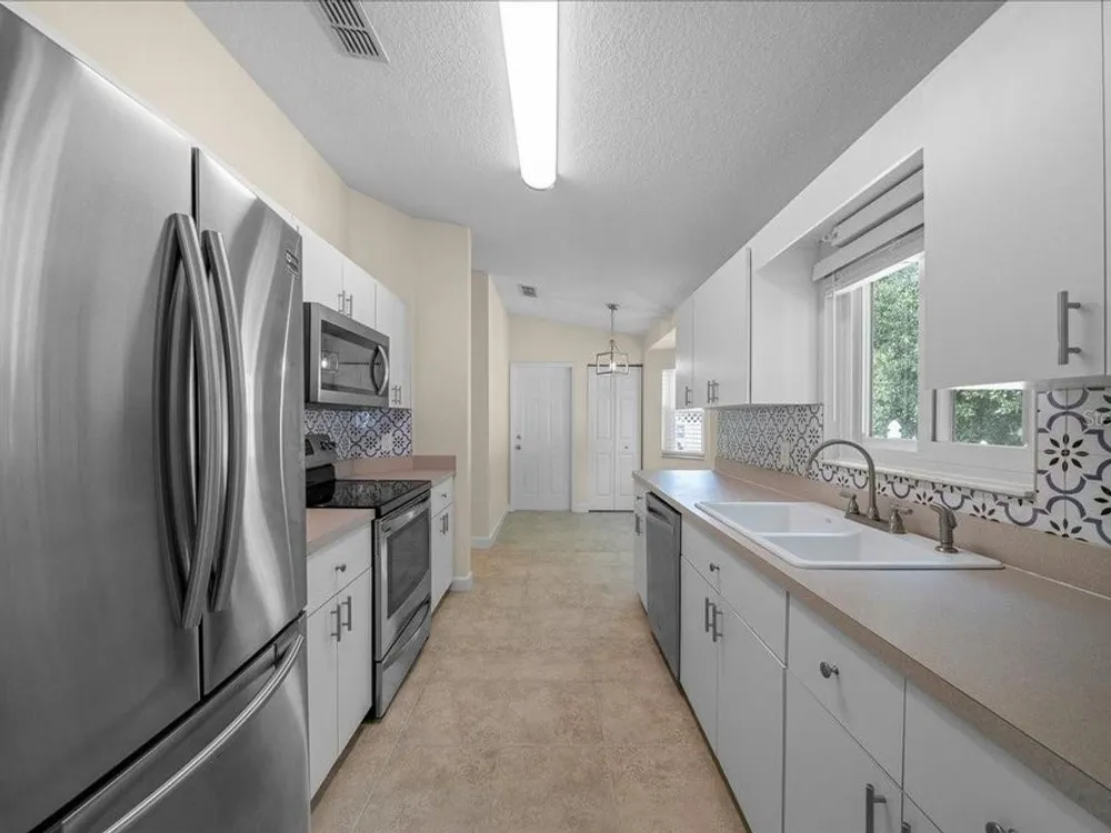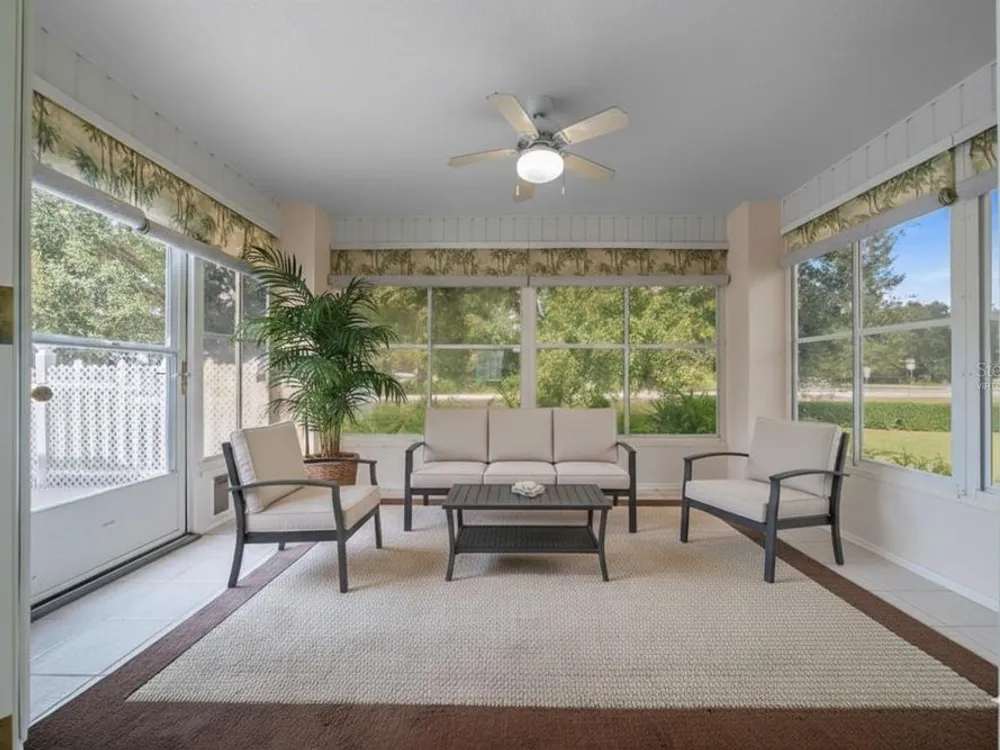 This move-in ready home offers comfort, style, and peace of mind! Major updates were completed in 2025, including a NEW ROOF, NEW AC, new energy-efficient windows, and a newly installed paver patio. Inside, the split floor plan ensures privacy for the bedrooms, while fresh interior paint creates a clean, modern look. There is no carpet throughout, allowing for easy maintenance. The spacious primary bedroom features a walk-in closet and an en suite bathroom with a convenient walk-in shower. The kitchen boasts stainless steel appliances, a pantry, and an eat-in nook perfect for morning coffee or casual meals- plus plenty of space for a larger dining table for hosting guests. The kitchen backsplash is designed for easy removal should you prefer a different look. Relax in the fully enclosed lanai, or unwind outdoors on the front or rear patio. Located within the 55+ community of Cherrywood, residents have access to a clubhouse with a pool, fitness room, and billiards, along with a variety of social events. The low monthly HOA fee includes cable, internet, and trash service. Convenient location in SW Ocala, near shops, restaurants, grocery stores, and medical facilities. Don't miss out. Schedule your showing today!