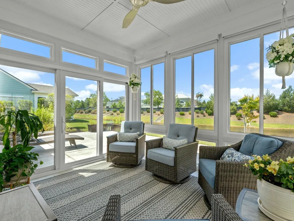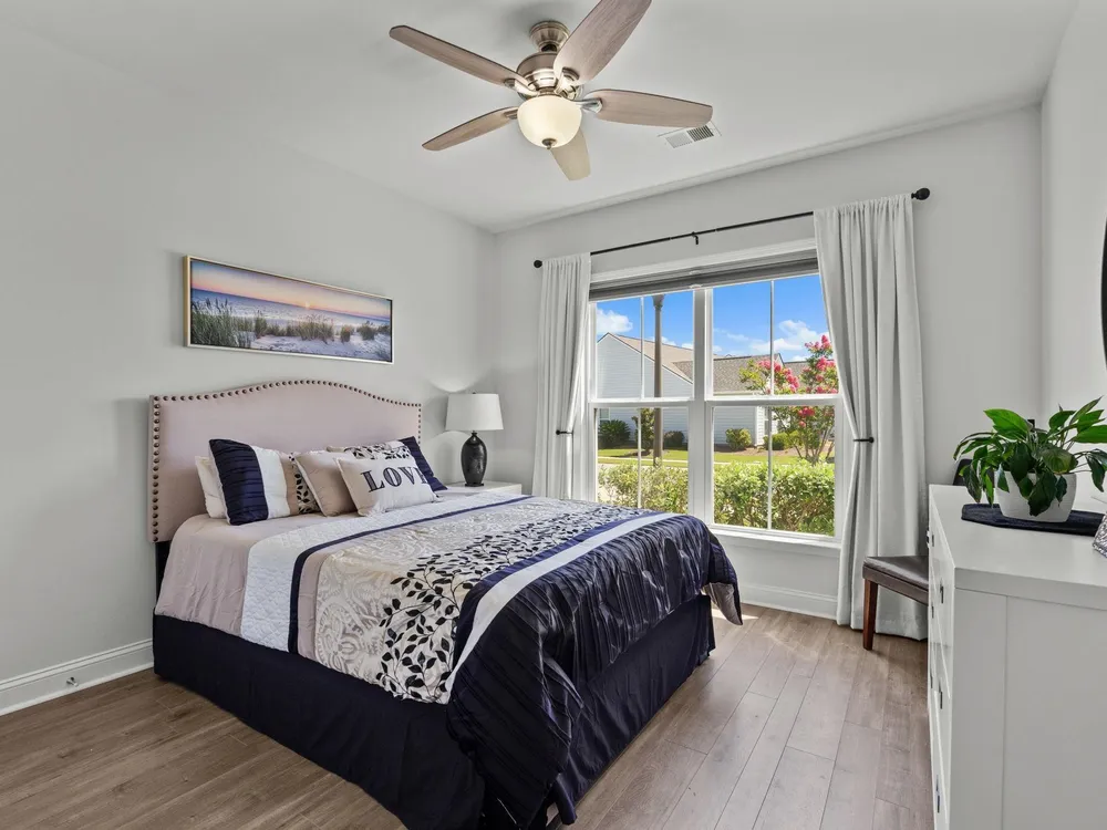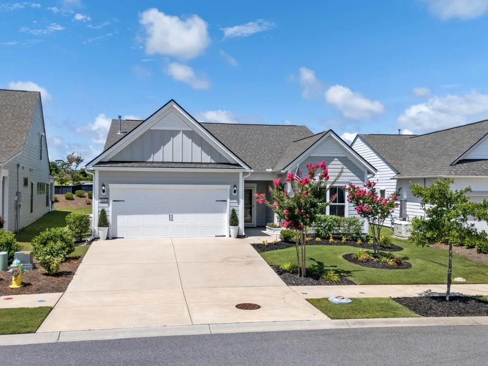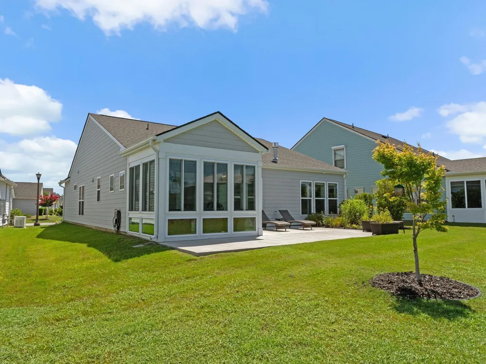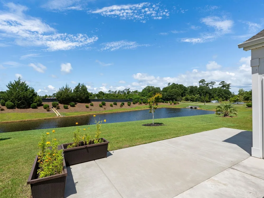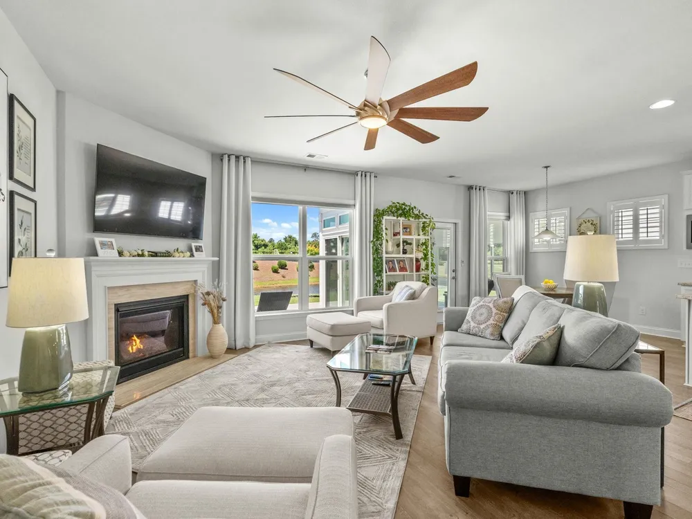 Welcome to your new home in the highly desirable Del Webb at Grande Dunes community, an exclusive 55+ neighborhood. This beautiful 3-bedroom, 2-bathroom property, which shows like a model, features the popular Abbeyville floor plan. It offers a spacious open-concept kitchen, dining, and living area, highlighted by a cozy fireplace in the great room. The kitchen is a chef’s dream, with marble countertops, a large island, stainless steel appliances, and a pantry. Situated on an exceptional homesite, this home provides stunning views from multiple rooms, including a cozy 3-season glass-enclosed sunroom. The private backyard offers peaceful pond views and no homes directly behind it, ensuring tranquility and privacy. The upgraded landscaping enhances the outdoor space, providing a beautifully maintained environment to enjoy year-round. The primary bedroom is filled with natural light, creating a serene retreat. The owner’s bath features a double vanity with a gorgeous granite countertop, a tastefully tiled shower, and a spacious walk-in closet. Built with modern standards, this home includes energy-efficient features, such as radiant barrier sheeting in the attic to help reduce energy costs, irrigation, a Sentricon and Taexx termite system, and gutters. The garage is finished with a durable epoxy floor, providing both functionality and style. The extra-wide driveway ensures plenty of space for two vehicles. Additionally, this home is equipped with a natural gas whole-home generator, ensuring peace of mind during power outages, so you can continue to enjoy the comfort and convenience of modern living no matter the weather. Del Webb amenities are unparalleled, offering a vibrant active community experience. Meet new friends at the monthly events and daily activities hosted at the Amenity Center, take a refreshing dip in the indoor or outdoor pool, or stay active with facilities like the gym, bocce ball, pickleball, and tennis courts. Enjoy leisurely strolls or bike rides along the countless sidewalks and the paved path running alongside the beautiful intracoastal waterfront. Running errands or heading to the beach is a breeze with your golf cart—the ultimate beach life necessity! And speaking of the beach, easy access is granted via the Grande Dunes Beach Club, a delightful amenity included in the HOA amenities.