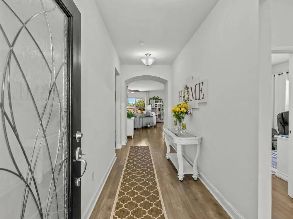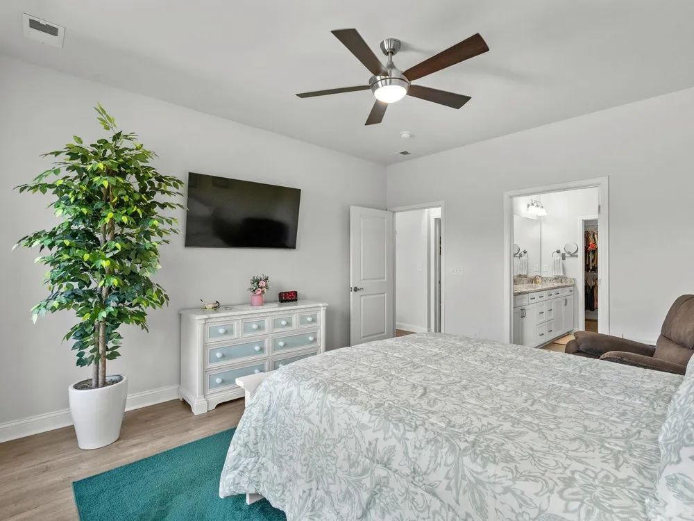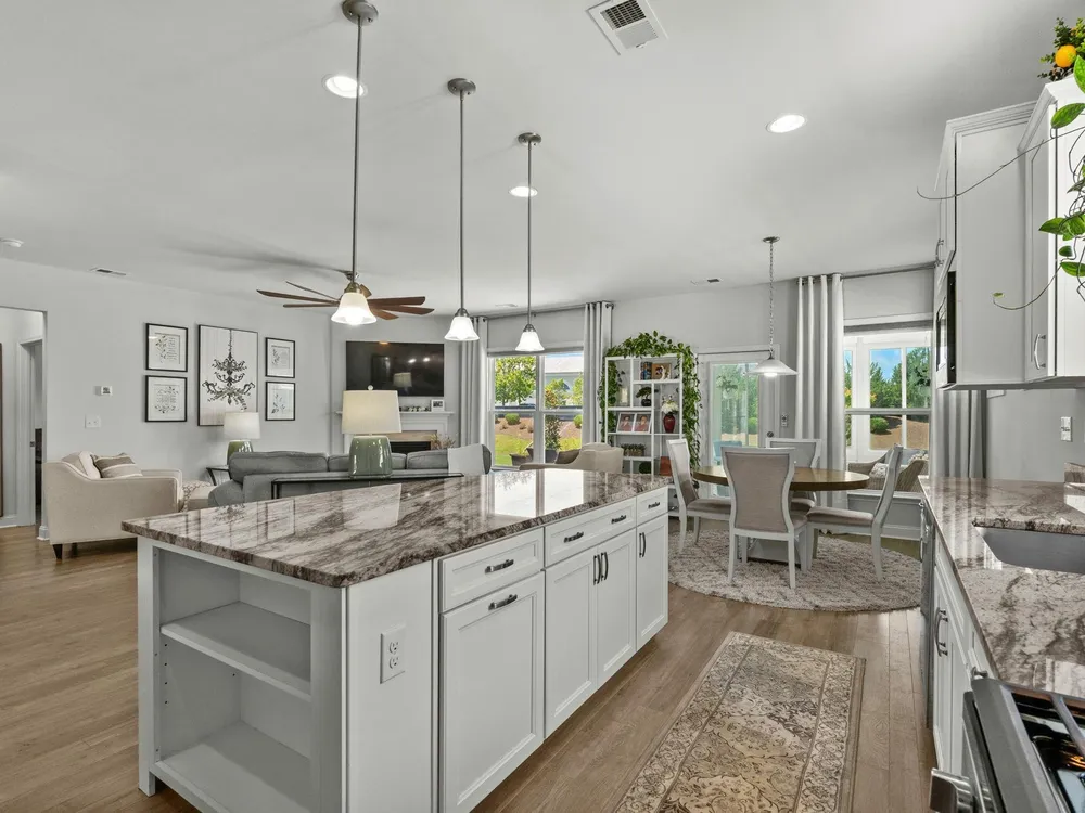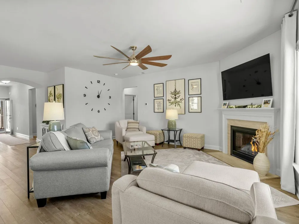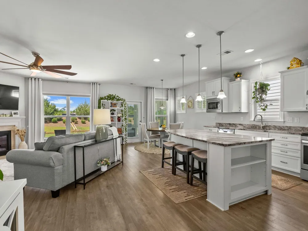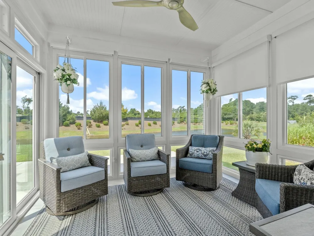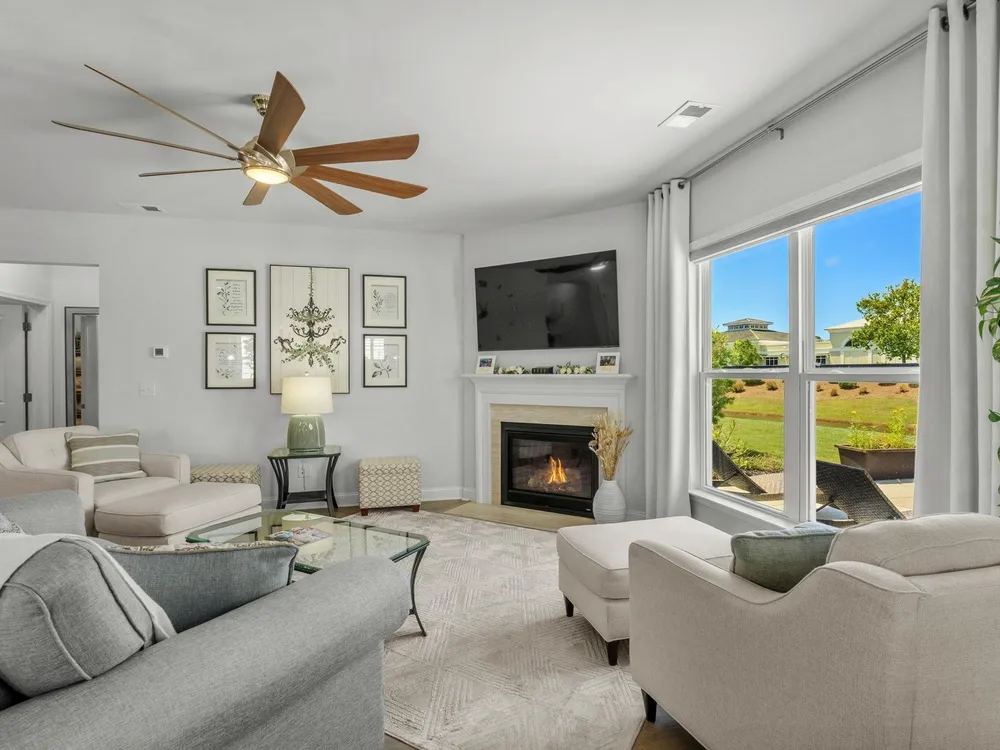 Welcome to your new home in the highly desirable Del Webb at Grande Dunes community, an exclusive 55+ neighborhood. This beautiful 3-bedroom, 2-bathroom property, which shows like a model, features the popular Abbeyville floor plan. It offers a spacious open-concept kitchen, dining, and living area, highlighted by a cozy fireplace in the great room. The kitchen is a chef’s dream, with marble countertops, a large island, stainless steel appliances, and a pantry. Situated on an exceptional homesite, this home provides stunning views from multiple rooms, including a cozy 3-season glass-enclosed sunroom. The private backyard offers peaceful pond views and no homes directly behind it, ensuring tranquility and privacy. The upgraded landscaping enhances the outdoor space, providing a beautifully maintained environment to enjoy year-round. The primary bedroom is filled with natural light, creating a serene retreat. The owner’s bath features a double vanity with a gorgeous granite countertop, a tastefully tiled shower, and a spacious walk-in closet. Built with modern standards, this home includes energy-efficient features, such as radiant barrier sheeting in the attic to help reduce energy costs, irrigation, a Sentricon and Taexx termite system, and gutters. The garage is finished with a durable epoxy floor, providing both functionality and style. The extra-wide driveway ensures plenty of space for two vehicles. Additionally, this home is equipped with a natural gas whole-home generator, ensuring peace of mind during power outages, so you can continue to enjoy the comfort and convenience of modern living no matter the weather. Del Webb amenities are unparalleled, offering a vibrant active community experience. Meet new friends at the monthly events and daily activities hosted at the Amenity Center, take a refreshing dip in the indoor or outdoor pool, or stay active with facilities like the gym, bocce ball, pickleball, and tennis courts. Enjoy leisurely strolls or bike rides along the countless sidewalks and the paved path running alongside the beautiful intracoastal waterfront. Running errands or heading to the beach is a breeze with your golf cart—the ultimate beach life necessity! And speaking of the beach, easy access is granted via the Grande Dunes Beach Club, a delightful amenity included in the HOA amenities.