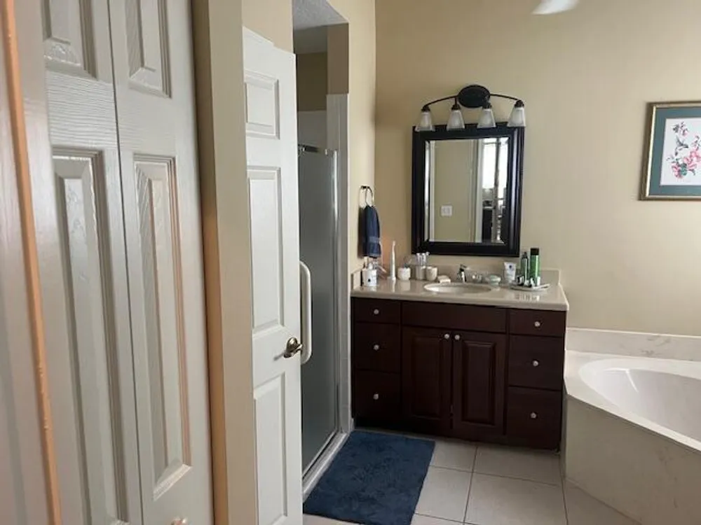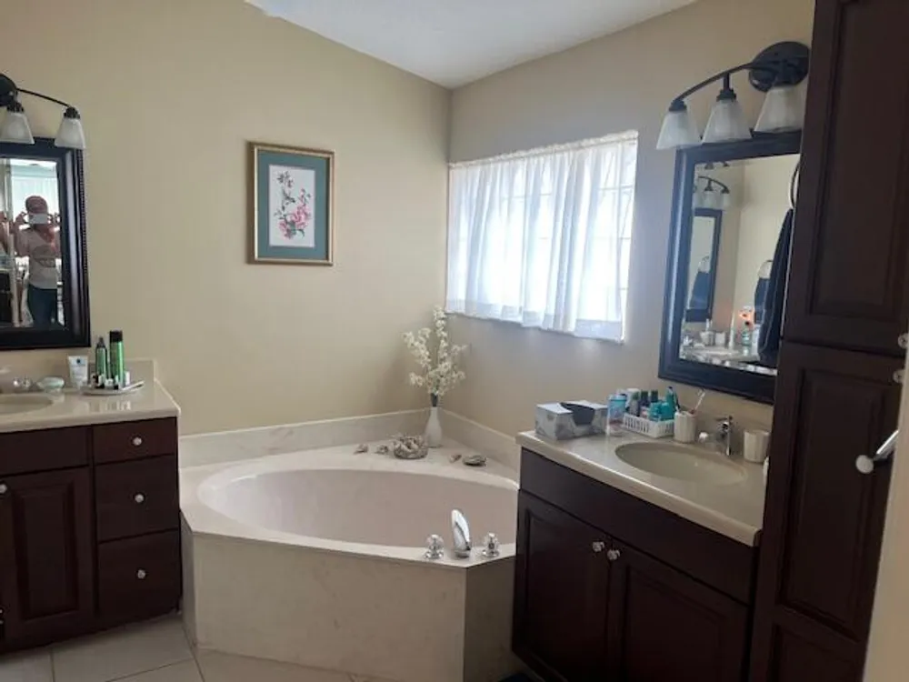 - Built-in Shelving, Cathedral Ceiling(s), Split Bedrooms, Walk-In Closet(s), Family Room, Breakfast Area, Living/Dining Room, Dual Sinks, Separate Shower, Hot Tub/Spa, Storm Shutters