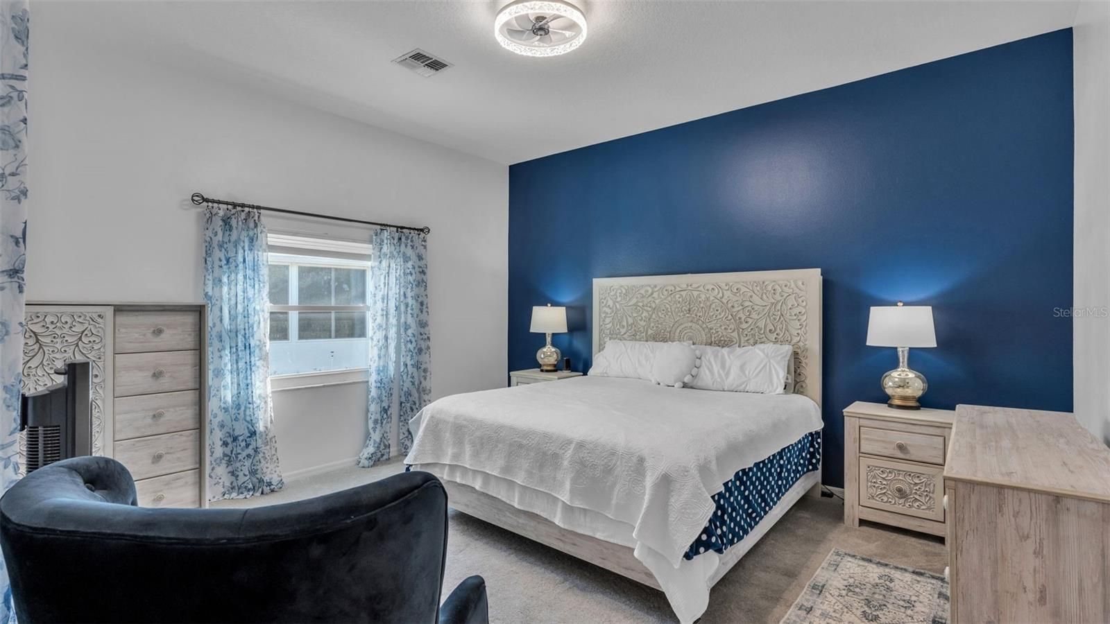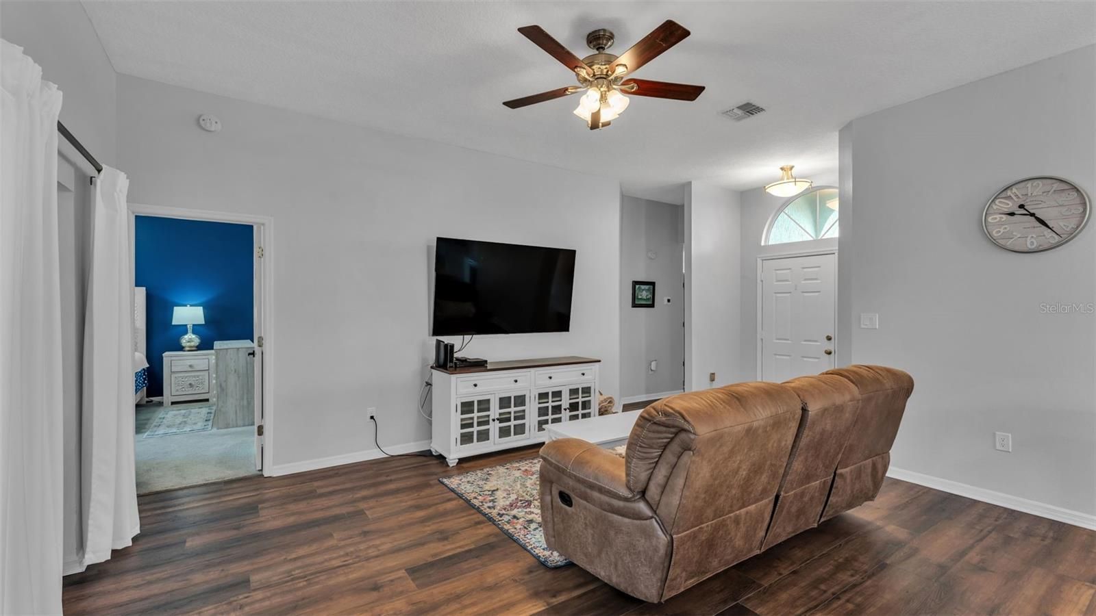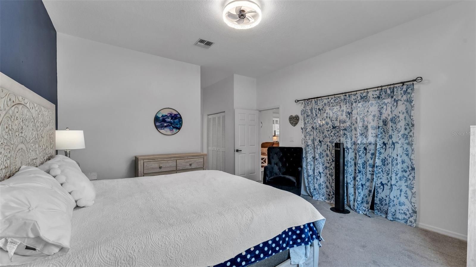 - Ceiling Fan(s), Eat-in Kitchen, High Ceilings, Living/Dining Room, Open Floorplan, Main Level Primary, Stone Counters, Thermostat, Walk-In Closet(s), Window Treatments