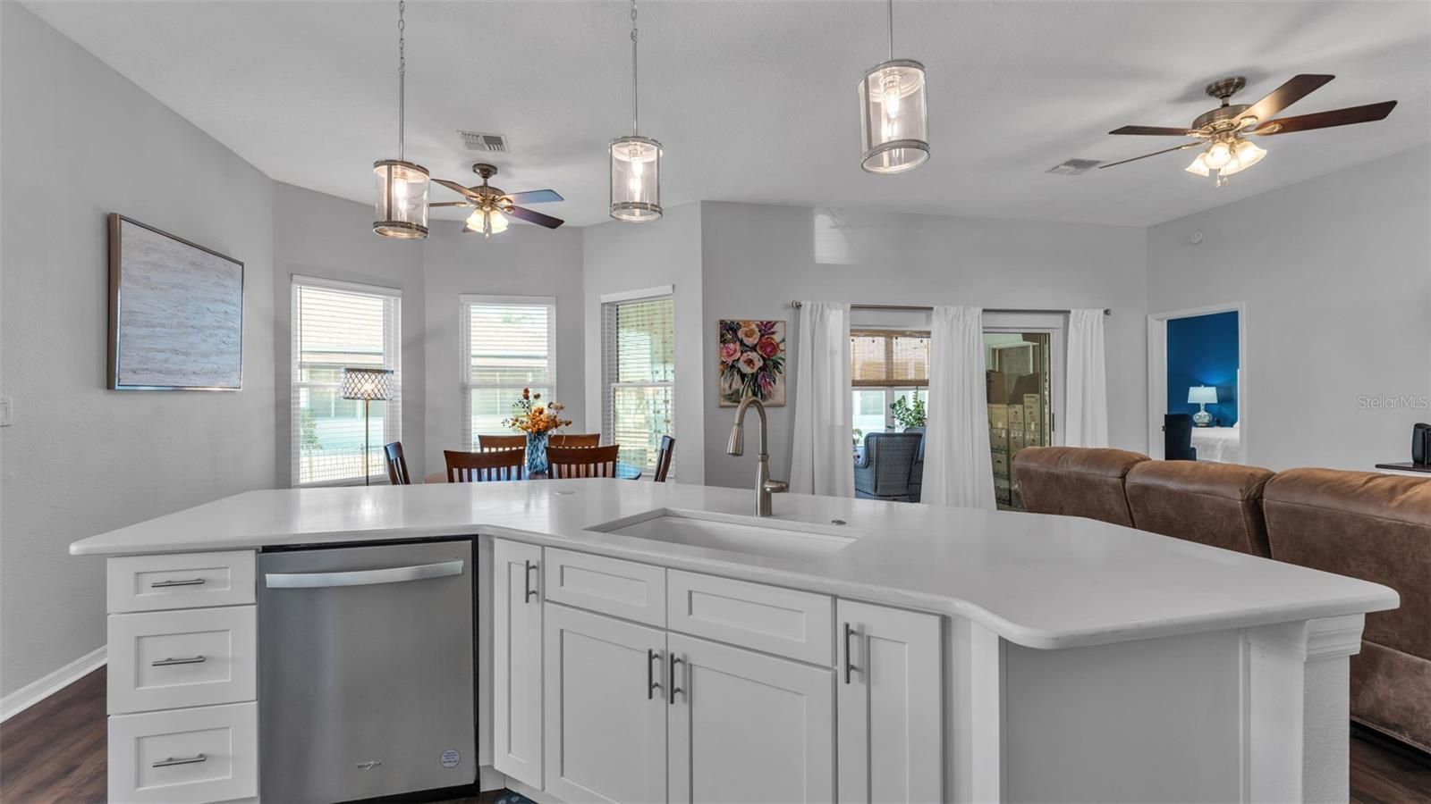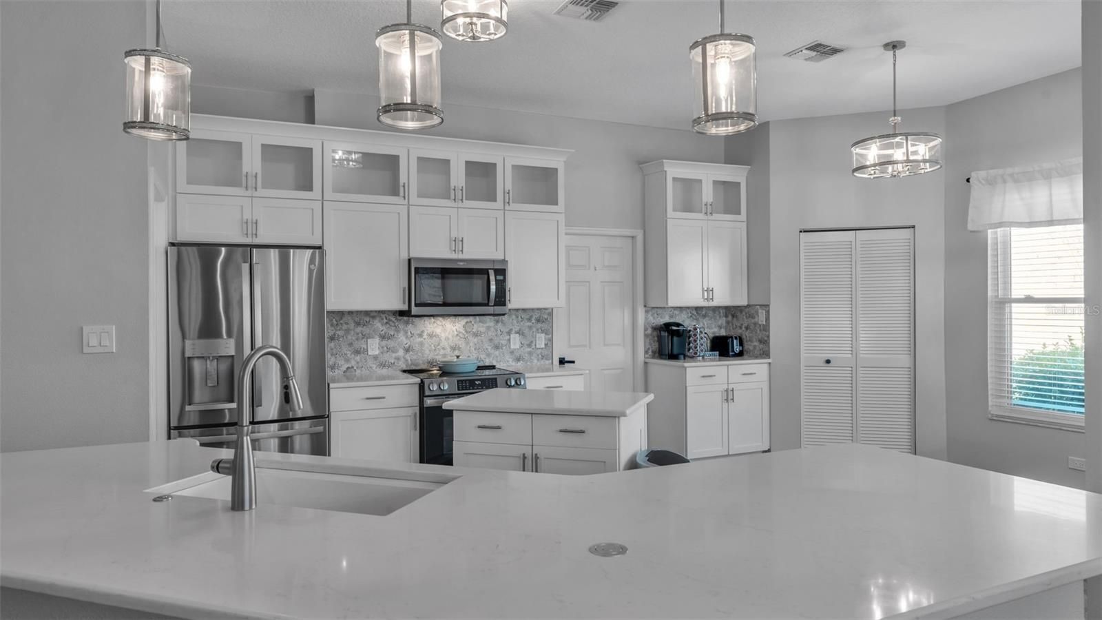 Your search ends here! Presenting 5823 Cockatiel Court… a spacious, move-in-ready, beautifully renovated 3 bedroom, 2 bathroom home located on a large lot in sought-after Lakeland 55+ community “Sandpiper Golf & Country Club.” As you drive up to the home, positioned in the peaceful cul-de-sac of Cockatiel Court, you’ll notice the inviting front entrance with new landscaping, irrigation system and white rock in the courtyard area. As you walk inside the foyer and living room, high ceilings and tons of natural light greet you. The updated kitchen is truly the heart of the home with multiple dining areas, huge island with custom integrated charging station, tile backsplash, display cabinetry, new stainless appliances, quartz counter tops, pantry, coffee bar and many thoughtful details. Imagine yourself enjoying coffee while watching the Florida sunrise or hosting friends in the open floor plan in the evenings. Sliding doors from the living room lead out onto the climatized sunroom and there is a screen room beyond, offering more opportunities to enjoy nature. There’s even a small fenced-in area for pets. Back inside, the primary suite is stunning… featuring double closets (with extra storage shelves & cabinets), an ensuite bathroom with double vanities, designer lighting fixtures and a large walk-in shower. The other two bedrooms are positioned down a hallway at the front of the home for privacy and share a comfortable guest bathroom with new vanity. The laundry room is conveniently located off the kitchen with a charming window, storage cabinets, sink and extra hanging space. Other features include garage storage system, all new flooring (like luxury vinyl plank flooring throughout the main living area), several new windows, ample closets, all new light fixtures, whole home replumbing, all new plumbing fixtures, fresh paint, updated door hardware, window treatments, outlets/switches replaced, plus a new A/C filter & thermostat. Sandpiper Golf & Country Club is an active and popular community featuring two clubhouses, pool tables, fitness center, tennis/pickleball courts, shuffleboard, a restaurant and manicured golf course. Your quarterly dues also include internet and cable. The location is ideal with easy access to the interstate, medical facilities, restaurants, sporting events, theme parks and area attractions. Set up your private tour today!