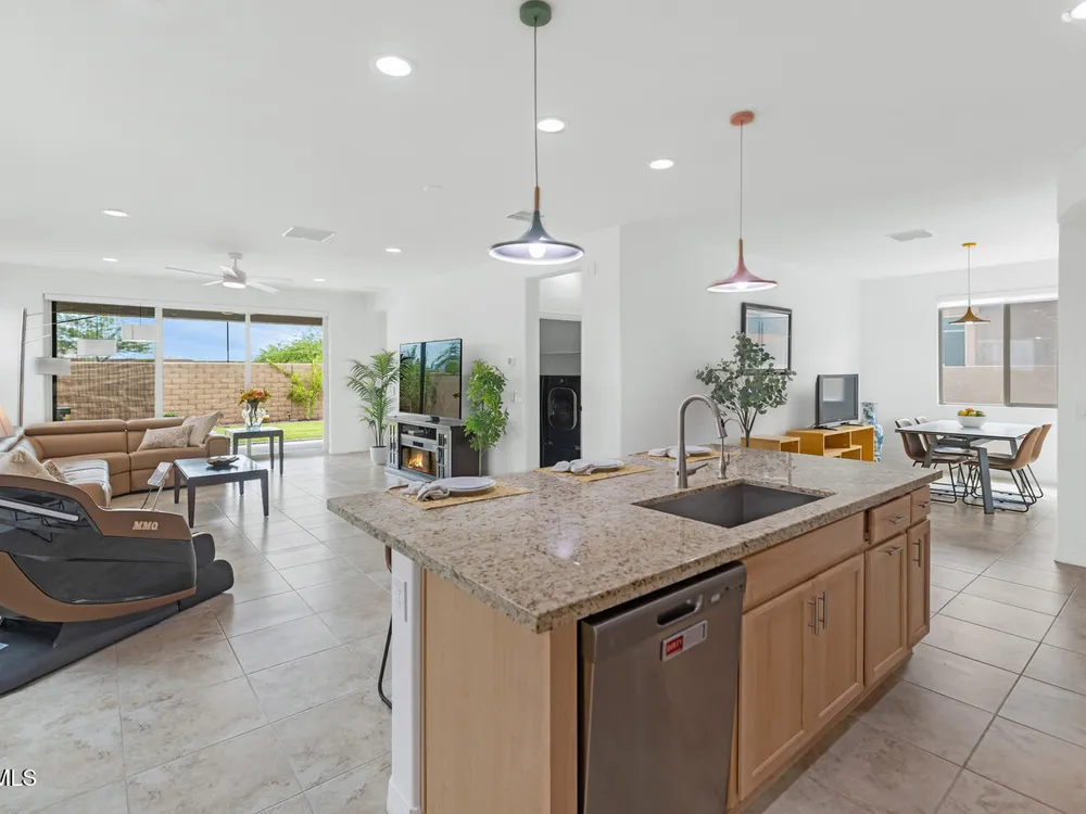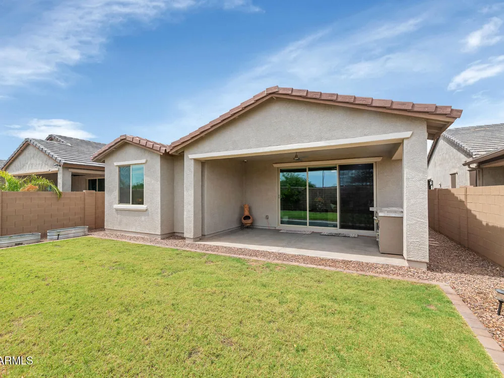 MOVE-IN READY PERFECTION! This stunning 2022 built home offers effortless luxury in prestigious Eastmark. Featuring 2BR/2BA plus Den, this gem boasts $20K in premium upgrades you'll love. Pamper yourself with Rain shower heads & Luxe bidets. Enjoy seamless indoor-outdoor living with Levolor electric roller shades on your patio door, and entertain like a pro with the built-in gas grill outdoors. The extended garage's sleek epoxy floors add that extra wow factor. Everything's been thoughtfully designed and professionally finished - just bring your belongings and start living your best life! Experience all of Eastmark's incredible amenities and community perks in this pristine, hassle-free home that's ready for you today. Living in Eastmark means having access to an incredible array of world-class amenities designed for every lifestyle. The crown jewel is the spectacular 96-acre Eastmark Great Park, featuring a stunning lake with riparian stream, expansive splash pad, the famous "Orange Monster" climbing structure, event pavilion, and miles of scenic walking and biking trails that wind throughout the community. Residents enjoy beautifully maintained open fields perfect for recreation, sports courts for active play, and numerous smaller neighborhood parks scattered throughout. The community is also home to award-winning schools and maintains close proximity to Phoenix-Mesa Gateway Airport for convenient travel. Whether you're seeking family fun at the splash pad, peaceful lakeside strolls, community events at the pavilion, or exploring the extensive trail network, Eastmark delivers resort-style living with the convenience of a thoughtfully planned master community in the heart of Mesa.