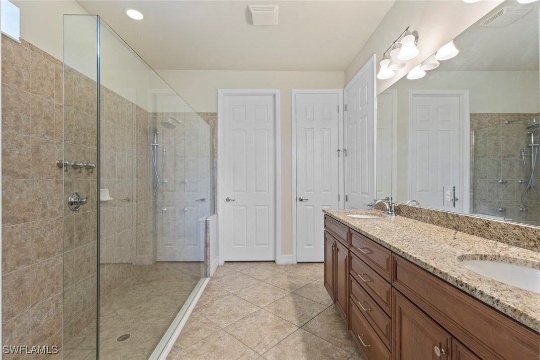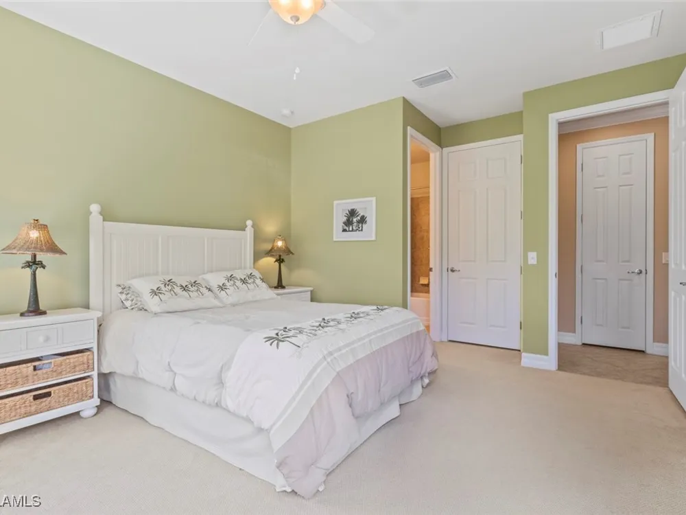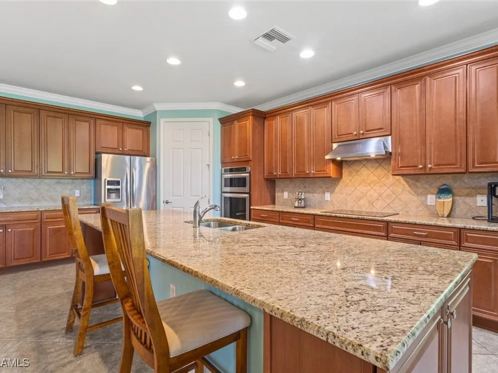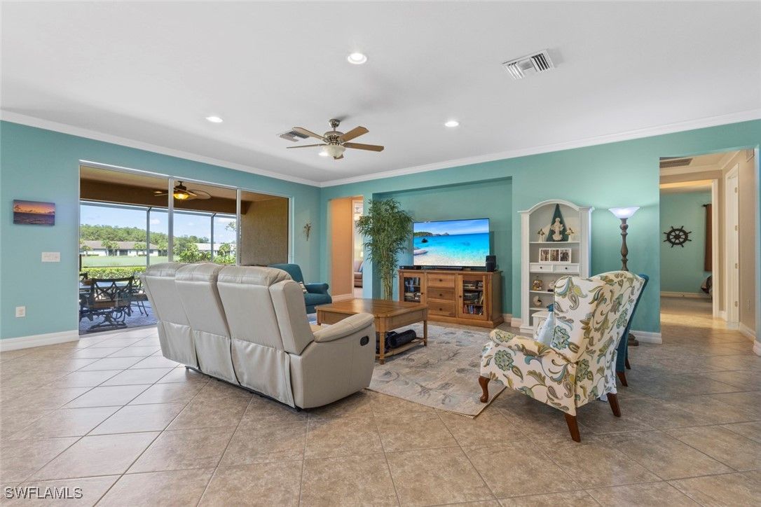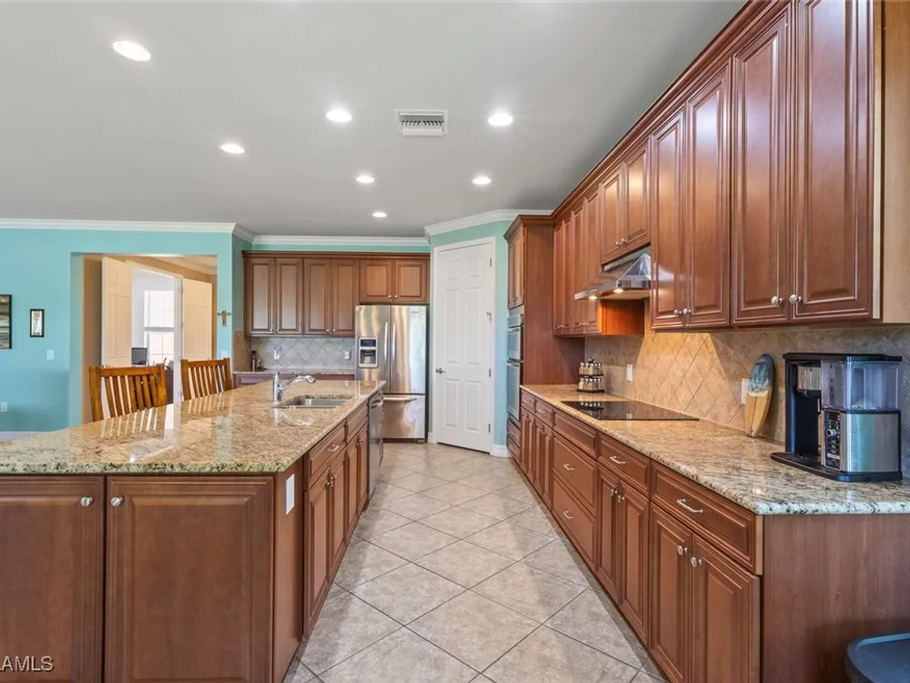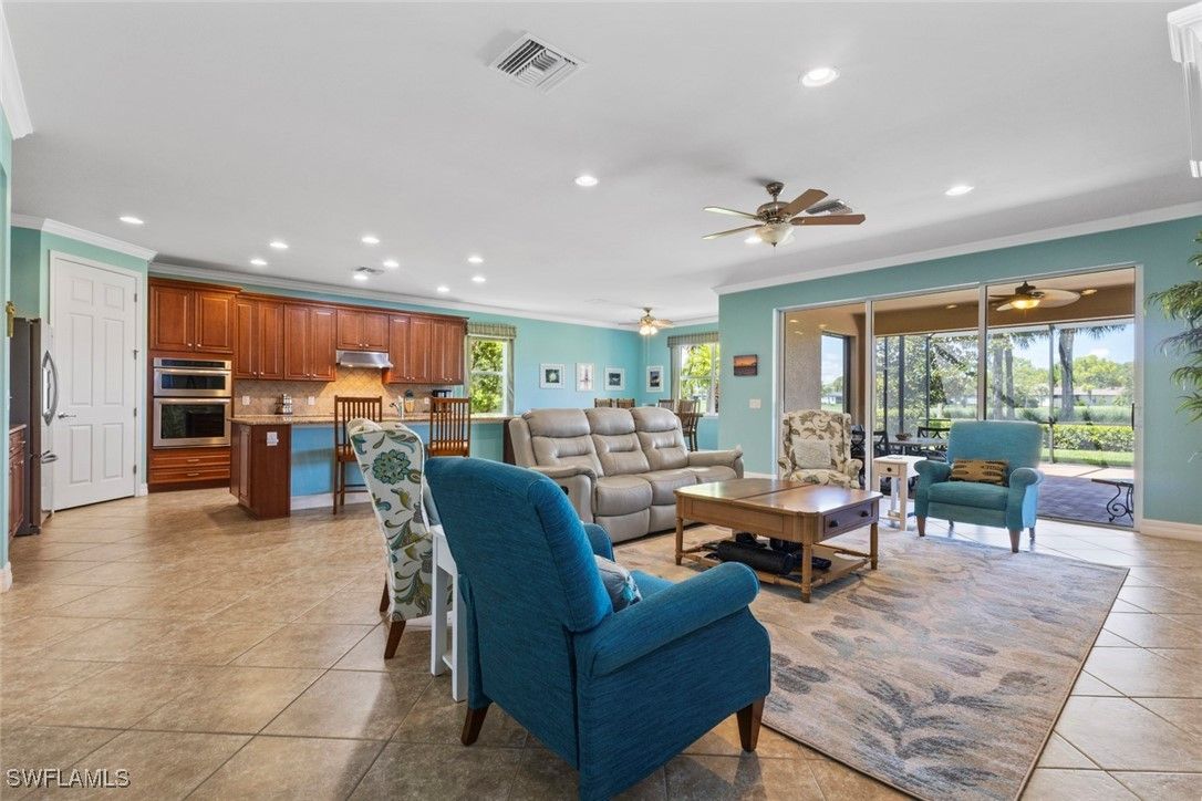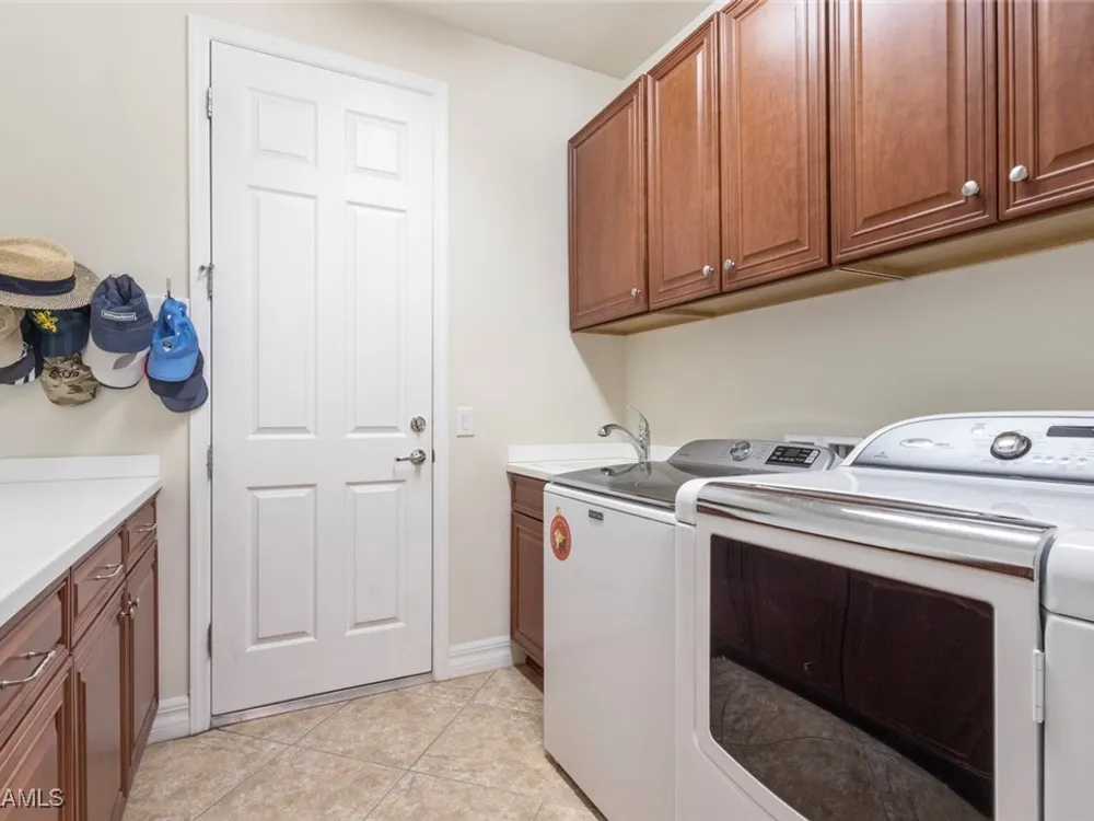 This beautiful DUNWOODY floor plan is located on the 2nd fairway of the Panther Run Golf Course, showcasing GOLF COURSE AND SUNSET VIEWS in the sought-after 55+ Del Webb Naples community with resort-style amenities. This floor plan is comparable to the popular STELLAR model. Inside, the GOURMET KITCHEN impresses with a large island, UPGRADED KITCHENAID APPLIANCES, custom backsplash, abundant cabinetry with pull-out drawers, and large pantry. The primary suite is a retreat of its own, featuring a custom walk-in closet and a spa-like bath with dual vanities and a spacious WALK-IN SHOWER WITH JETS. With 3 bedrooms plus a den, there’s ample flexibility for guests, an office, or hobbies. Flooring includes tile on the diagonal, wood in the den, and upgraded carpet in bedrooms. During storms you will have a peace of mind, the home is equipped with ELECTRIC HURRICANE SCREENS on all windows and doors. A 4-foot EXTENDED 3-car GARAGE offers room for a golf cart, workshop, or additional storage and extra outlets for all your needs. Step outside to an EXTENDED SCREENED LANAI overlooking the fairway. RECENT UPDATES include a NEW HOT WATER HEATER, replaced AC coils, CUSTOM LANDSCAPING, WASHER, and more! GOLF LOVERS —Panther Run Golf Club offers optional MEMBERSHIPS with premium golf experiences just steps from your backyard. In Del Webb Naples, you’ll enjoy WORLD-CLASS AMENITIES that rival luxury resorts: dine at the Rusty Putter Restaurant, soak in the RESORT-STYLE or LAP POOLS, break a sweat in the state-of-the-art FITNESS CENTER, and play your way through PICKLEBALL, TENNIS, bocce, billiards—even a top-tier GOLF SIMULATOR! Need groceries, church, or a bite to eat? Just hop in your golf cart and cruise into town—Publix and the heart of Ave Maria are just minutes away. This isn’t just a home—it’s a LIFESTYLE UPGRADE in one of Southwest Florida’s most vibrant 55+ communities. Don’t miss your chance to live where fun, fitness, and friendships flourish year-round!