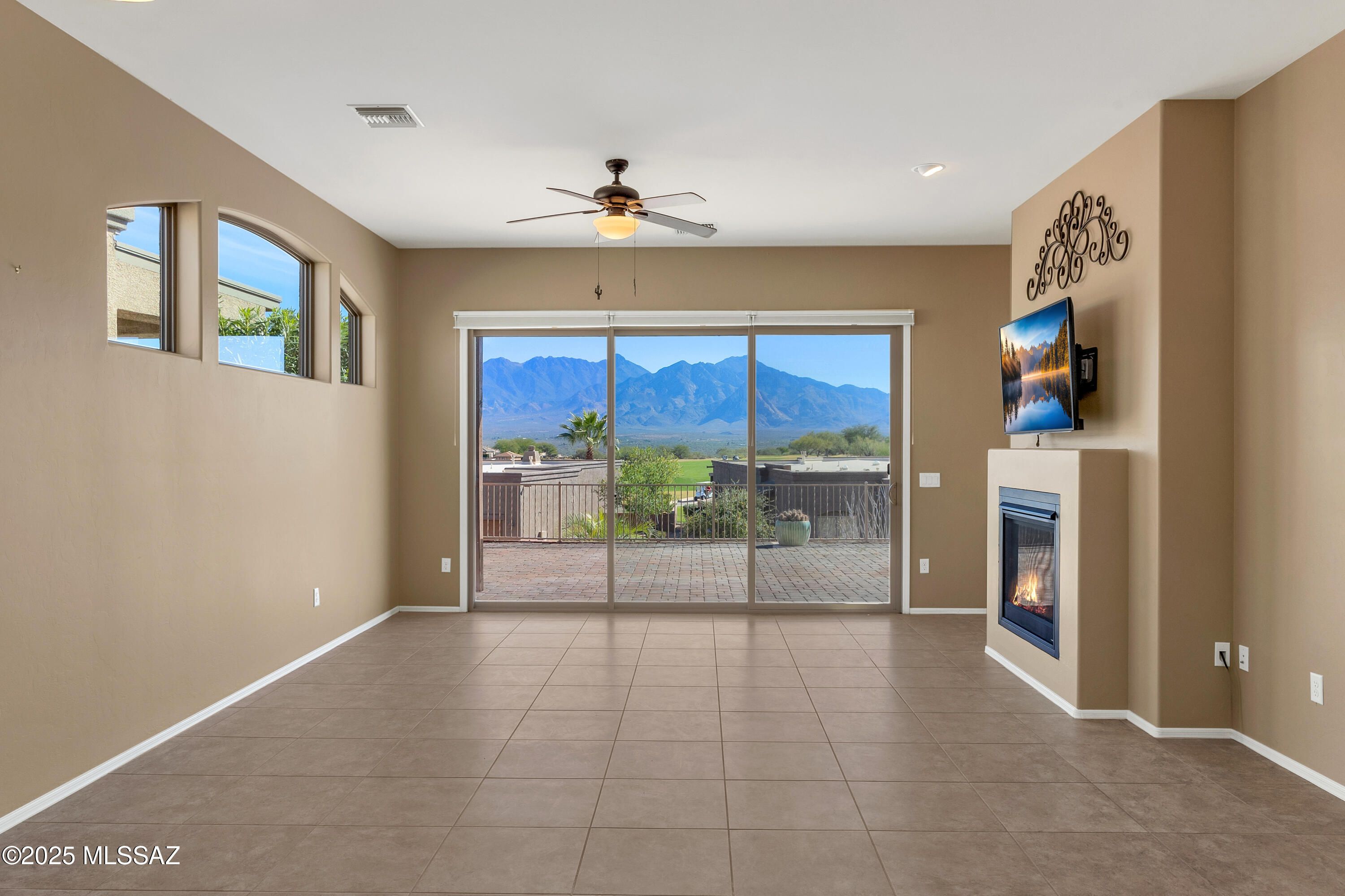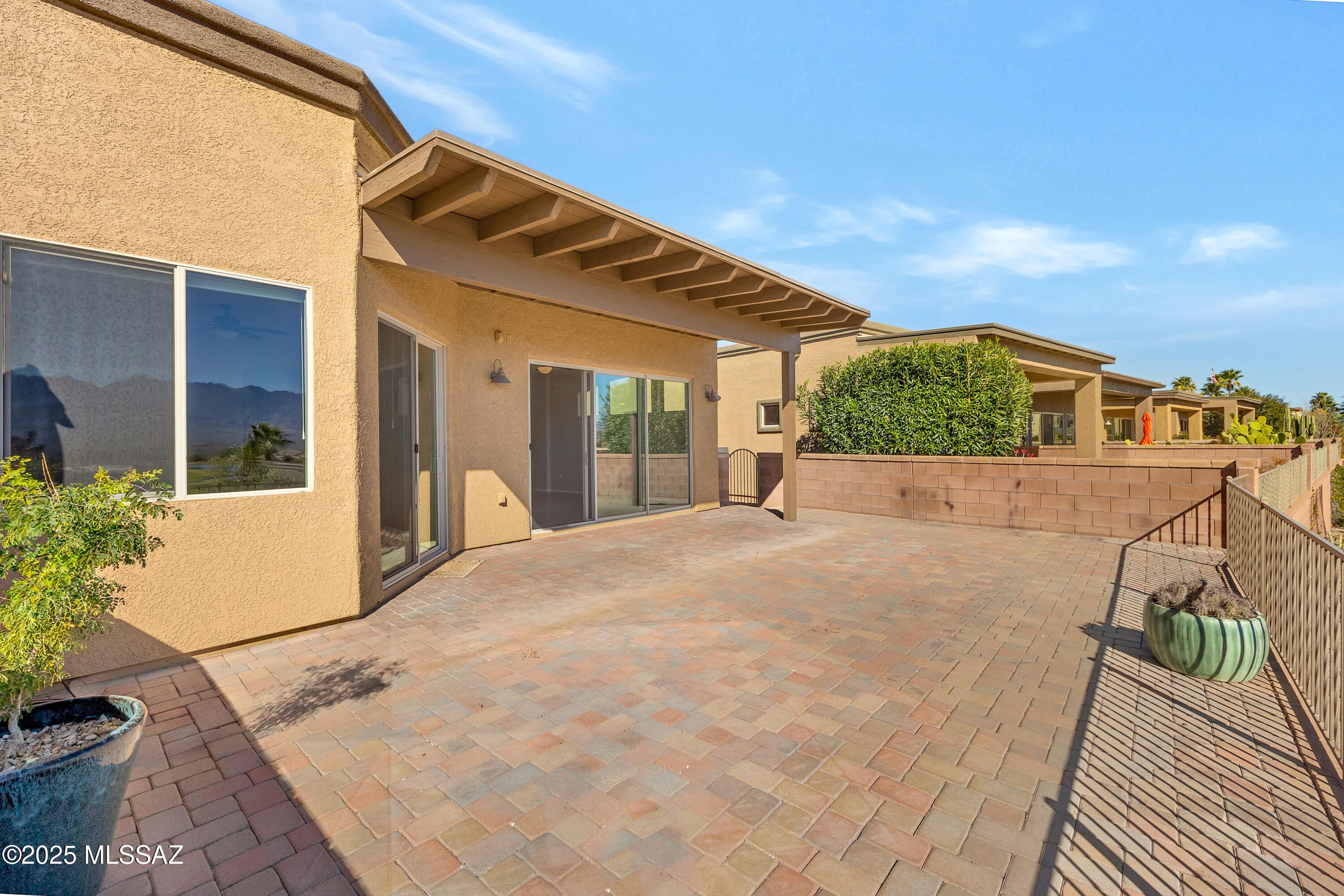 Views, lifestyle, and low-maintenance living all come together in this beautifully maintained townhome in the upscale Canoa Ranch Golf Resort community. Discover front-row, unobstructed vistas of the Santa Rita Mountains and Canoa Ranch golf course from an expansive paver patio that truly feels like an outdoor living room--perfect for morning coffee, sunset cocktails, and entertaining family and friends year-round. From the moment you arrive, the curb appeal stands out with a rustic copper garage door and inviting front entry. Inside, a bright foyer leads to the well-appointed kitchen featuring stainless steel appliances, granite countertops, and ample cabinetry. The kitchen flows into a welcoming great room with a cozy fireplace and a wall of double glass sliders, framing the
