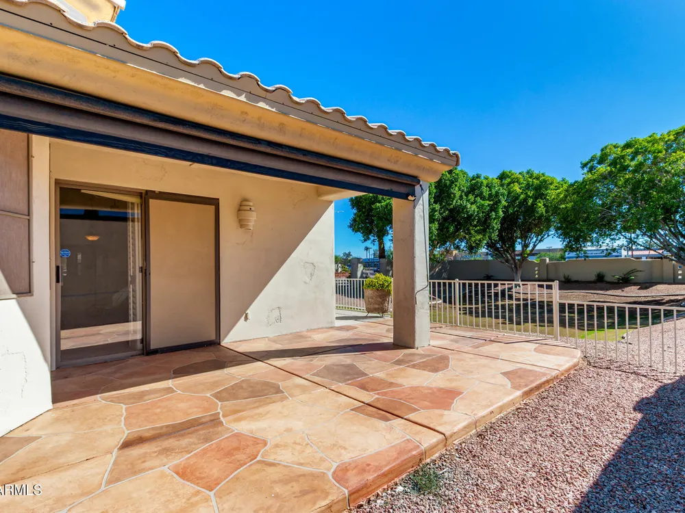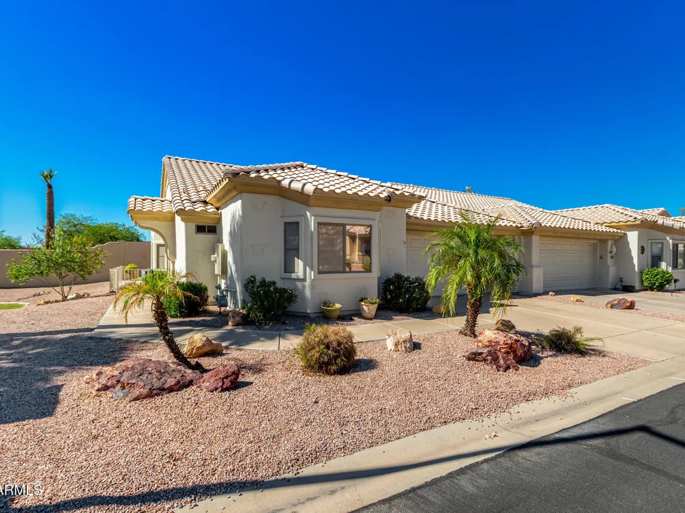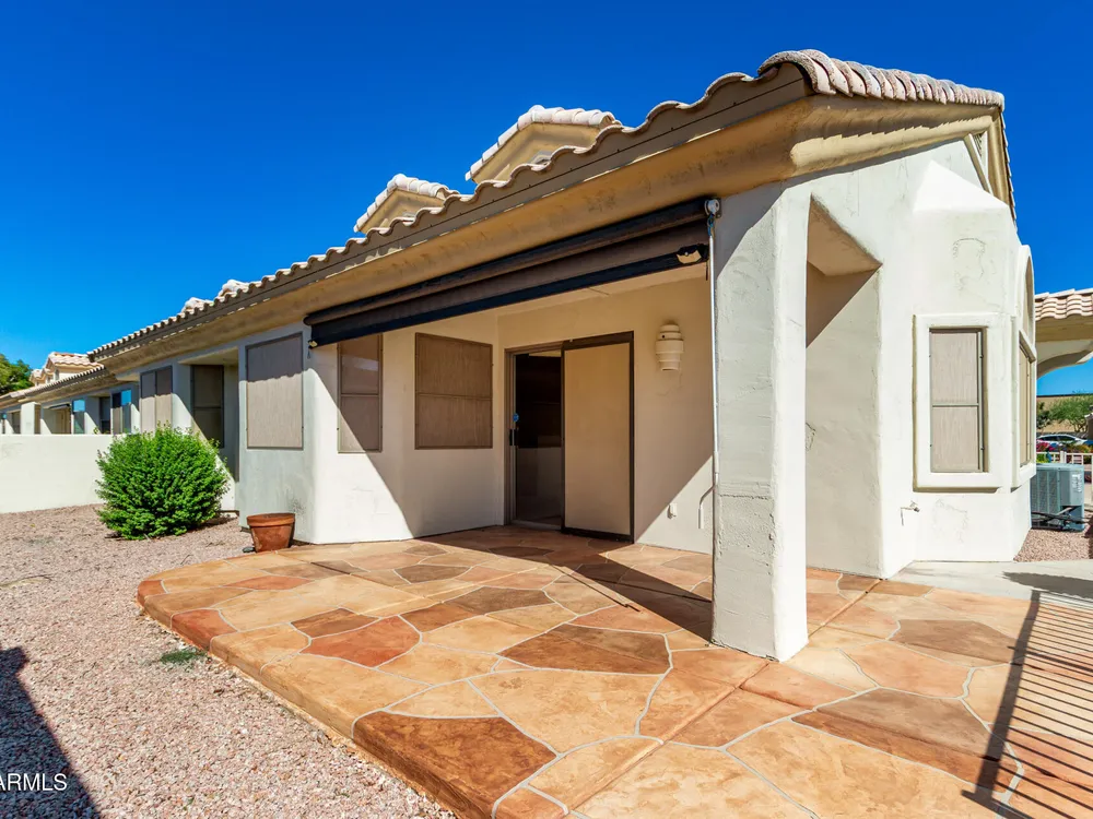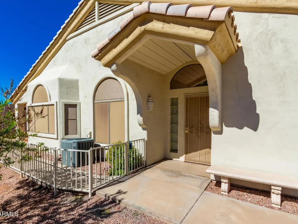 Welcome home! Your first introduction to this Unique and immaculate end-unit is the private walkway which leads to your front door or continue along the fenced walkway to the newly resurfaced flagstone patio in the back. Going inside the front door, find a wonderful bright home lovingly cared for, inviting you to look out upon the large windows at the sky and green belt and trees. It is a nice open feeling and the greenbelt is all taken care of by the HOA.Vaulted ceilings, French doors to the front bedroom, four bay windows, plantation shutters all embrace you to stay awhile.Ceiling fans throughout the house keep you cool and comfortable or move heated air more efficiently in winter.The open great room allows for flexibility with the use of space of the living room dining room, breakfast bar and kitchen. The kitchen is efficient, S/S appliances, very nice cabinetry and counters with modern colors that harmonize nicely. It is so pleasant to cook and prepare for family/guests in this open environment. The two equally large bedrooms feel ample with their bay windows, sunlight, spacious walk-in closets and bathrooms. It Is a great feeling of comfort and cherished quiet moments. Need garage space? The epoxy garage floor and lots of built-in cabinets for storage make your day easier! Even has its own ceiling fan for air movement! The 2-car garage door opener is a Crafty HP Smart unit for your peace of mind. WONDERFUL LIGHT BRIGHT HOME THAT HAS BEEN SO LOVED & CARED FOR! SPLIT BEDROOMS BOTH GREAT SIZE WITH WALK IN CLOSETS! THE OPEN GREATROOM ALLOWS FOR FLEXIBILITY FOR USE OF SPACE, DINETTE OFF KITCHEN USED AS FORMAL DINING, ROOM FOR WATCHING TV PLUS ROOM FOR A CONVERSATION/CARD TABLE AREA, YOU CHOOSE!!! THE OUTDOOR SPACE IS ALSO WONDERFULLY PRIVATE WITH NEWLY RESURFACED PATIO! HVAC IS ABOUT 2013, WATER HEATER ABOUT 2023, PLUS WATER SOFTENER & R/O SYSTEM AT KITCHEN SINK! THERMOSTAT HAS ALSO BEEN REPLACED! ROOF WAS RECENTLY REPLACED BY THE HOA! BY THE WAY, THE 3 MOST IMPORTANT THINGS ABOUT REAL ESTATE? LOCATION LOCATION LOCATION!!! PREMIUM LOT/LOCATION NEXT TO GREENBELT ALLOWS FOR WONDERFUL PRIVACY WHILE HAVING THE SECURITY OF A GATED COMMUNITY! BEST BUY IN THE WELLS!