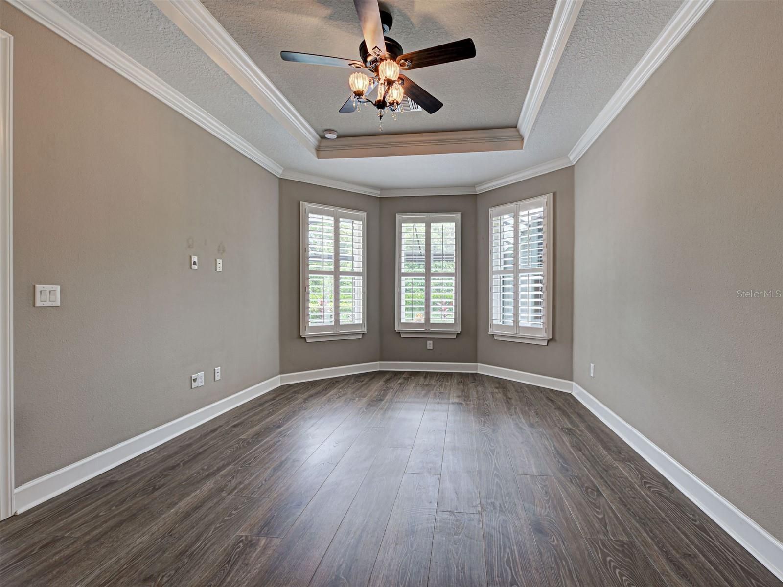 - Ceiling Fan(s), Crown Molding, Solid Surface Counters, Stone Counters, Tray Ceiling(s), Walk-In Closet(s)