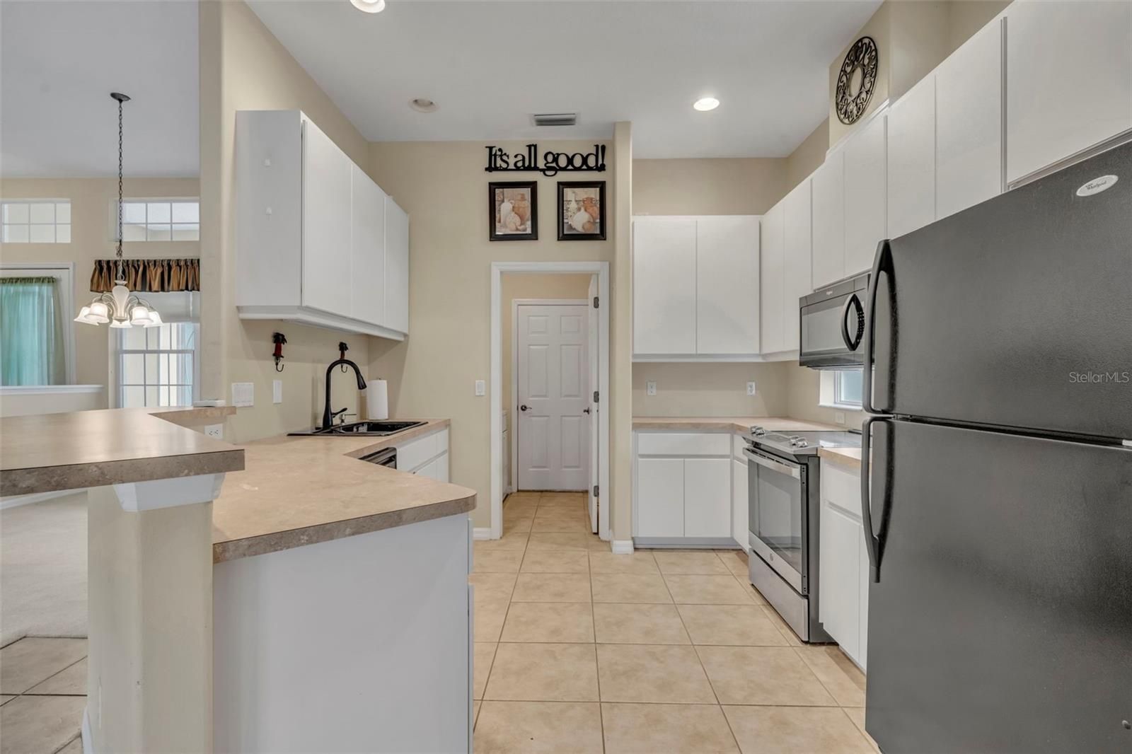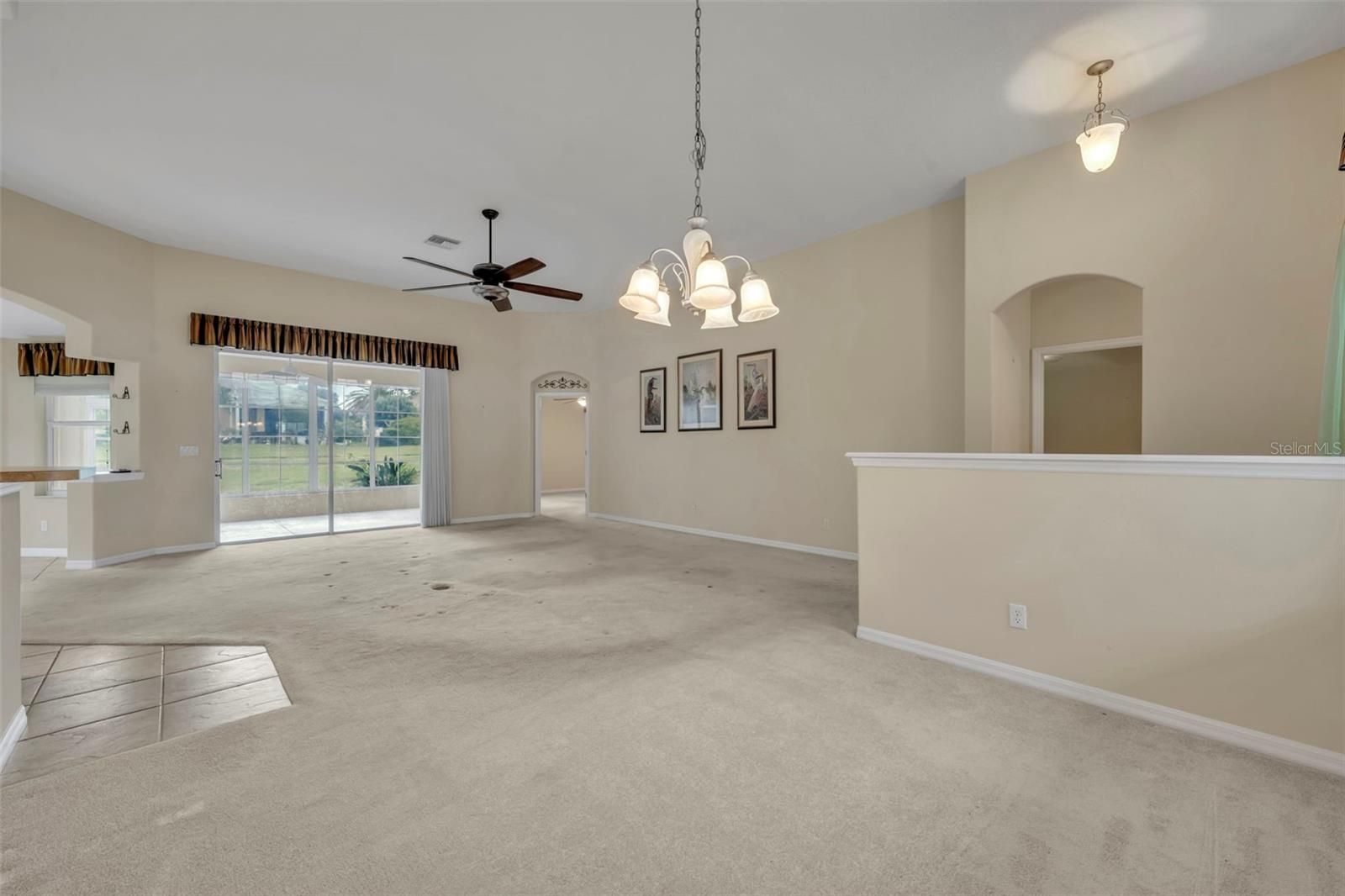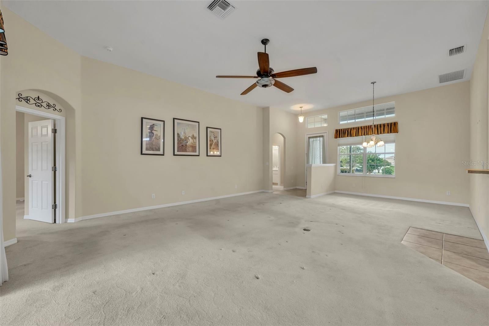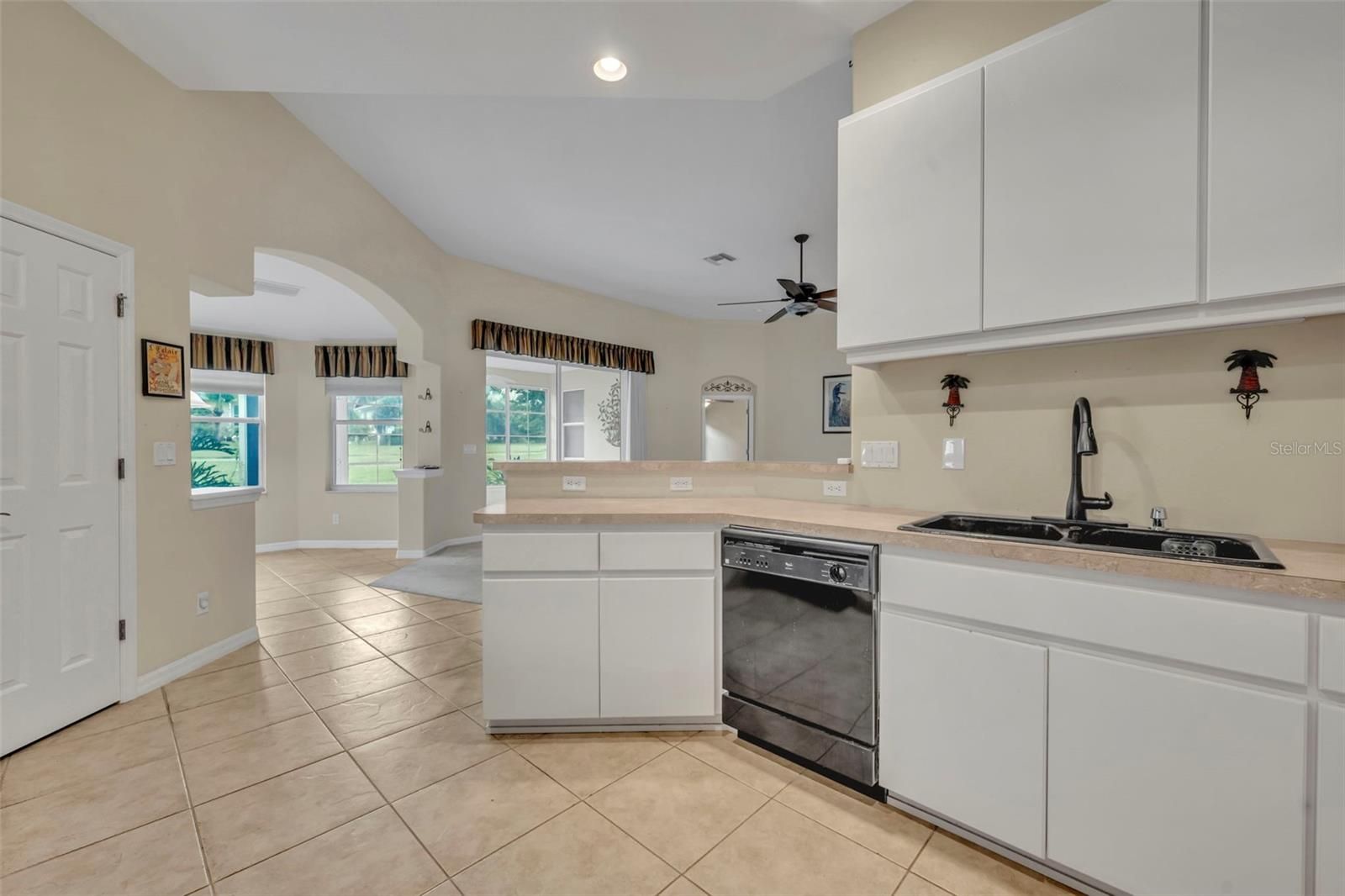 - Ceiling Fan(s), High Ceilings, Open Floorplan, Solid Surface Counters