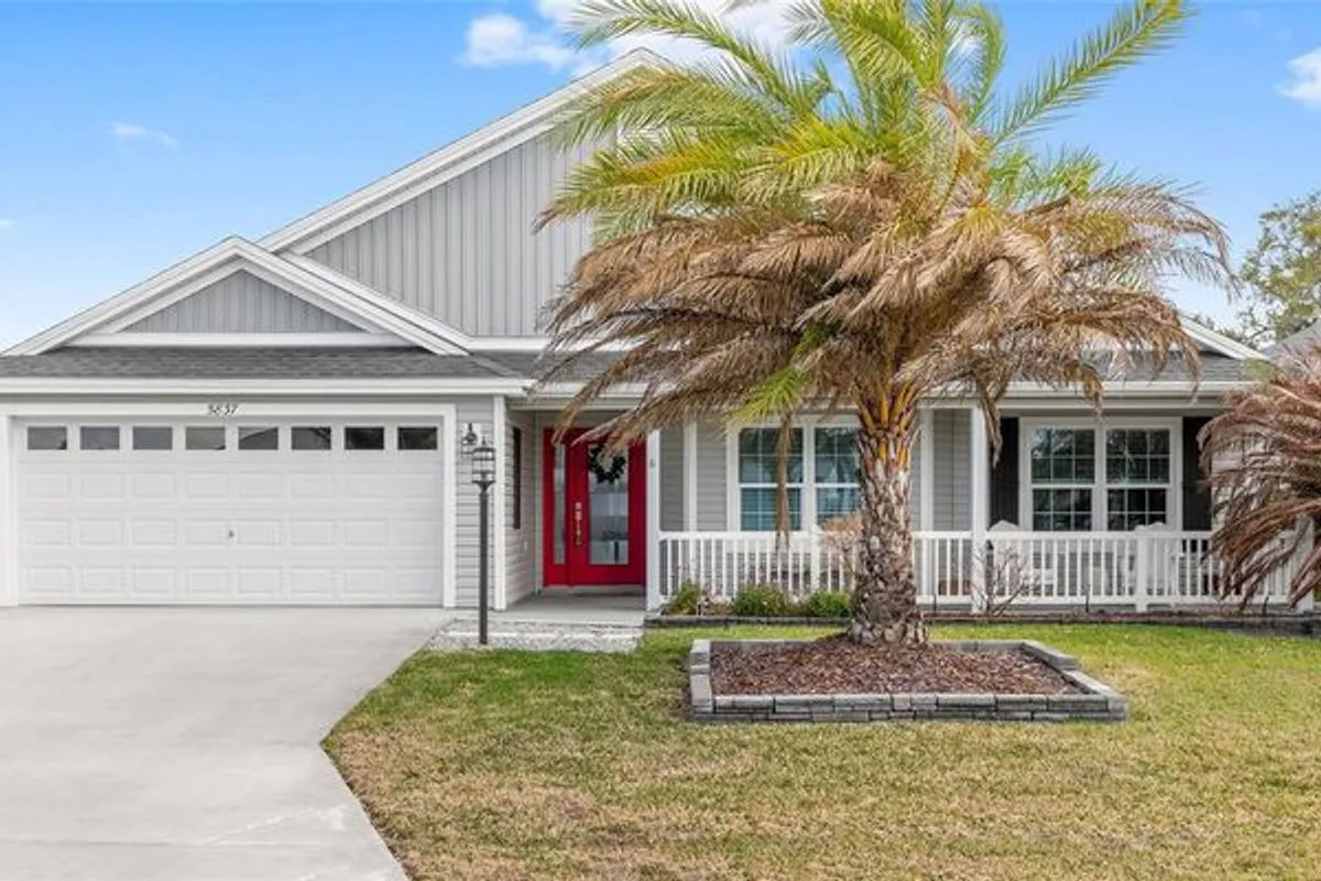 ~$20,000 PRICE REDUCTION~ ~7 MINUTES FROM EASTPORT BY GOLF CART~ ~2020 ROOF, HVAC, HOT WATER HEATER~ ~WATER VIEW~ ~ROOM FOR A POOL~ ~BEAUTIFUL FRONT PORCH~ ~2’ STRETCH~ Welcome to this beautifully appointed STRETCHED SYCAMORE model in the sought-after Village of LINDEN! Perfectly positioned with a tranquil WATER VIEW and a charming FRONT PORCH, this home offers the ideal setting to enjoy the Florida lifestyle. Inside, LUXURY VINYL plank flooring flows seamlessly throughout the entire home, creating a cohesive and modern feel. The inviting living room features a ceiling fan and opens effortlessly to the main living spaces. The stunning kitchen is designed for both function and style, showcasing QUARTZ countertops, a LARGE ISLAND, SAMSUNG STAINLESS-STEEL appliances, TILE BACKSPLASH, under-cabinet and over-cabinet lighting, recessed lighting, and a bright EAT-IN AREA. The adjacent dining room features HIGH CEILINGS that enhance the home’s spacious and airy ambiance. The primary suite is a true retreat with a high TRAY CEILING and 2 CUSTOMIZED WALK-IN CLOSETS. The spa-like primary bath offers a TILED ROMAN SHOWER, DUAL sinks, HIGH QUARTZ countertops, and a PRIVATE COMMODE area. Guests will appreciate 2 well-appointed guestrooms, each with CUSTOMIZED BUILT-IN CLOSETS and ceiling fans. The guest bath includes a tiled tub/shower combination, linen closet, and HIGH QUARTZ countertops. The INSIDE LAUNDRY ROOM is equipped with LG appliances, a utility sink, shelving, and cabinetry for added storage. An ADDITIONAL PANTRY was thoughtfully created by converting the former coat closet, enhancing kitchen storage and functionality. Relax year-round in the EXPANDED LANAI featuring textured painted flooring, ENCLOSED DOUBLE-PANE GLASS WINDOWS, heat and air, and 2 ceiling fans—perfect for enjoying the beautifully landscaped backyard with room to ADD A POOL. Custom FRENCH DOORS add an elegant touch and easy access to outdoor living. This exceptional home combines thoughtful upgrades, beautiful views, and a prime location in The Villages. Minutes from Magnolia Plaza with shopping and dining. Close to the Riverbend Rec Center and well as a short golf cart ride to Fenney, Sawgrass, Brownwood AND EASTPORT!
