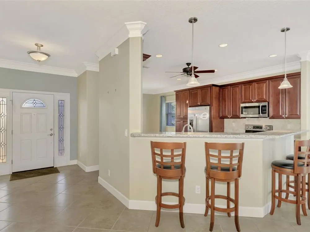 One or more photo(s) has been virtually staged. Move-In Ready Lakefront Home in the Highly Sought-After 55+ Community of Park Forest! Immediate occupancy available—don’t miss this rare opportunity to own a fully upgraded Pearl model in one of the area’s most desirable active adult communities! Best of all? No CDD fees to worry about. This beautiful lakefront home offers a thoughtfully designed floor plan featuring: A spacious open-concept kitchen with granite countertops, solid wood cabinets, and convenient pull-out shelving, A bright, airy eat-in dinette overlooking the water A large master suite with a walk-in closet and private bath, A separate den/office with peaceful pond views—perfect for working from home or quiet relaxation, Enjoy serene water views from your enclosed lanai, or entertain guests on your expansive paver patio. Built in an X flood zone for added security and featuring impact windows and shutters, this home is built to withstand the elements. A full roof replacement was completed in 2023, offering years of worry-free living. The low monthly HOA covers: Lawn maintenance Exterior painting every 7 years Roof replacement every 17 years Park Forest residents enjoy an active clubhouse lifestyle, complete with social events, community amenities, and a welcoming atmosphere. You’ll also appreciate the rear gated access to Pine Street with a traffic light, making it easy to bypass Hwy 776 congestion. This move-in-ready gem offers the perfect blend of comfort, convenience, and community. Schedule your private showing today