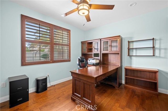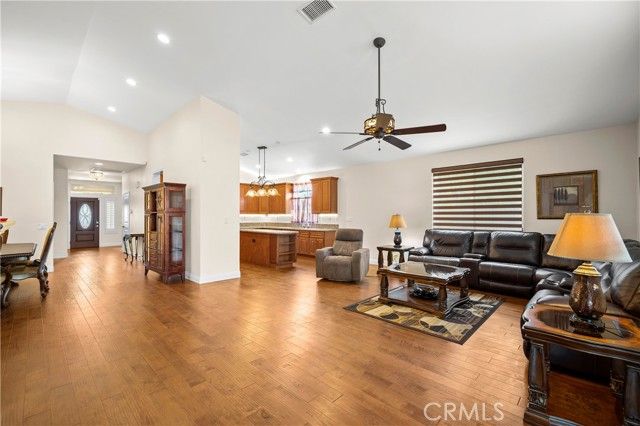 One of Kind home Beautifully upgraded, this Invitational model is located in the 55+ Four Seasons community, a fully gated neighborhood with 24/7 security, surrounded by scenic hills and the Hemet Golf Course. This spacious 2 bedroom, 2 bath home with an office/den features a generous great room with high ceilings and a cozy fireplace. The upgraded kitchen offers an island, abundant storage, and stylish finishes. An oversized backyard overlooking the golf course provides the perfect setting for outdoor entertaining. This property has NO MELLO ROOS Four Seasons residents enjoy an array of amenities, including a pool, spa, fitness center, bistro, ballroom, movie theater, computer room, library, tennis courts, and much more.