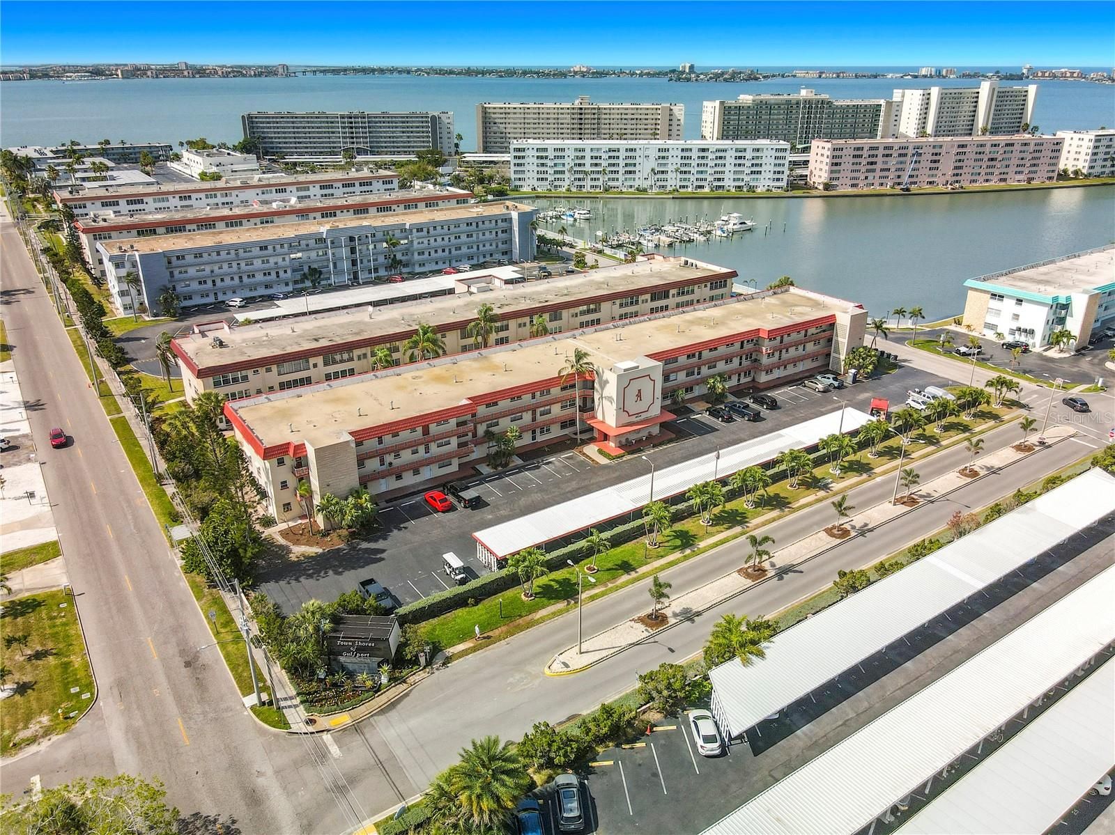 Welcome to the Avalon Building at Town Shores of Gulfport, a beautifully maintained 55+ waterfront community set along the shores of Boca Ciega Bay! This updated 1-bedroom, 1-bath condo offers a fresh, move-in-ready interior with tasteful renovations throughout! You'll feel right at home in this 1-bedroom bottom floor unit! Step inside to a bright, open living space featuring easy care luxury vinyl flooring, updated lighting, and a clean, neutral color palette. The remodeled kitchen showcases new cabinetry, solid-surface counters, and energy efficient appliances, perfect for everyday cooking. The spacious bedroom has fresh paint and a walk-in closet, and the updated bathroom has a crisp, refreshed look. This unit is conveniently located next to the laundry facilities and mailboxes, with designated parking at your front door! The Avalon building is known for its friendly atmosphere and convenient location within the community. Residents enjoy access to resort style amenities! Four heated pools, tennis and pickleball courts, a fitness center, shuffleboard, billiards, library, a marina, and scenic waterfront walking paths. Live the Gulfport lifestyle! Just minutes away, downtown Gulfport offers charming restaurants, boutiques, art galleries, vibrant night life, and weekly markets. Call today to see!