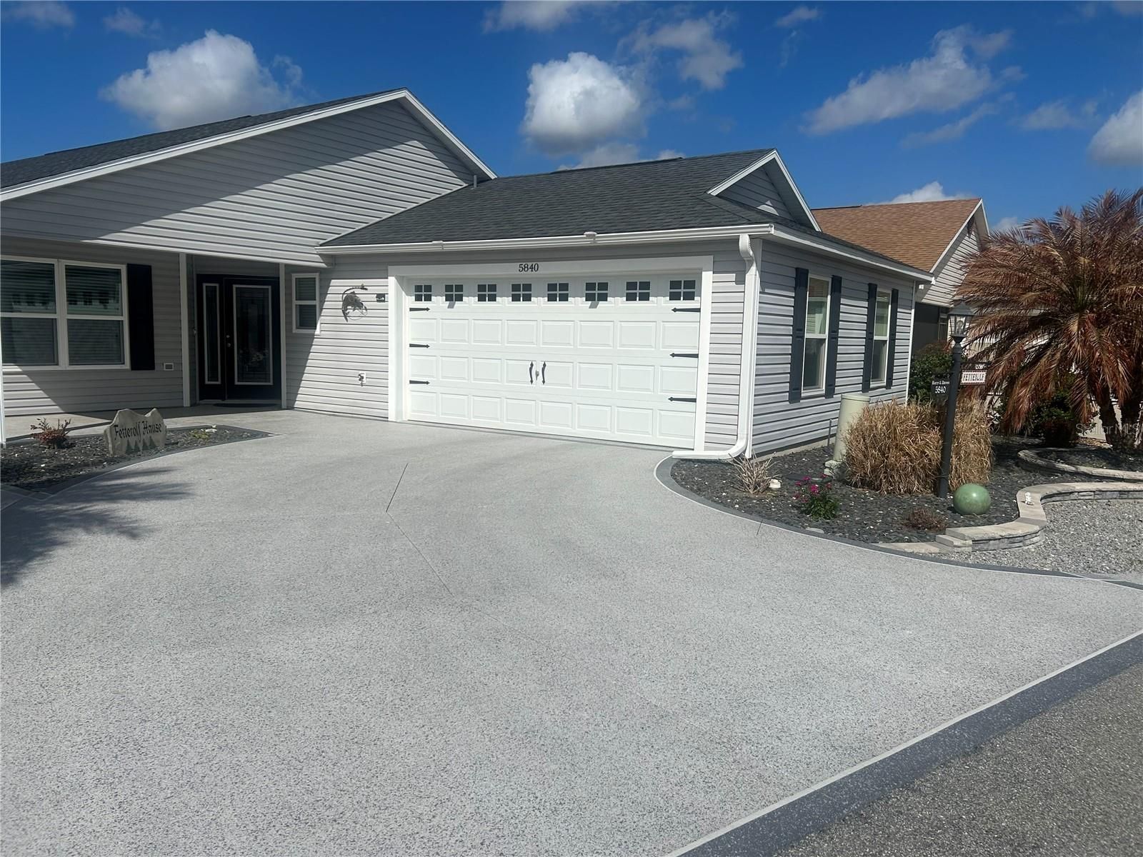 Location, location, location! This 8 year old Courtyard Villa is located in the Villages Florida. Courtyard Villas provide privacy, security with an enclosed backyard. This house is strategically located for Golf Cart usage to shopping, golf courses, and entertainment. Welcome Home to 5840 Unger Court where it is nestled in the neighborhood of Tupelo Villas in the Village of DeSoto. This charming 3 bedroom 2 full bath is a 1743 Sq Ft Melrose Model. With its open floor plan it is conducive to entertaining and peaceful evenings at home. Inside you will find numerous enhancements including epoxy garage and lanai floors and a Nova Whole Home water filtration System. Outside you will have minimal care hardscaping with all cement areas recently painted and sealed with a classic design. This prime location allows enjoyment just minutes away from the Brownwood Paddock Square offering nightly entertainment, shopping, and restaurants. Your new home has newly installed Luxury Vinyl Floors throughout and updated Quartz Countertops in the kitchen and both Baths. Master bath includes dual sinks and a Roman Shower. Decorative ceiling moulding has already been installed throughout the whole house. Custom closet enhancements were also done. Your backsplash is done with a classic subway tile and all cabinets have been upgraded to include pull out drawers. All window treatments (blinds and curtains) are included. A 3 minute golf cart ride will get you to the Community Swimming Pool and Activities. You are conveniently located to nearby Championship or Executive Courses by golf cart. Washer/Dryer and all appliances stay. You will enjoy many custom built in upgrades.