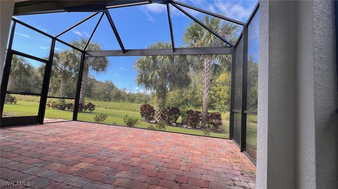 5845 Mayflower Way, Ave Maria, FL 34142-- Located in the desirable ADULT ACTIVE LIFESTYLE Community of Del Webb Naples (55+). Welcome to the "CASCADIA" Model END UNIT (Attached VILLA) w/ 2 bedrooms PLUS Den/Office including FRENCH DOORS, 2 Full Bathrooms and a spacious 2 Car Garage. Total Living area of 1602sf. The Western Exposure PRESERVE VIEW from your EXTENDED Screened-in Lanai is simply PRISTINE and perfect for outdoor grilling and gazing at the sunset. This home features TILE FLOORING, 8' Doors, Baseboards and Window Treatments; HURRICANE IMPACT WINDOWS & DOORS. The open-concept kitchen features quartz countertops and White Cabinetry. The MASTER BEDROOM includes a walk-in closet and convenient en-suite bathroom with a large walk-in shower. Del Webb’s Oasis Club Resort-Style Amenities include two clubhouses, a fitness center, a resort-styled pool w/Walk-In Entry, Lap Pool and a SPA. OTHER AMENITIES: Golf Simulator, Billiards, Tennis, Pickleball, Bocce, Large Catering Hall w/kitchen, a café, library, arts & crafts room. Del Webb has an activities director offering a full calendar of social events. Panther Run Golf Club offers Optional MEMBERSHIPS with premier golf experiences. Golf enthusiasts will appreciate the semi-private championship-style golf course complete with a pro shop and on-site golf professional. Dining at the Rusty Putter next to the Golf Pro-Shop is an incredible convenience and it is also open to the public.