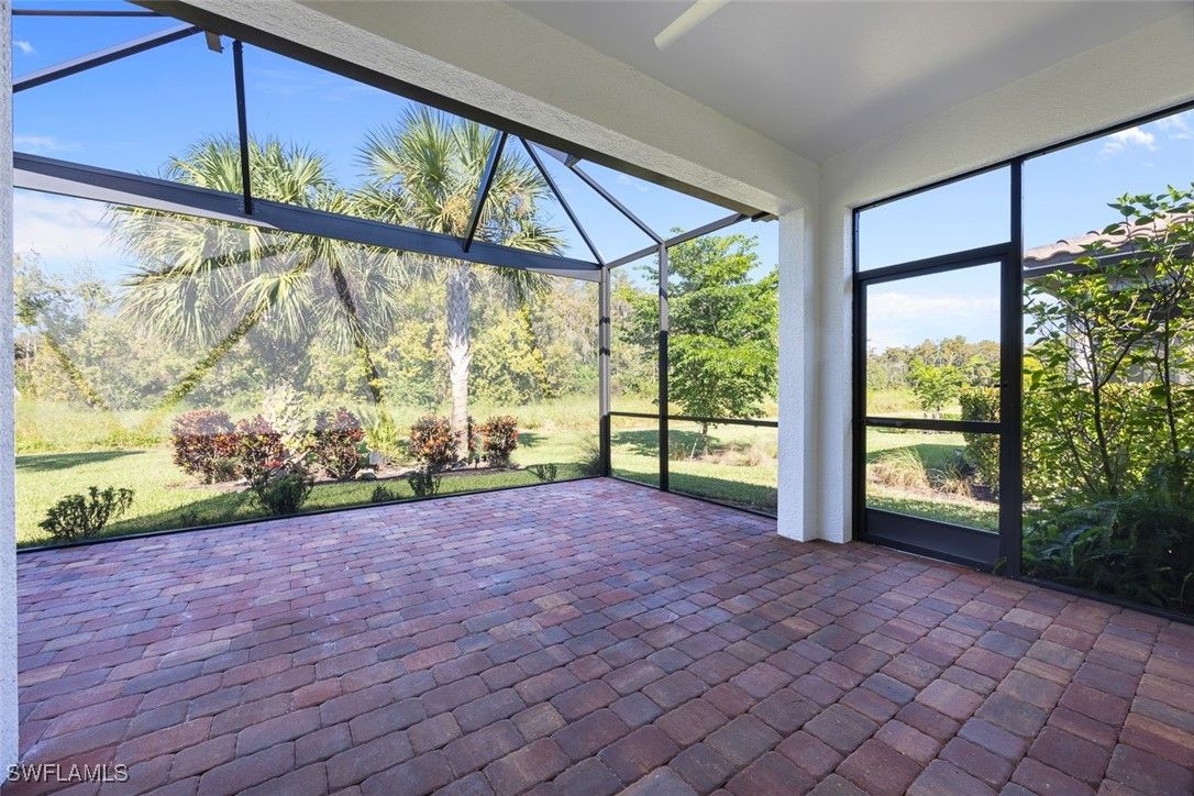 5845 Mayflower Way, Ave Maria, FL 34142-- SELLER INCENTIVES AVAILABLE--- Welcome to the "CASCADIA" Model END UNIT (Attached VILLA) w/ 2 bedrooms PLUS Den/Office including FRENCH DOORS, 2 Full Bathrooms and a spacious 2 Car Garage. Total Living area of 1602sf. LOW DUES include lawn care & HUGE Social Amenities. Located in the desirable ADULT ACTIVE LIFESTYLE Community of Del Webb Naples (55+). The Western Exposure PRESERVE VIEW from your EXTENDED Screened-in Lanai is simply PRISTINE and perfect for outdoor grilling and gazing at the sunset. This home features TILE FLOORING, 8' Doors, Baseboards and Window Treatments; HURRICANE IMPACT WINDOWS & DOORS. The open-concept kitchen features quartz countertops and White Cabinetry. The MASTER BEDROOM includes a walk-in closet and convenient en-suite bathroom with a large walk-in shower. Del Webb’s Oasis Club Resort-Style Amenities include two clubhouses, a fitness center, a resort-styled pool w/Walk-In Entry, Lap Pool and a SPA. OTHER AMENITIES: Golf Simulator, Billiards, Tennis, Pickleball, Bocce, Large Catering Hall w/kitchen, a café, library, arts & crafts room. Del Webb has an activities director offering a full calendar of social events. Panther Run Golf Club offers Optional MEMBERSHIP. Golfers will appreciate the semi-private championship-style golf course complete with a pro shop and on-site golf professional. Dining at the Rusty Putter next to the Golf Pro-Shop is an incredible convenience and it is also open to the public.