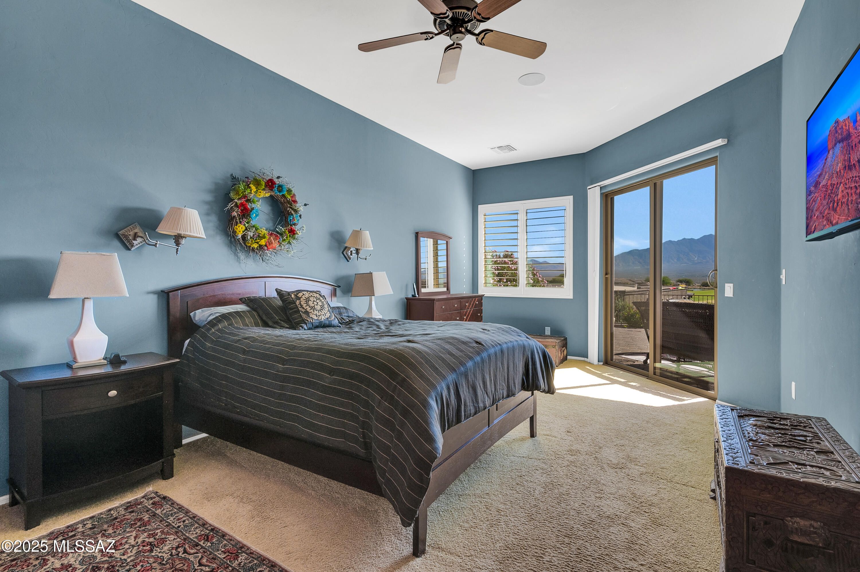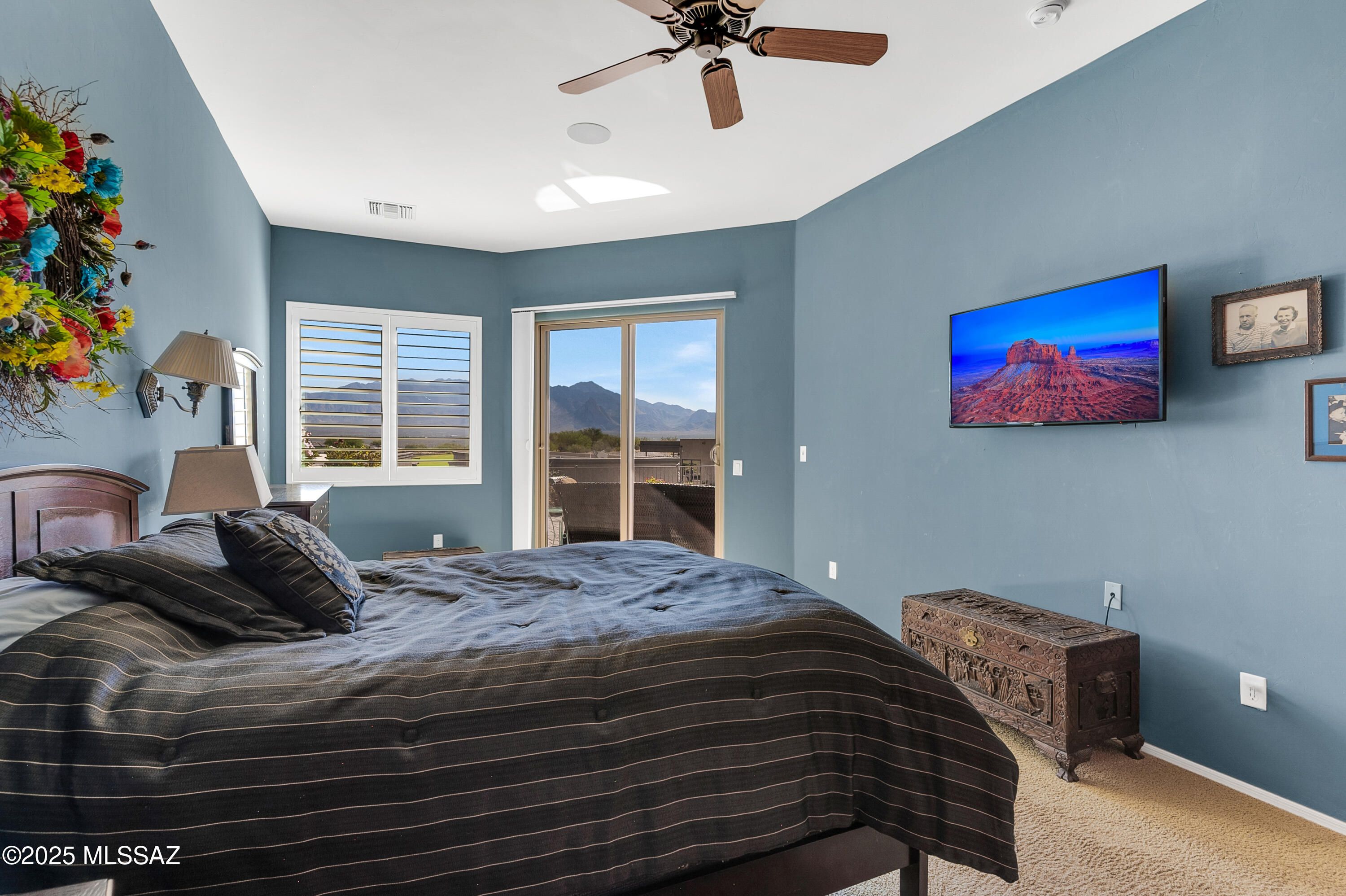 VIEWS, VIEWS, VIEWS! Experience the best of desert living in this immaculately maintained townhome showcasing breathtaking, unobstructed views of the majestic Santa Rita Mountains right here in beautiful Green Valley, Arizona. This newer-built residence offers an ideal combination of modern upgrades, timeless Southwest charm, andlow-maintenance living-perfect for year-round enjoyment or a serene seasonal retreat. From the moment you arrive, the inviting curb appeal sets the tone. A stamped concrete Flagstone-style walkway leads you to the custom wrought-iron security door, offering a warm welcome into this exceptional home. Inside, you're greeted by authentic Saltillo tile flooring flowing throughout the main living areas, complementing the home's distinctive Arizona style. The upgraded