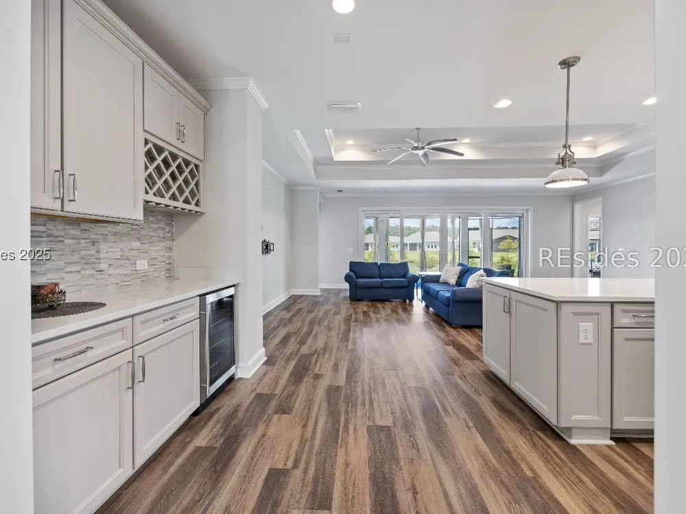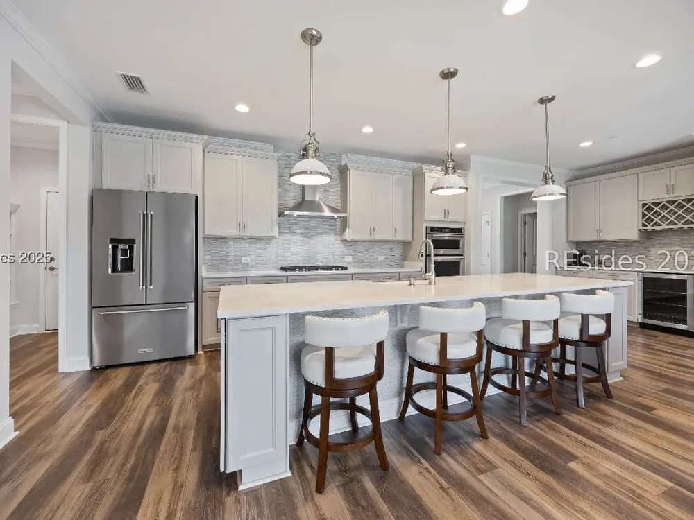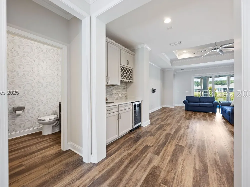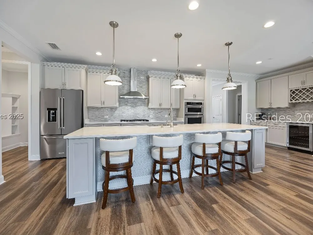 - Dryer, Dishwasher, Disposal, Microwave, Refrigerator, Wine Cooler, Washer, Tankless Water Heater