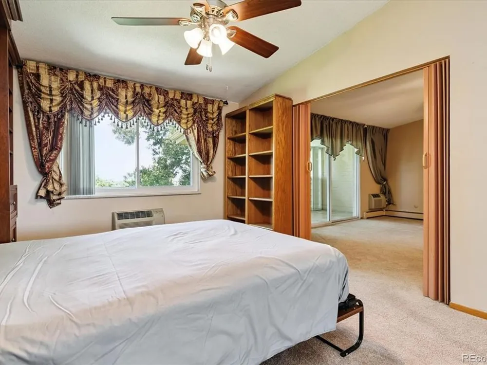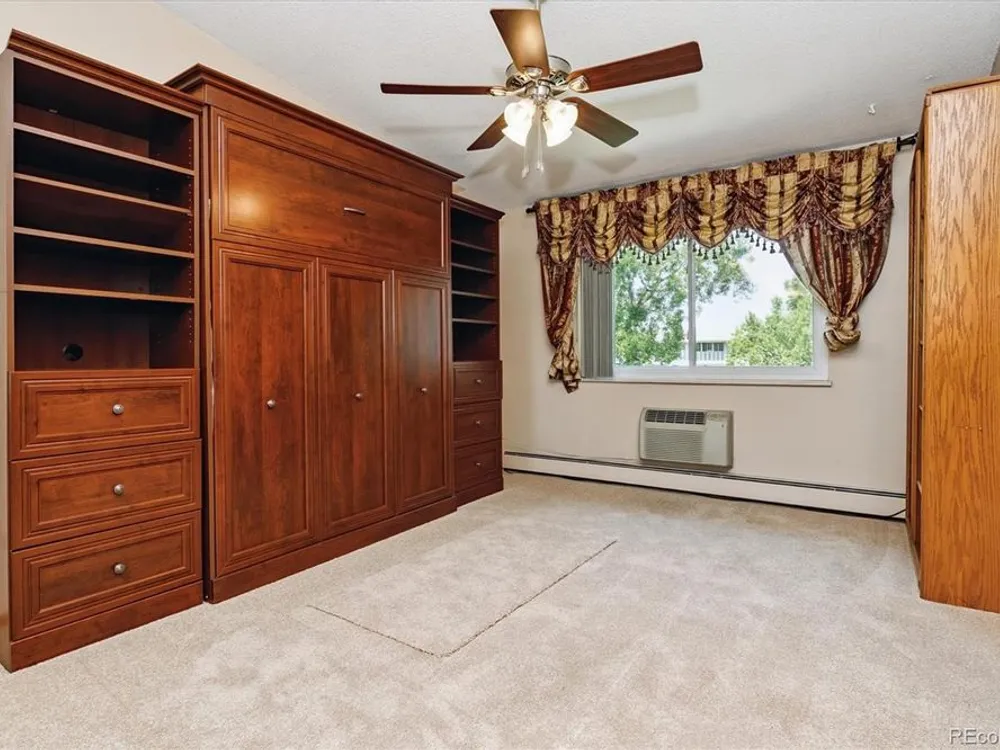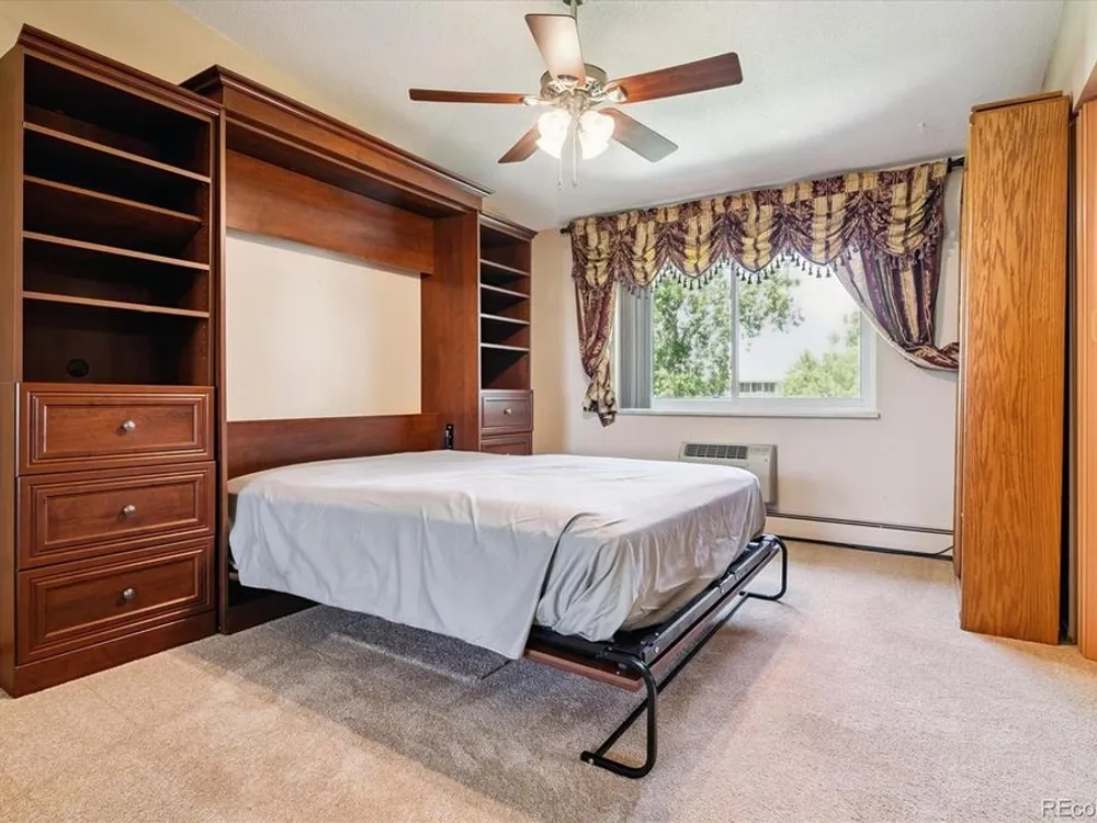 Top-Floor Treasure with Mountain Views in Windsor Gardens! Welcome to 585 S Alton Way #4D—a beautifully updated and spacious top-floor condo located in Denver’s premier 55+ community, Windsor Gardens! This 2-bedroom, 2-bath 1200 sf. residence offers comfort, style, and breathtaking views of the mountains and downtown skyline from your fully enclosed lanai. Inside, you’ll find vaulted ceilings and plush beige carpeting that provide a warm and inviting atmosphere. The kitchen features updated oak cabinets, granite countertops, a decorative tile backsplash, and sleek black appliances—perfect for both everyday living and entertaining. Three in-wall AC units—one in each bedroom and the living room—ensure year-round comfort. The second bedroom includes a custom walnut Murphy bed that folds neatly away to reveal built-in shelving—an ideal bonus for maximizing space and functionality as a guest room, office, or hobby space. Both bathrooms have been tastefully updated with newer vanities and lighting fixtures. A large utility room provides generous storage, and the condo also includes a private same-floor storage locker and additional cowboy storage in Garage #14, Lot-15. Living in Windsor Gardens means enjoying resort-style amenities including a clubhouse, fitness center, indoor/outdoor pools, spa, golf course, restaurant, community garden, and a vibrant calendar of social events. Conveniently located near trails, shopping, and public transit. This is more than a home—it’s a lifestyle. Don’t miss your chance to live in one of the most desirable buildings in the community. Schedule your private showing today!
