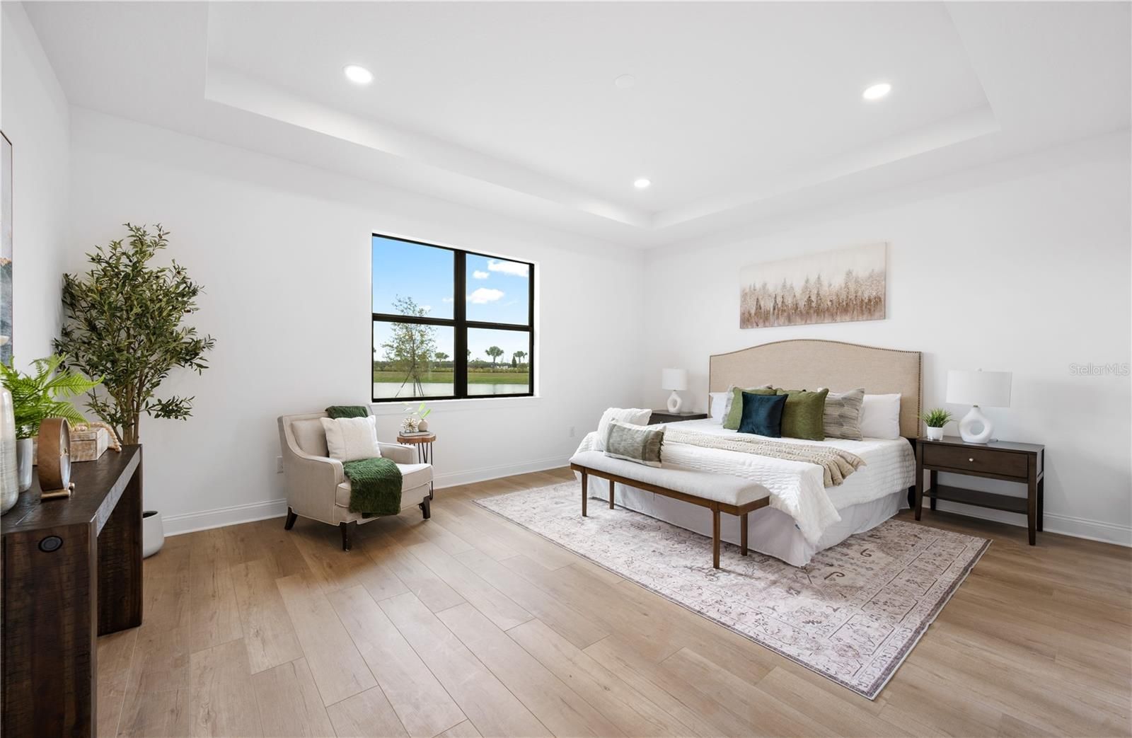 This 2,473-square-foot home is a Toll Brother's design located in our premier active 55+ community "Regency at Waterset". Within our community we offer resort-style amenities that can be utilized everyday. Our lifestyle director also takes great pride in planning different activities and workout classes month to month. The Skimmer floorplan offers natural light which pour through numerous windows and large sliding glass doors, creating a warm and inviting atmosphere. The gourmet kitchen is a chef's delight, with a huge island, walk-in pantry, and an expansive casual dining area, all open to a great room. The flow leads to a screened lanai with serene water views. This home features three bedrooms, two-and-a-half baths, a flexible bonus room, and a 2-car garage. The private primary suite boasts a large ensuite and oversized walk-in closet, offering the perfect sanctuary after a day of activities.