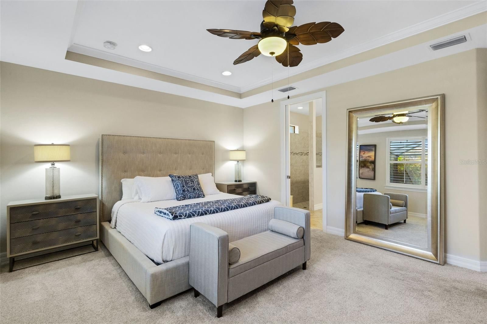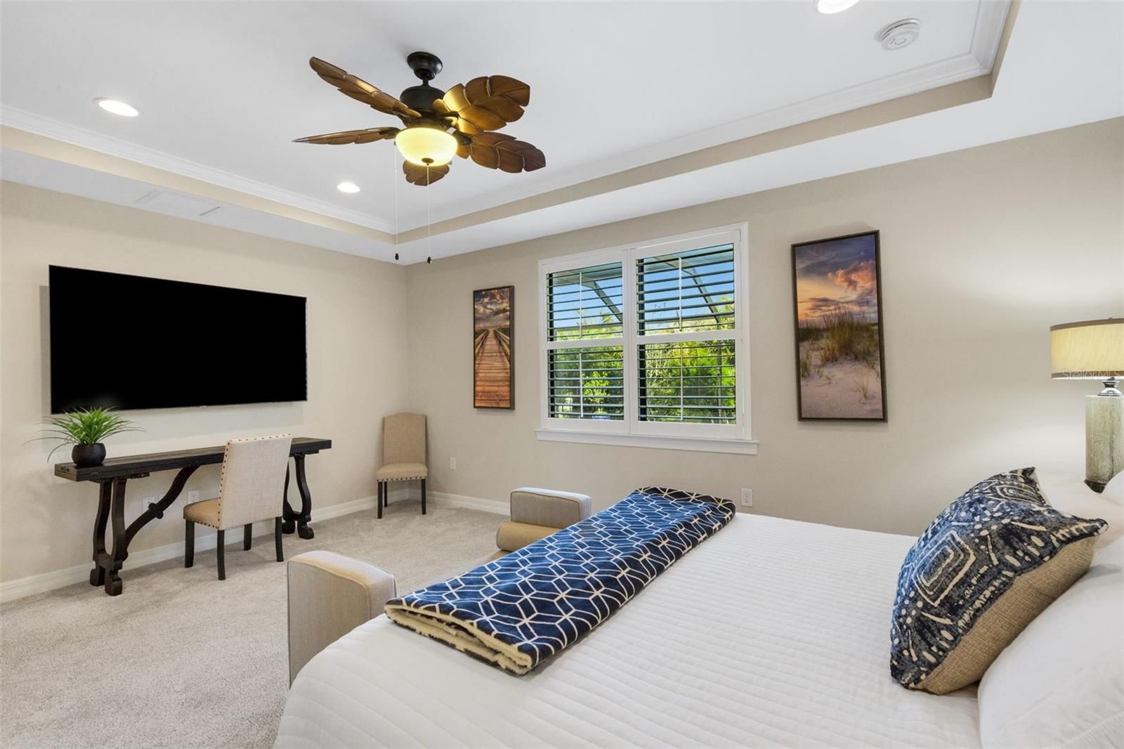 - Ceiling Fan(s), Crown Molding, Open Floorplan, Solid-Wood Cabinets, Stone Counters, Tray Ceiling(s), Walk-In Closet(s), Window Treatments